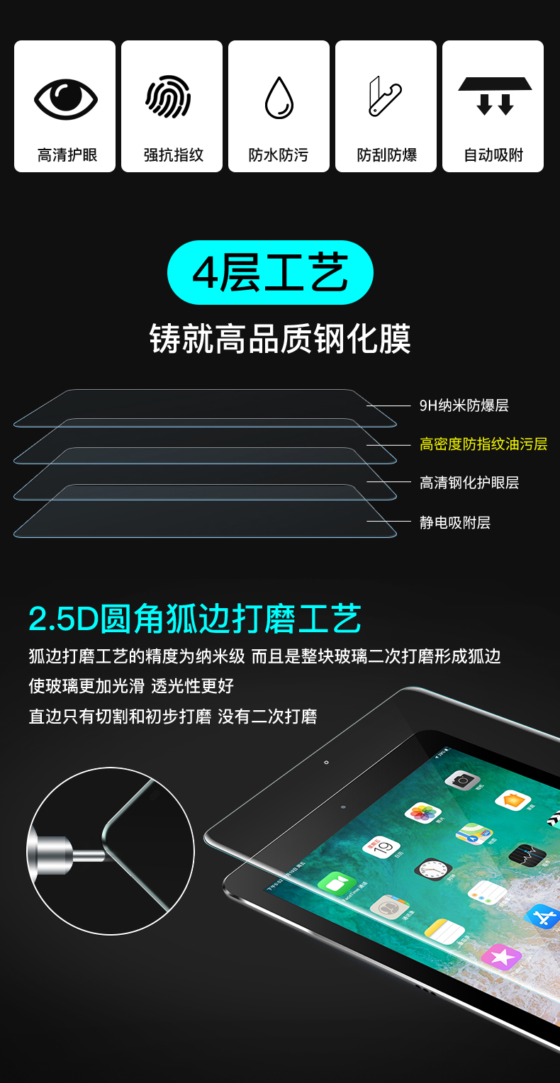 苹果ipad/mini平板电脑高清钢化膜送贴膜神器,抗蓝光,护眼高清,舒适顺滑,高温钢化处理,耐磨抗摔,裂而不碎,防汗抗指纹,玩游戏手选!
