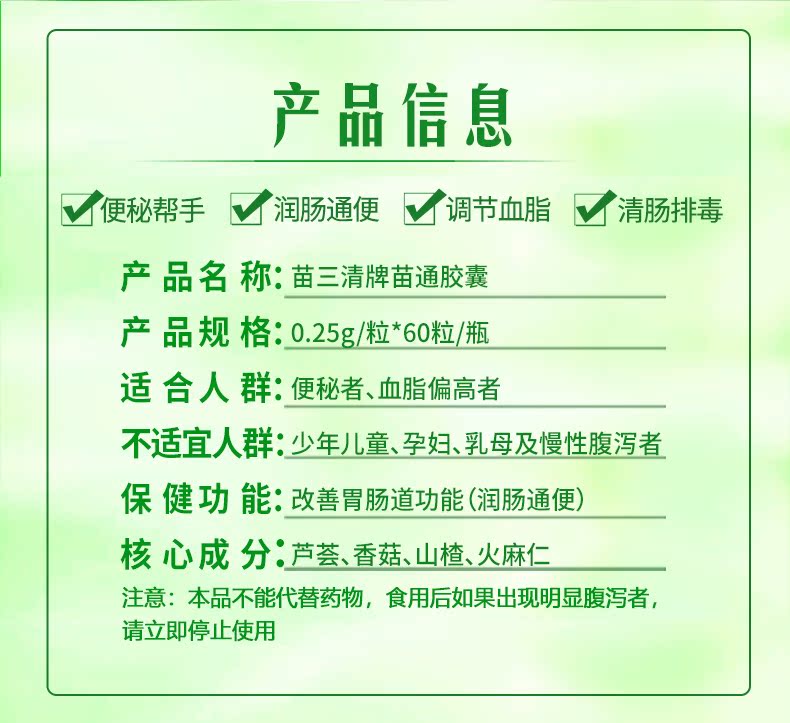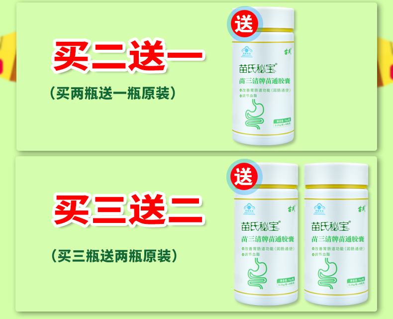 苗家配方,匠心品质,只为健康,中药成分,买二送一,改善便秘,三瓶一周期,按期服用效果很好哦【赠运费险】