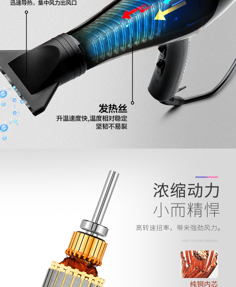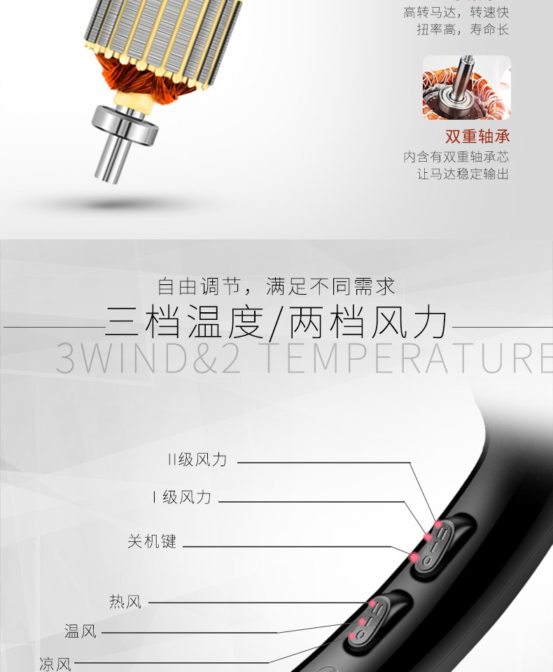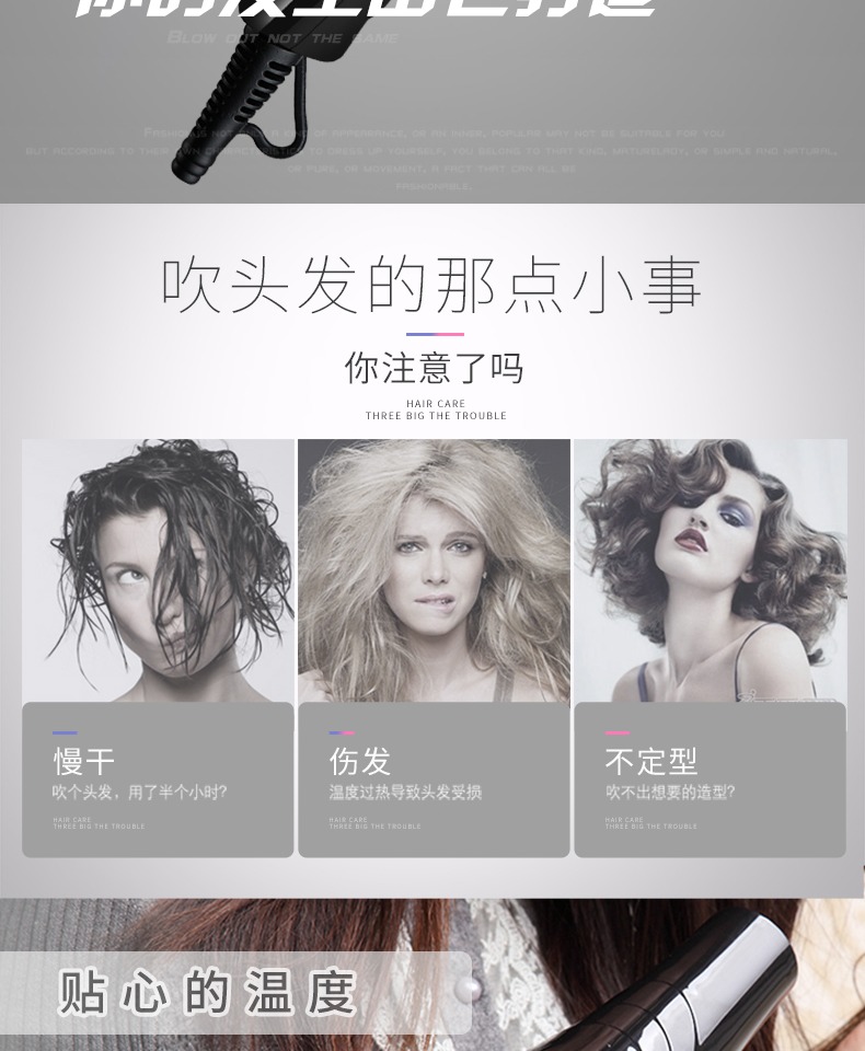 智能恒温系列吹风机,您的发型由它打造!飘香升级型负离子,除去静电,时刻为头发做SPA,从此拒绝干枯,让头发柔顺闪耀~