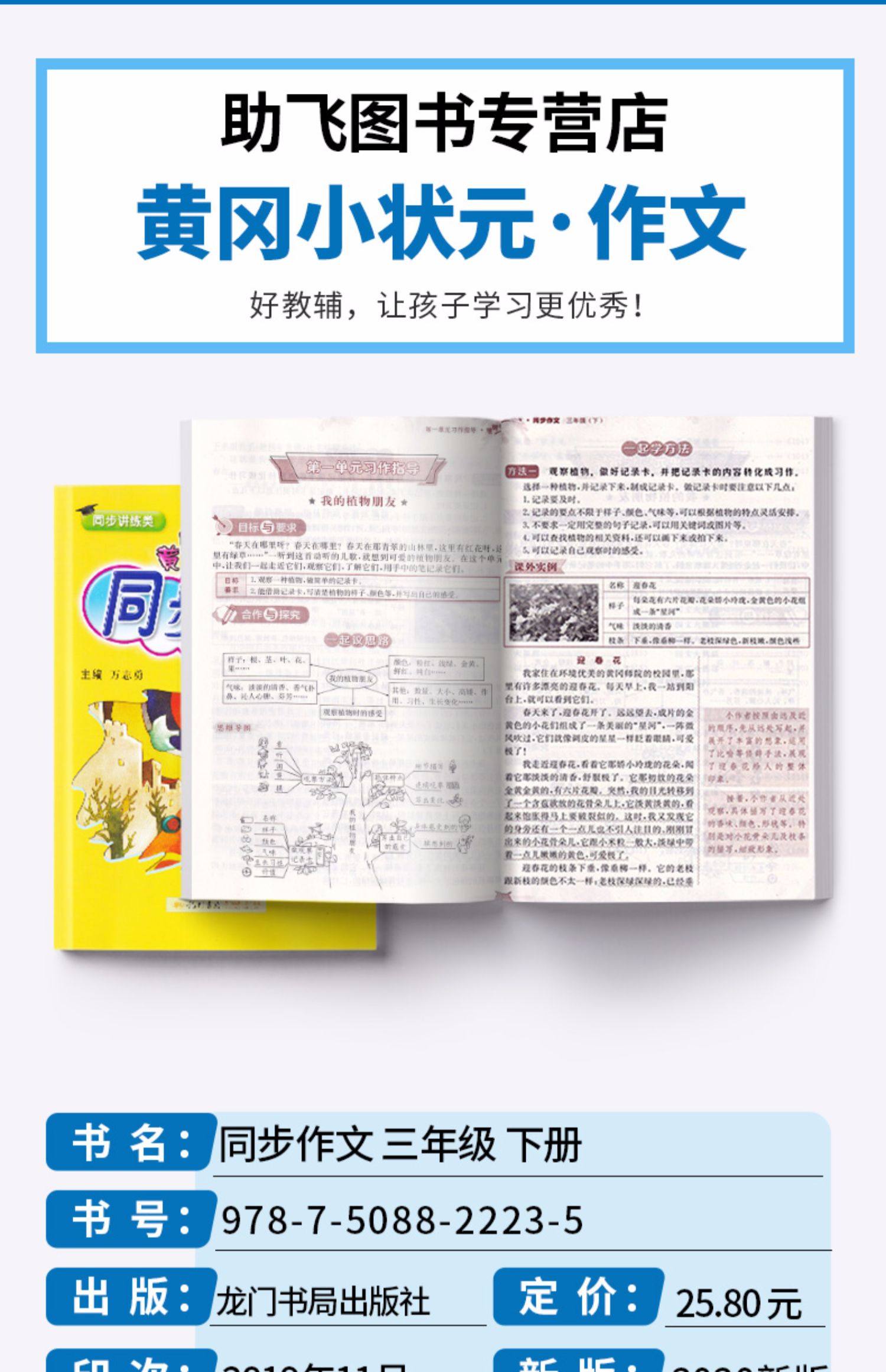 【助飞书店】【买一送一】黄冈小状元同步作文三年级下册部编版人教版,小学生语文3年级下册满分作文素材大全,创新优秀作文写作龙门书局精选资料书,提高孩子写作能力~必备!!