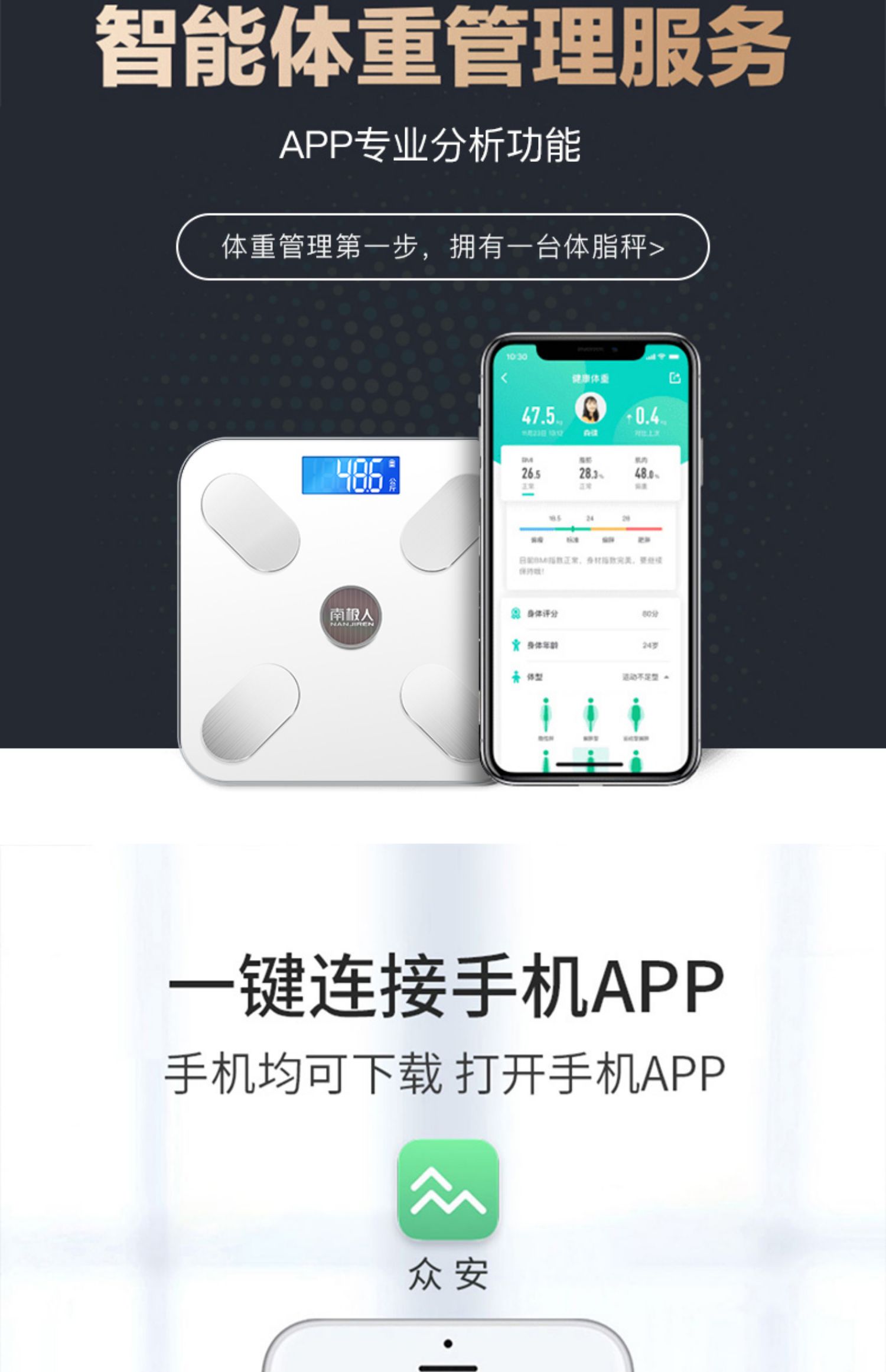 【爆卖100万台】大牌南极人!一款更专业的体脂称,美国联合开发app,能精准测出79项数据,私人定制健身计划,饮食计划,瘦身减脂,科学精准有效!