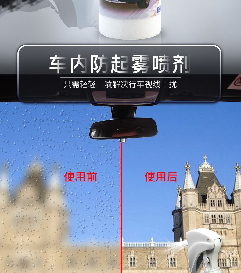 推荐【车居两用】汽车玻璃防雾剂,不伤贴膜,专业防雨防雾剂,非油性配方,效果清新无残留,驱水防雾持久有效,透视野清晰无痕,不容水油,不伤肌肤~为雨天行车安全保驾