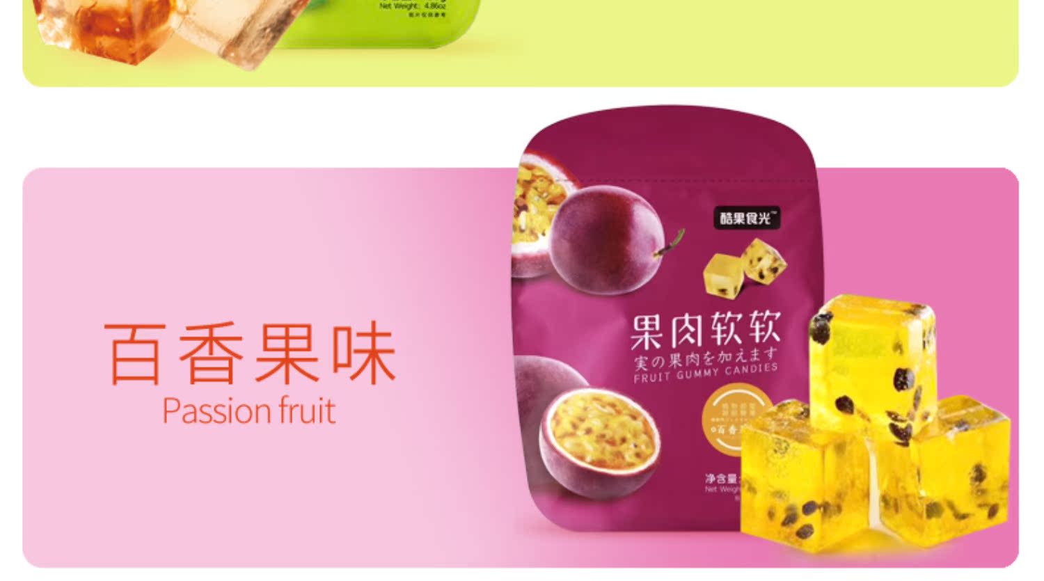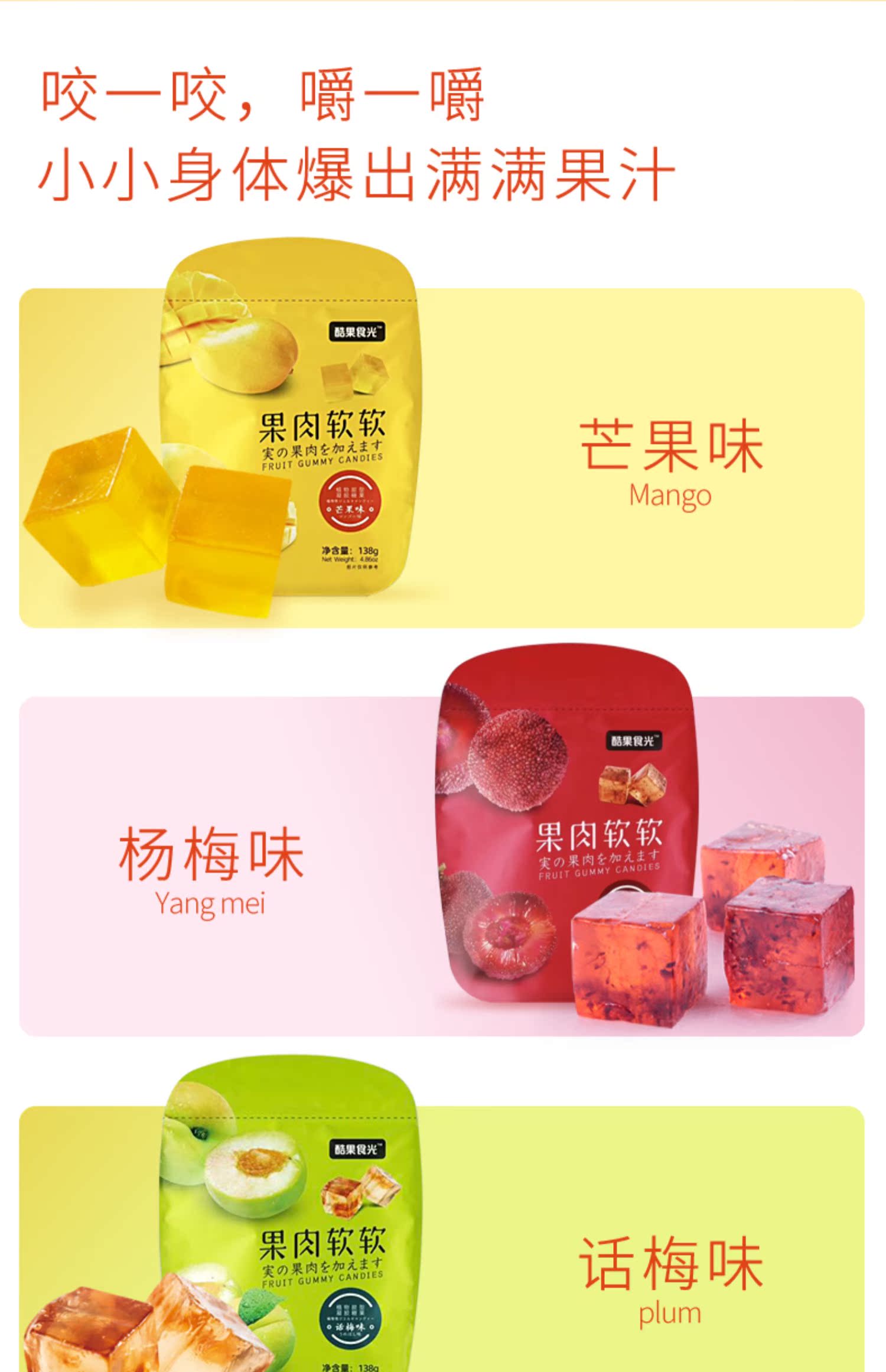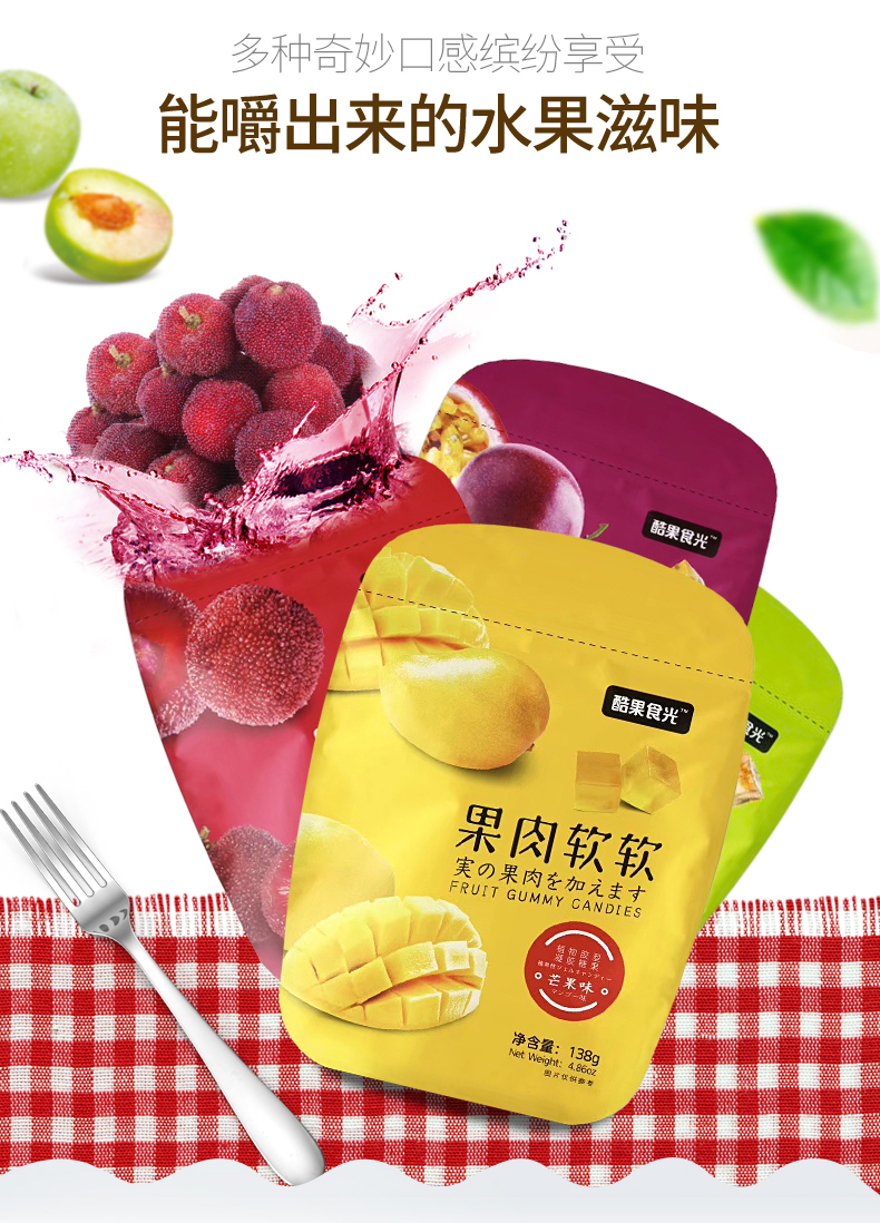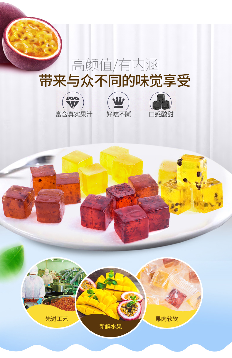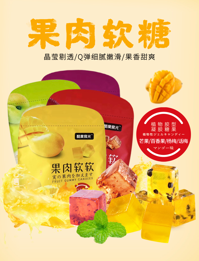 【第二件8.9元,第三件0元】一袋约28颗,超高颜值的果肉软糖!果肉胶型,晶莹剔透,入口Q弹细腻,好吃不粘牙~咬一咬,果酱爆浆而出,好吃到爆!