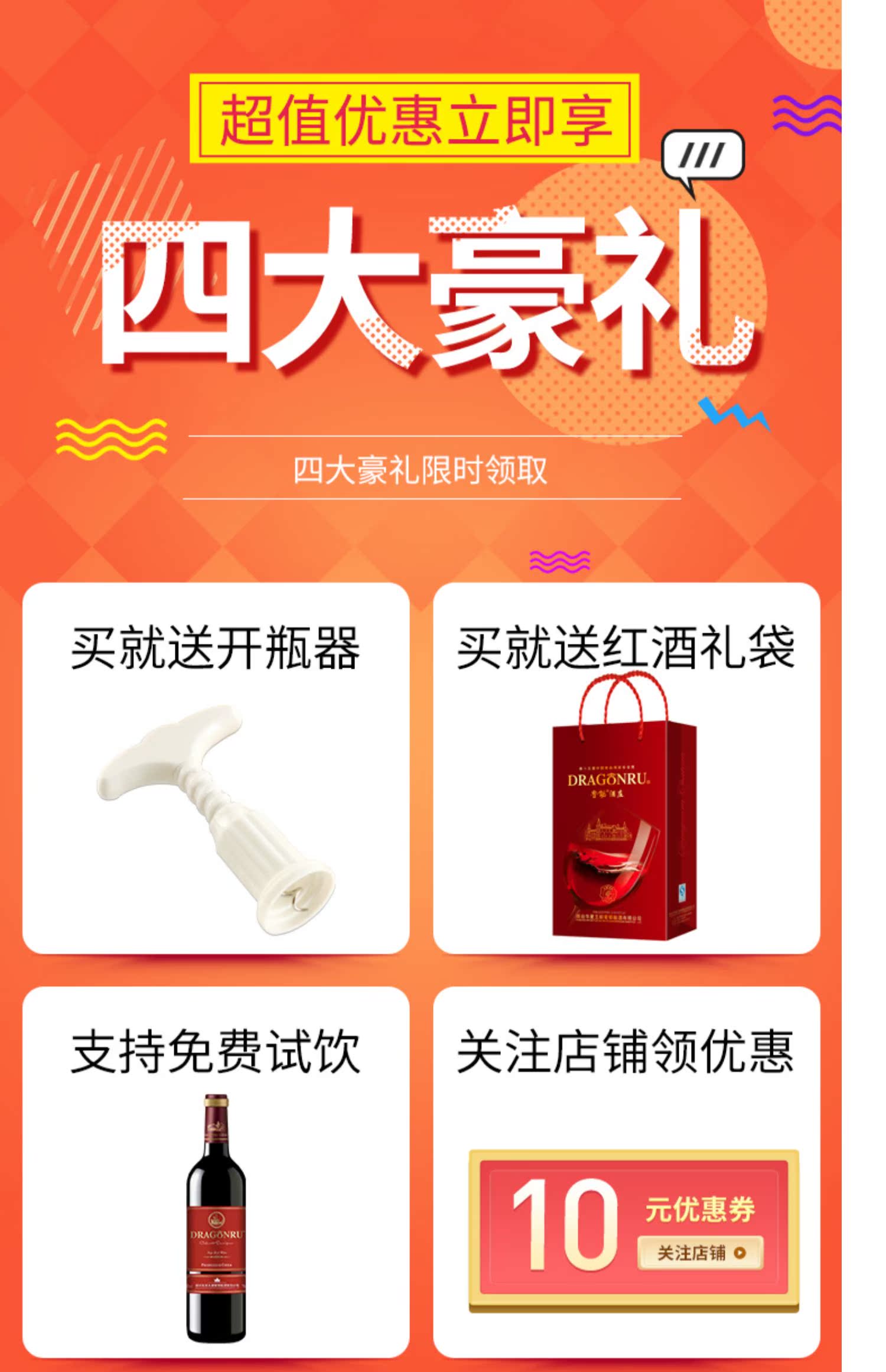 送礼好产品,口感柔软,酒体饱满,果香浓郁,入口柔顺!喝葡萄酒还能抵抗衰老,质量严格把关,铝制酒封,存放安心,自饮、商务、宴请、高端大气上档次!