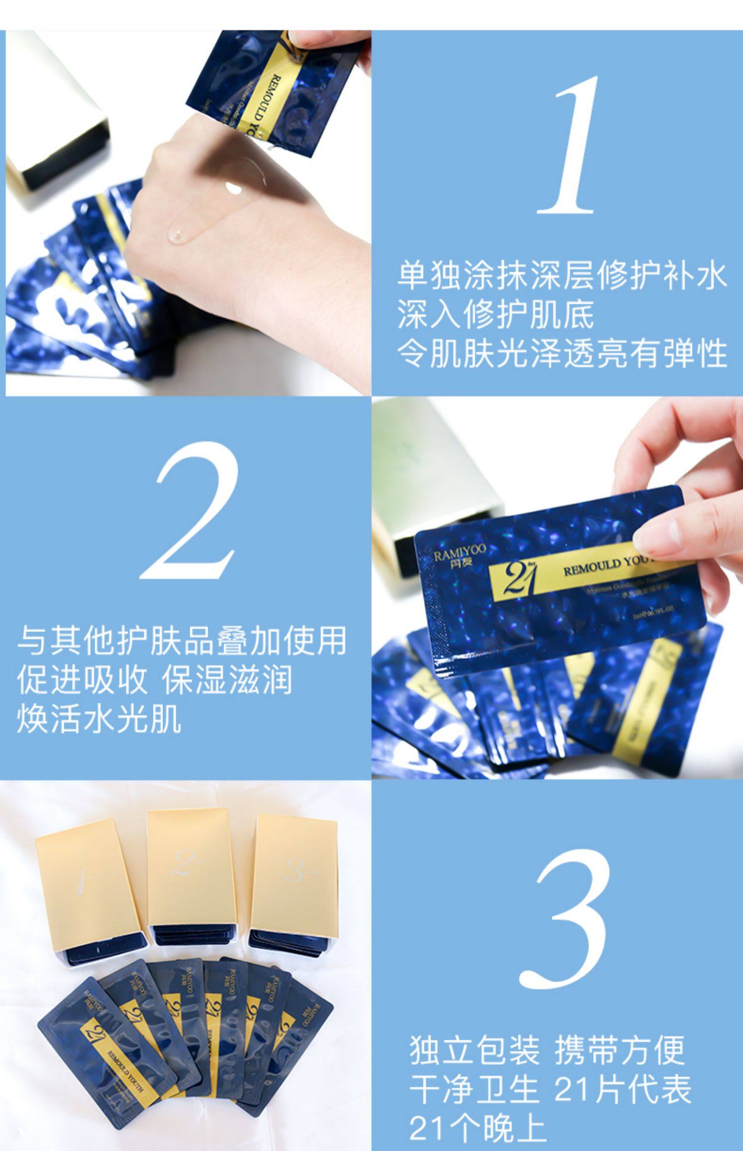 21片极光晚安精华液,补水保湿提亮肤色,采用发酵专利(欧盟,韩国,日本等)多过专利配方。进口原料,品质有保证。特别添加第三代生物小分子玻尿酸。天然植物发酵萃取,含有烟酰胺,有美白成分