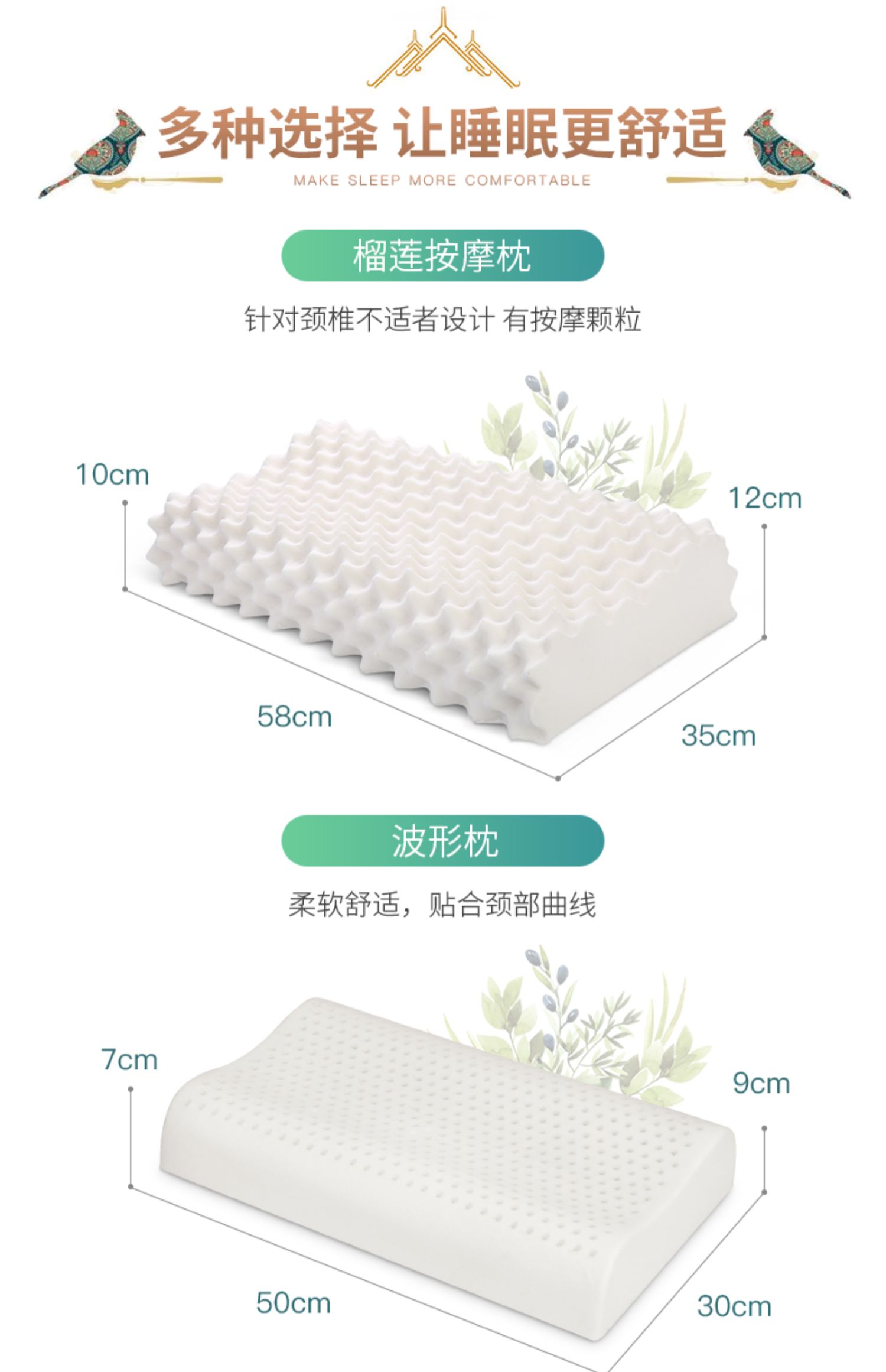 健康睡眠大师,泰国进口天然乳胶,乳胶含量达90%,SGS权威认证,欧盟美国标准,曲面设计,有效缓解颈椎痛,失眠,有助于缓解睡眠,提高记忆力,礼盒包装送人有档次
