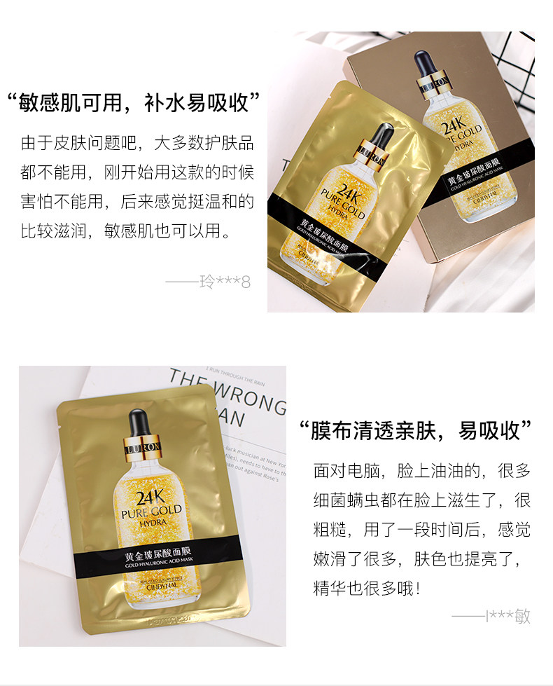 【拍一发二】黄金与玻尿酸搭配,在补水的基础上加了含金箔成分,扭转时光,肌肤不见年龄,没有丑女人,只有懒女人!
