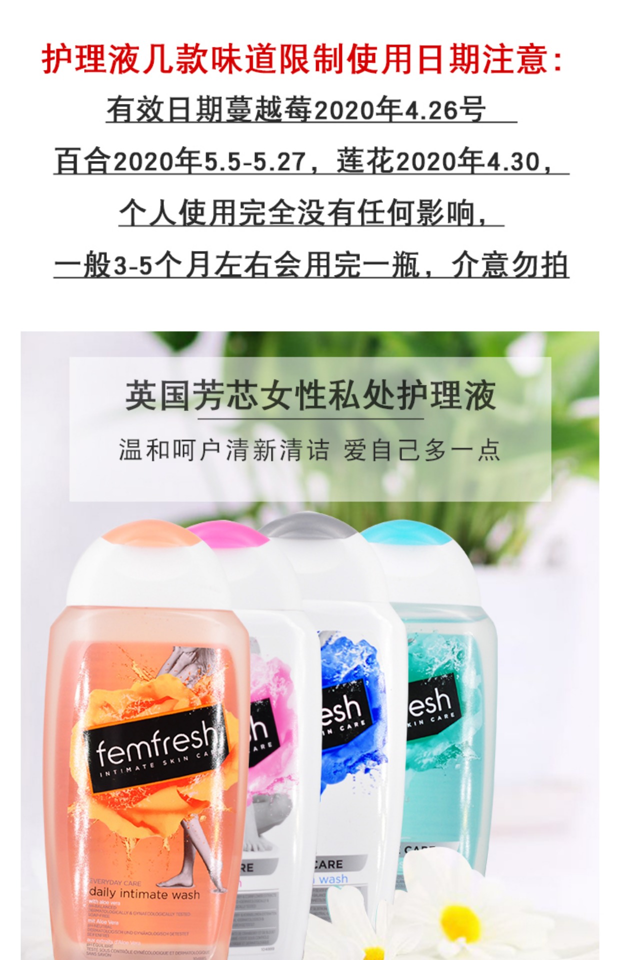 纯天然温和配方,无刺激不过敏,强效抑菌,赶走异味,消灭炎症,舒缓瘙痒尴尬,一周两次护理私处健康,长效清爽~【赠运费险】