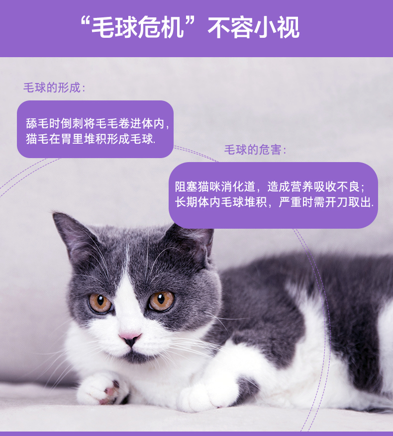 【天猫正品】植物纤维吸附肠道发毛,防止毛发打结,加强肠胃蠕动,快速排出毛球。