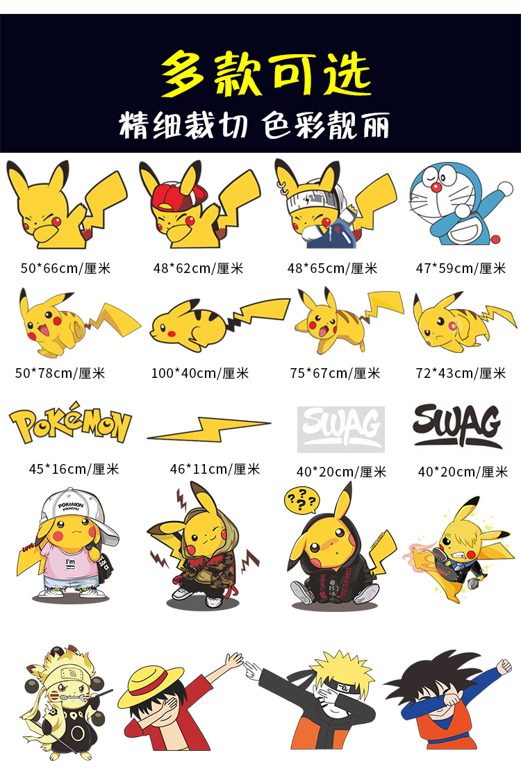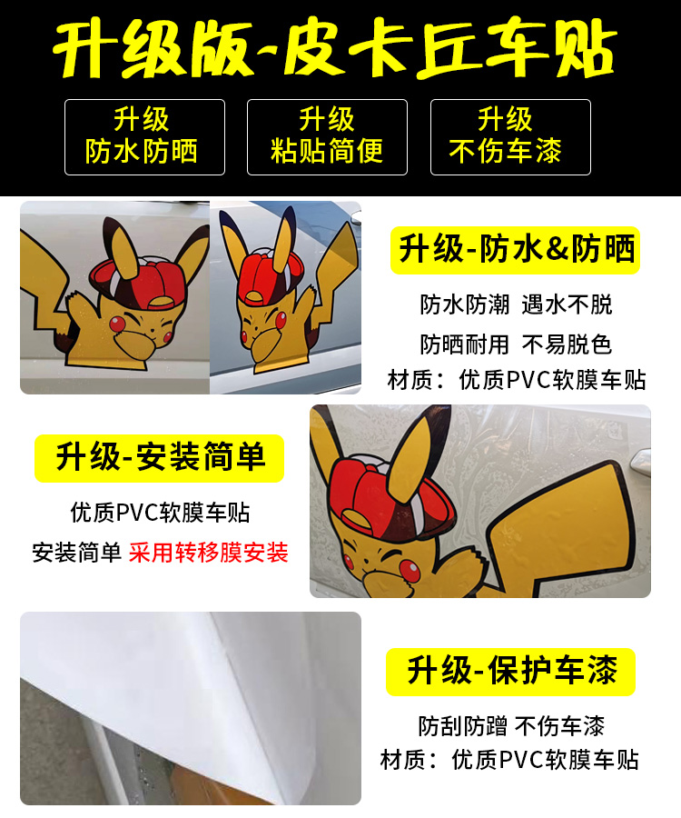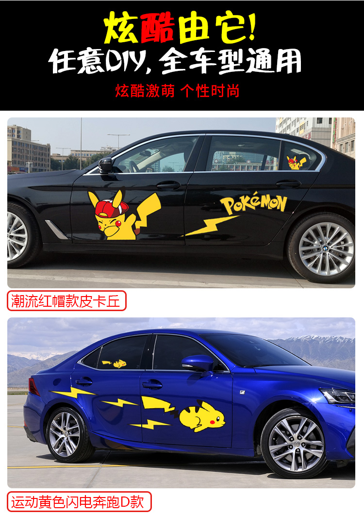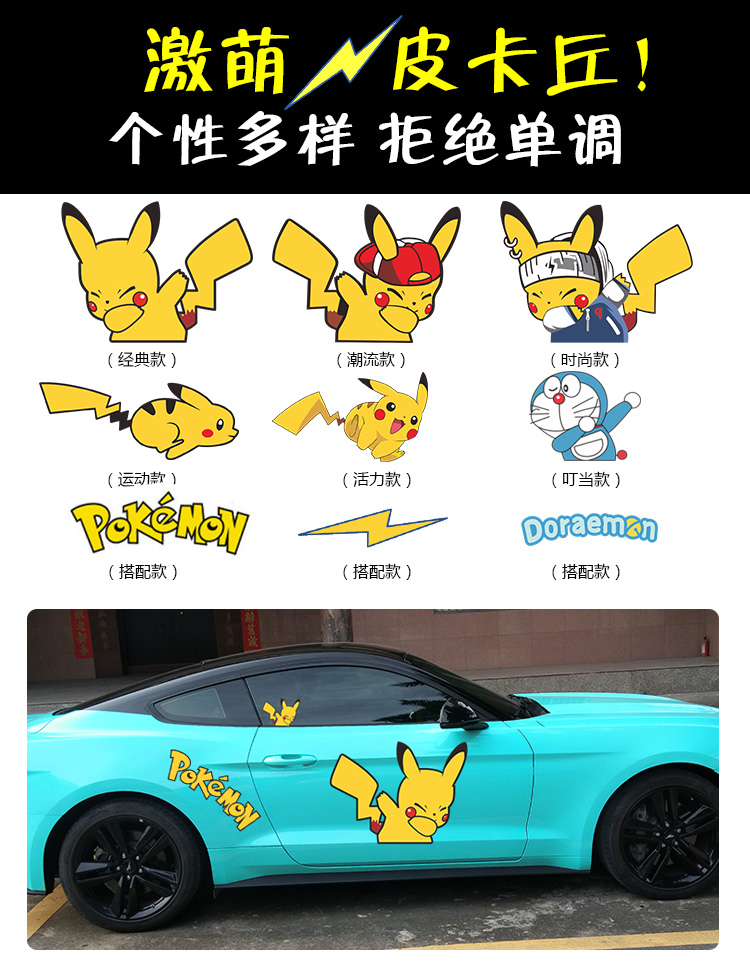 【抖音爆款】皮卡丘车贴汽车贴纸,电动车、摩托车个性贴纸,防水防晒不褪色,保护车漆经久耐用,多款可选!5.1元抢5版车贴(35个图案)限量500份