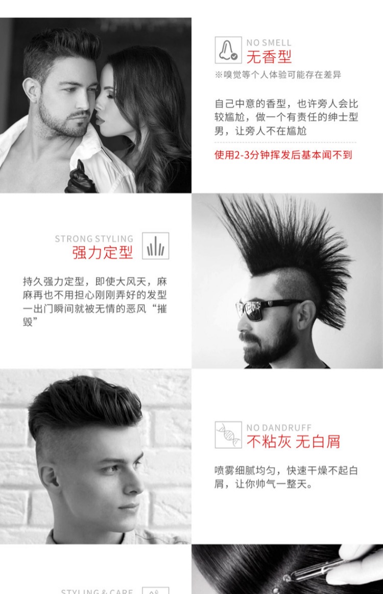 多套餐可选择,强力蓬松定型,清爽不黏腻,顺滑自然,清香怡人,轻松打造迷人发型!用起来一点都不黏手哇,喷一下头发不毛躁了定型效果也贼好!每天都能打造不一样的发型。