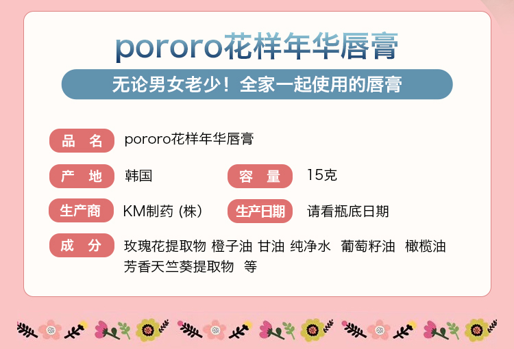 韩国宝露露润唇膏,保湿滋润防干裂,学生婴儿宝宝,纯天然可吃,自然植物萃取。