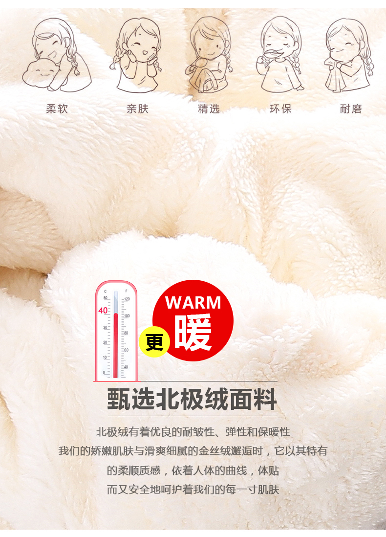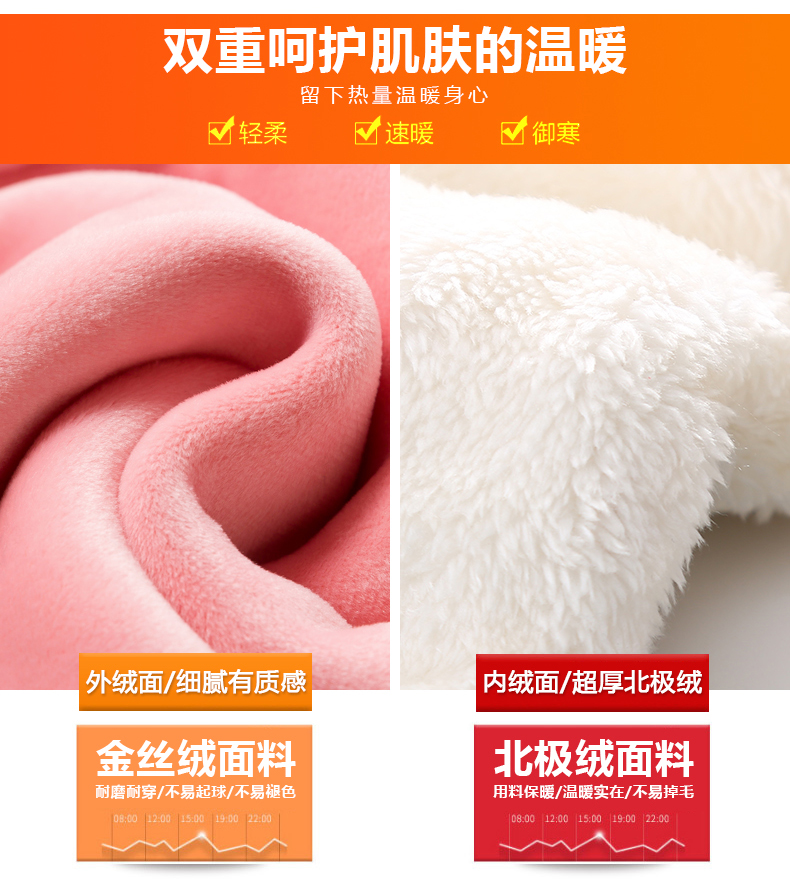 高档金丝绒面料,柔软丝滑,做工精致,选材认真不将就!三层加厚,680克厚度,寒冬一条就够~