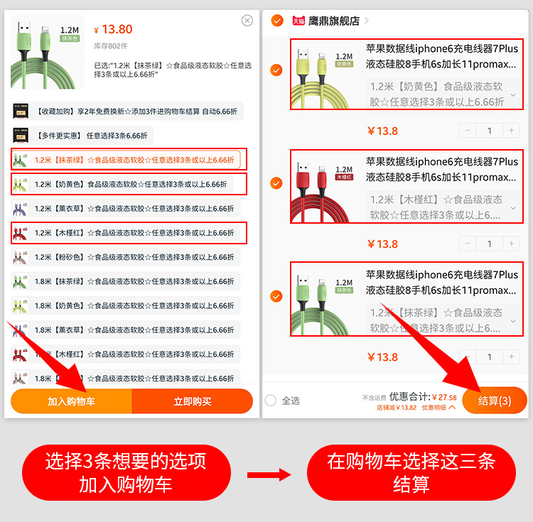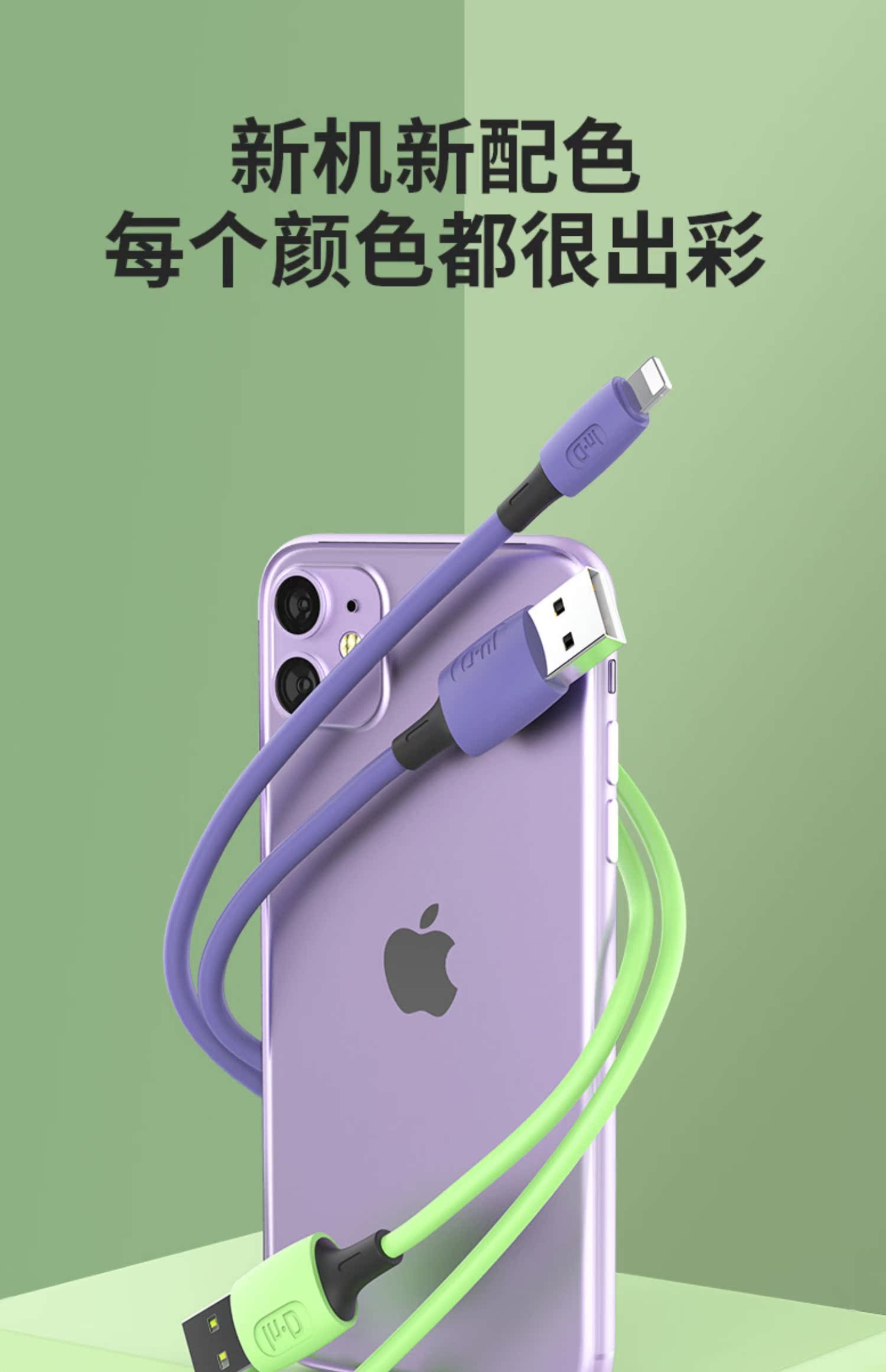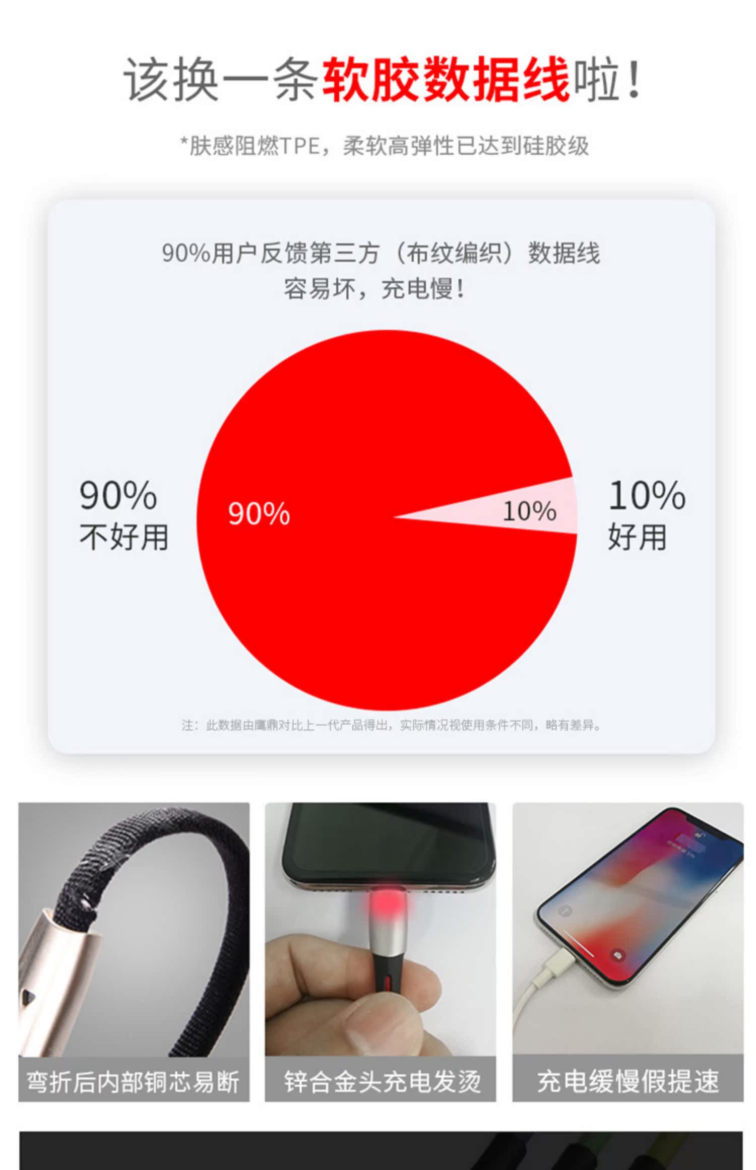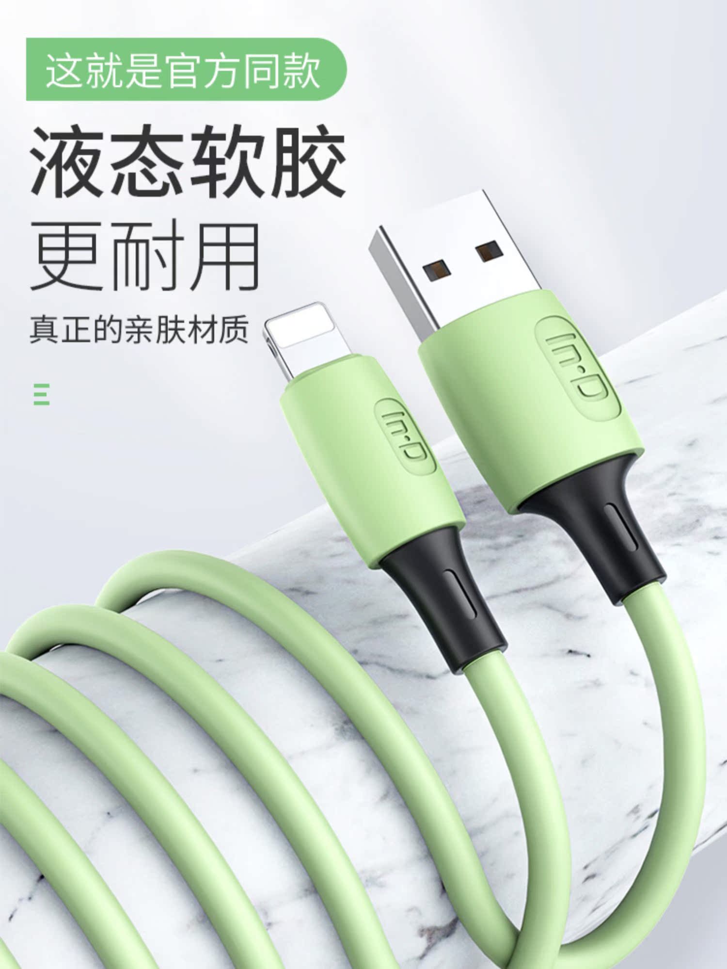 苹果液态软胶升级版数据线,食品级液态软胶,液态软胶、2年换新、3件6.66折,支持3A快充,60分钟充满,高弹线材,使用寿命提高6倍,线材柔软,抢到就是赚到~~