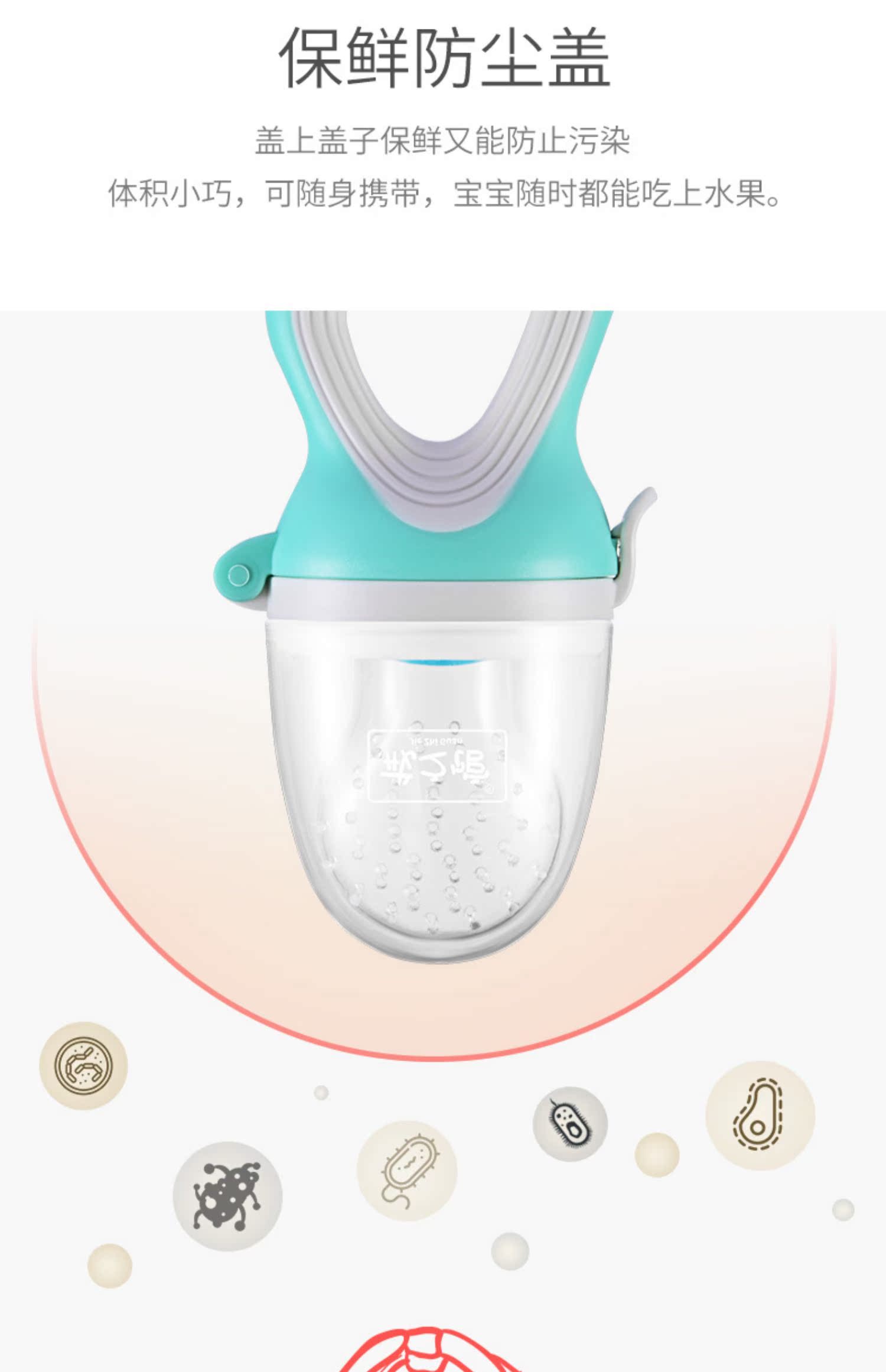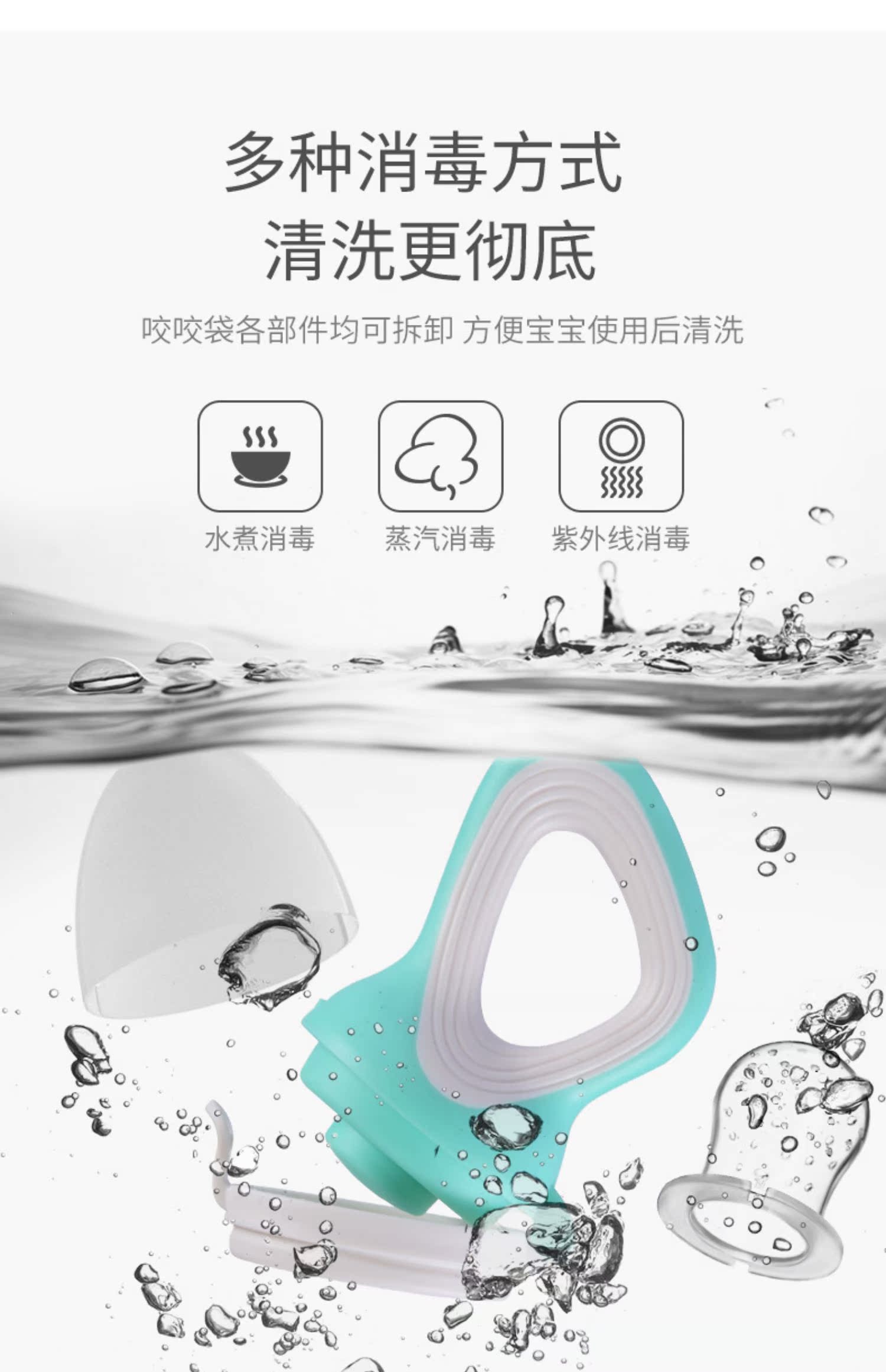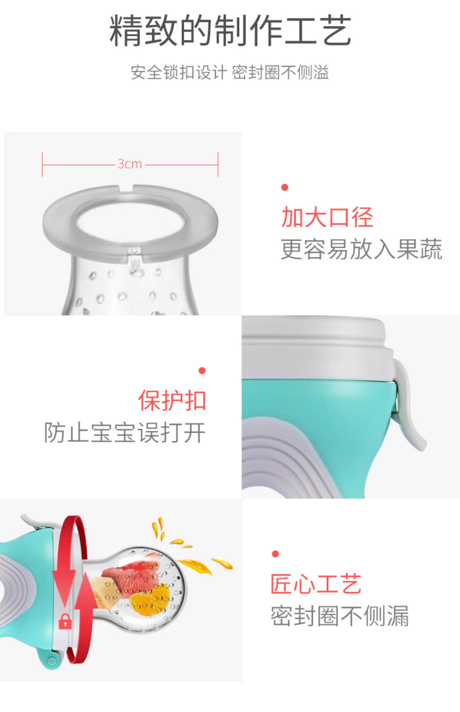 【送3个咬咬袋】食品级硅胶袋,安全无味,可高温消毒!柔软不磨舌头,果汁孔均匀不堵塞,各部件均可拆,无死角清洗!锻炼宝宝自主进食,让宝宝爱上吃水果!