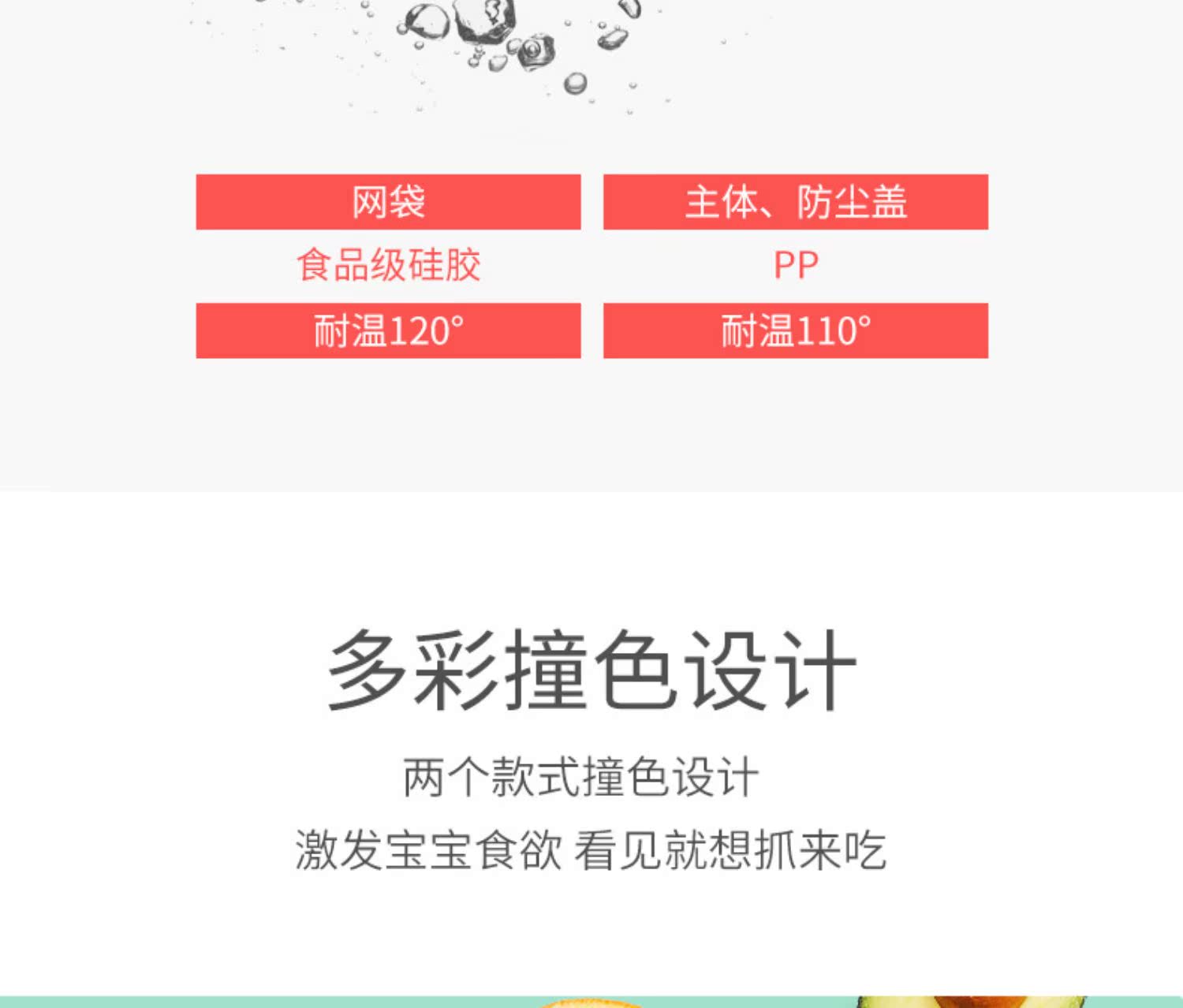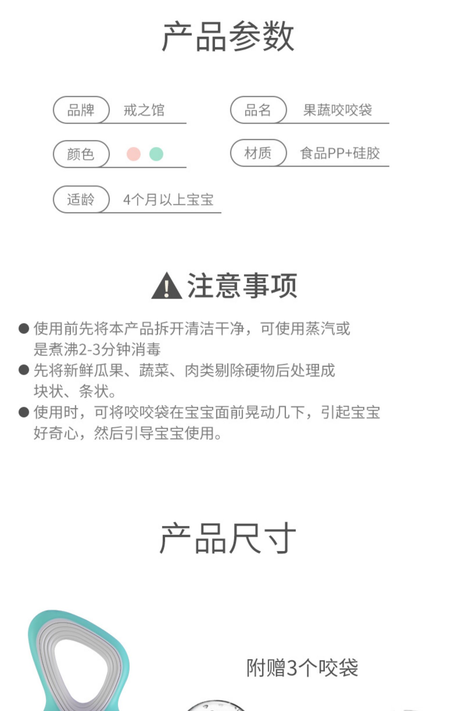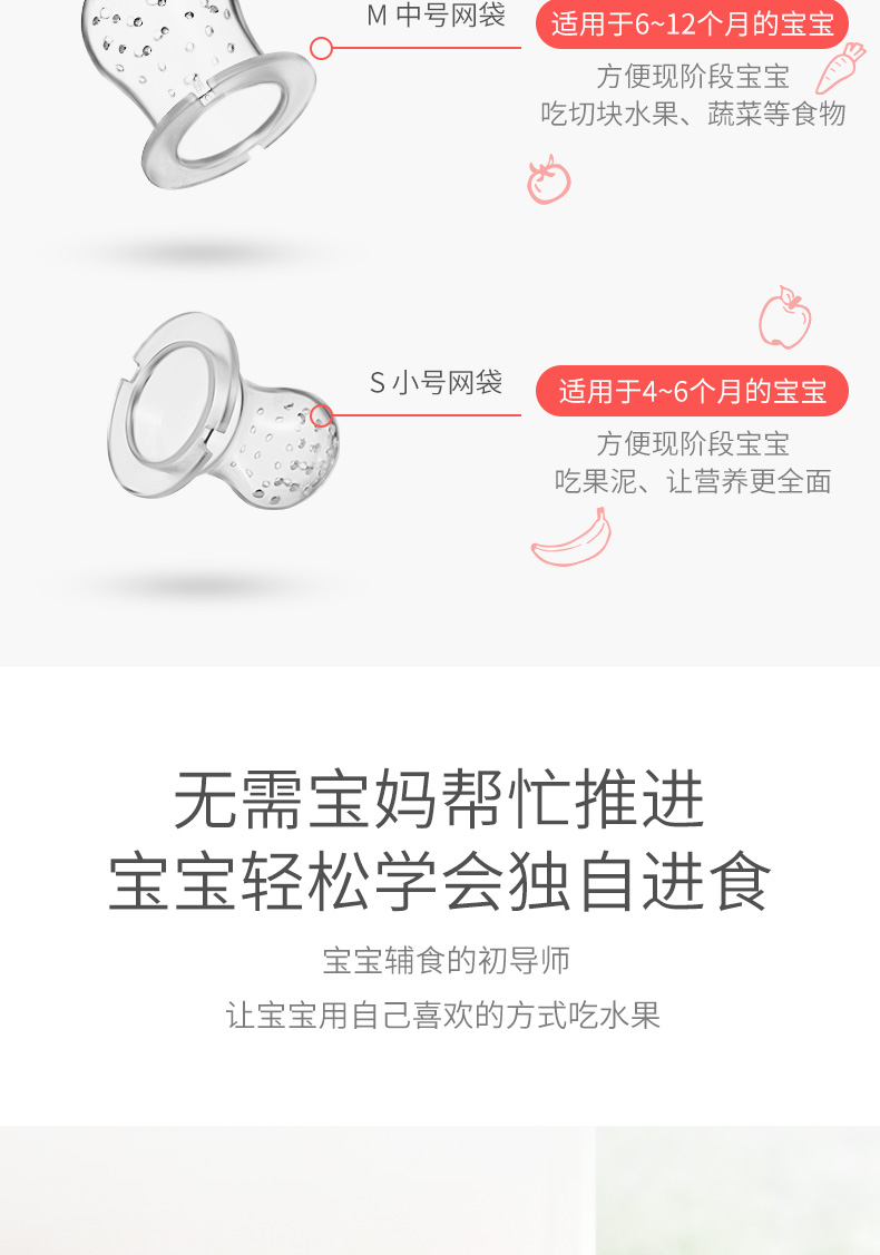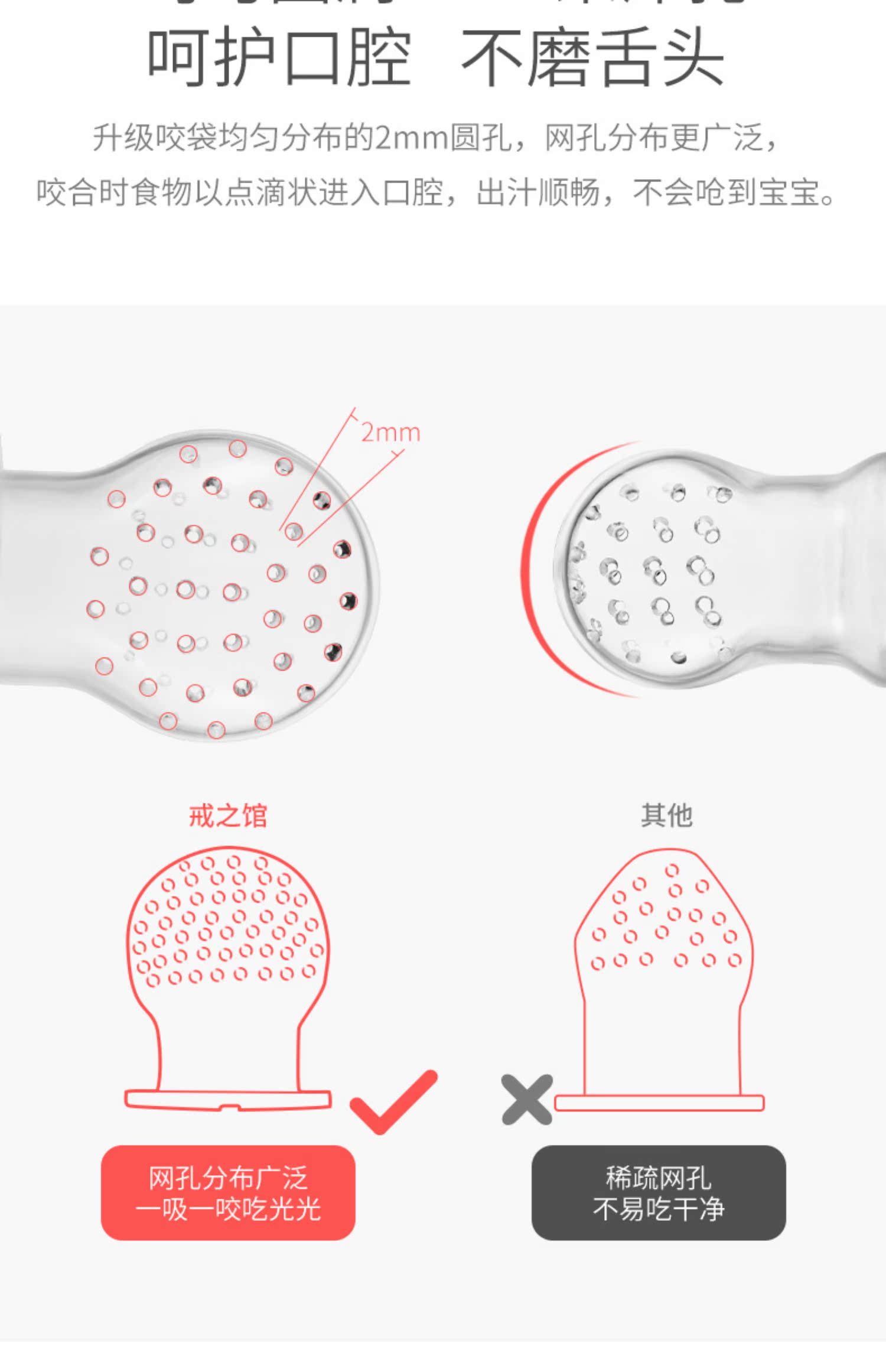 【送3个咬咬袋】食品级硅胶袋,安全无味,可高温消毒!柔软不磨舌头,果汁孔均匀不堵塞,各部件均可拆,无死角清洗!锻炼宝宝自主进食,让宝宝爱上吃水果!
