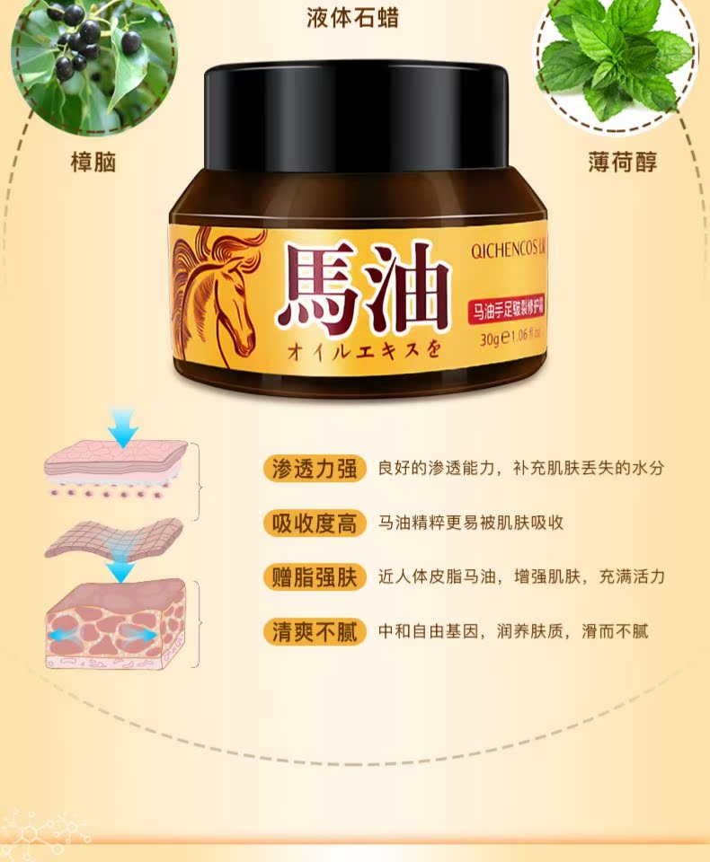 小红书种草无数,!温和无添加配方,采用日本北海道天然马脂,草本配方,深层渗透,修复皲裂,水泡脱皮,滋润保湿,让你的手足嫩嫩滑滑~解决秋冬手脚干烈、脱皮等现象,让肌肤回归自然~
