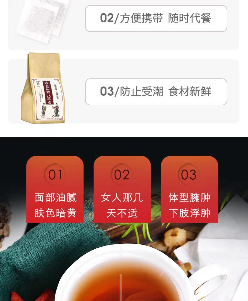 【买二送当归】六制四物汤的核心是补气血,调理改善月经,独立小包装,改善面部油腻,体型臃肿等,一杯呵护女人,告别坏心情!