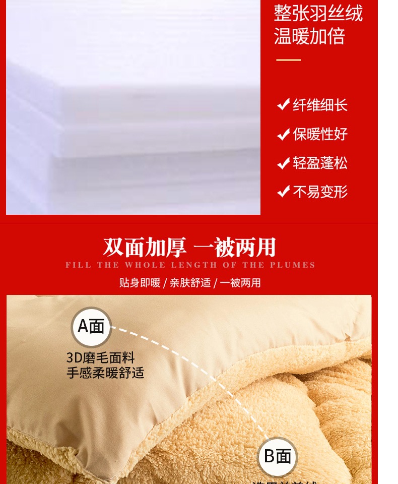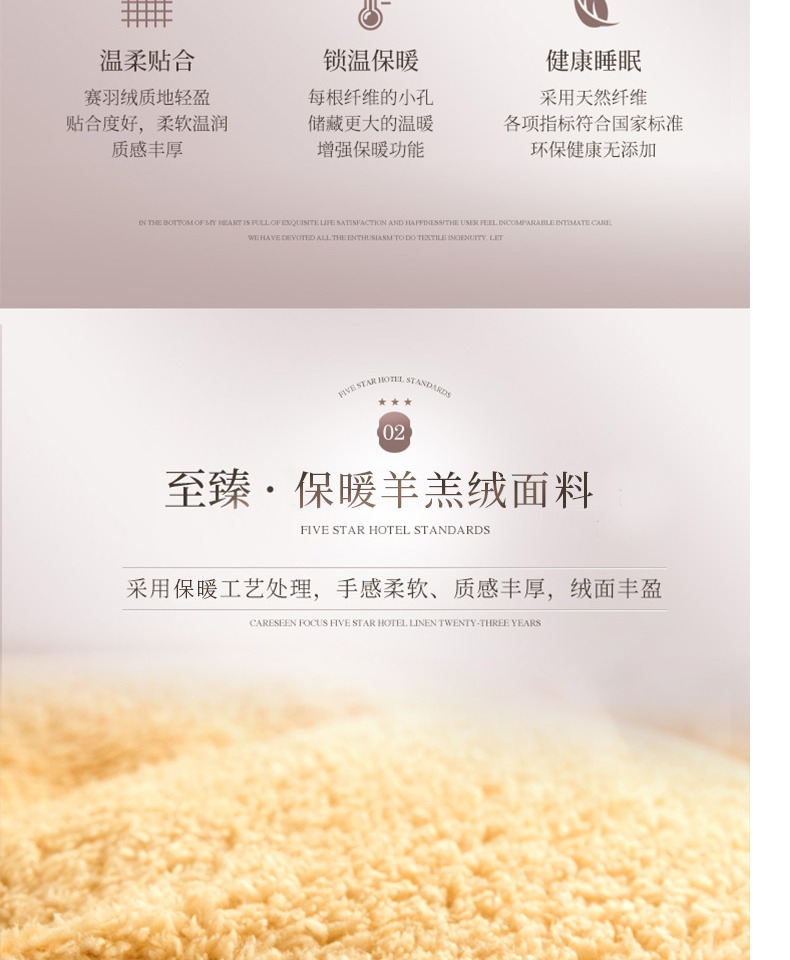 轻柔舒适,芯享好眠,羽丝绒填充,蓬松保暖,车工绗缝定位,亲肤面料,给您舒适睡眠