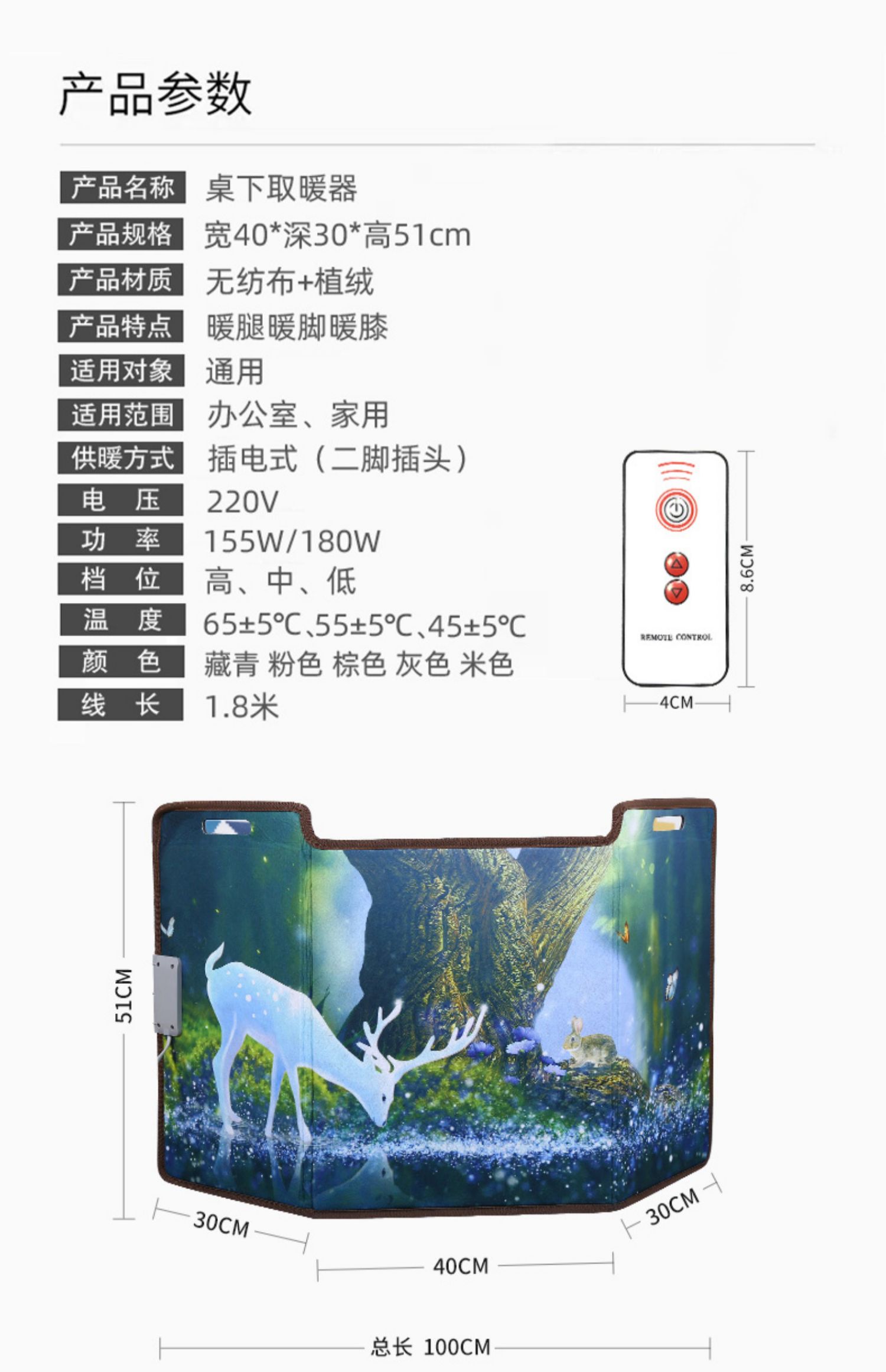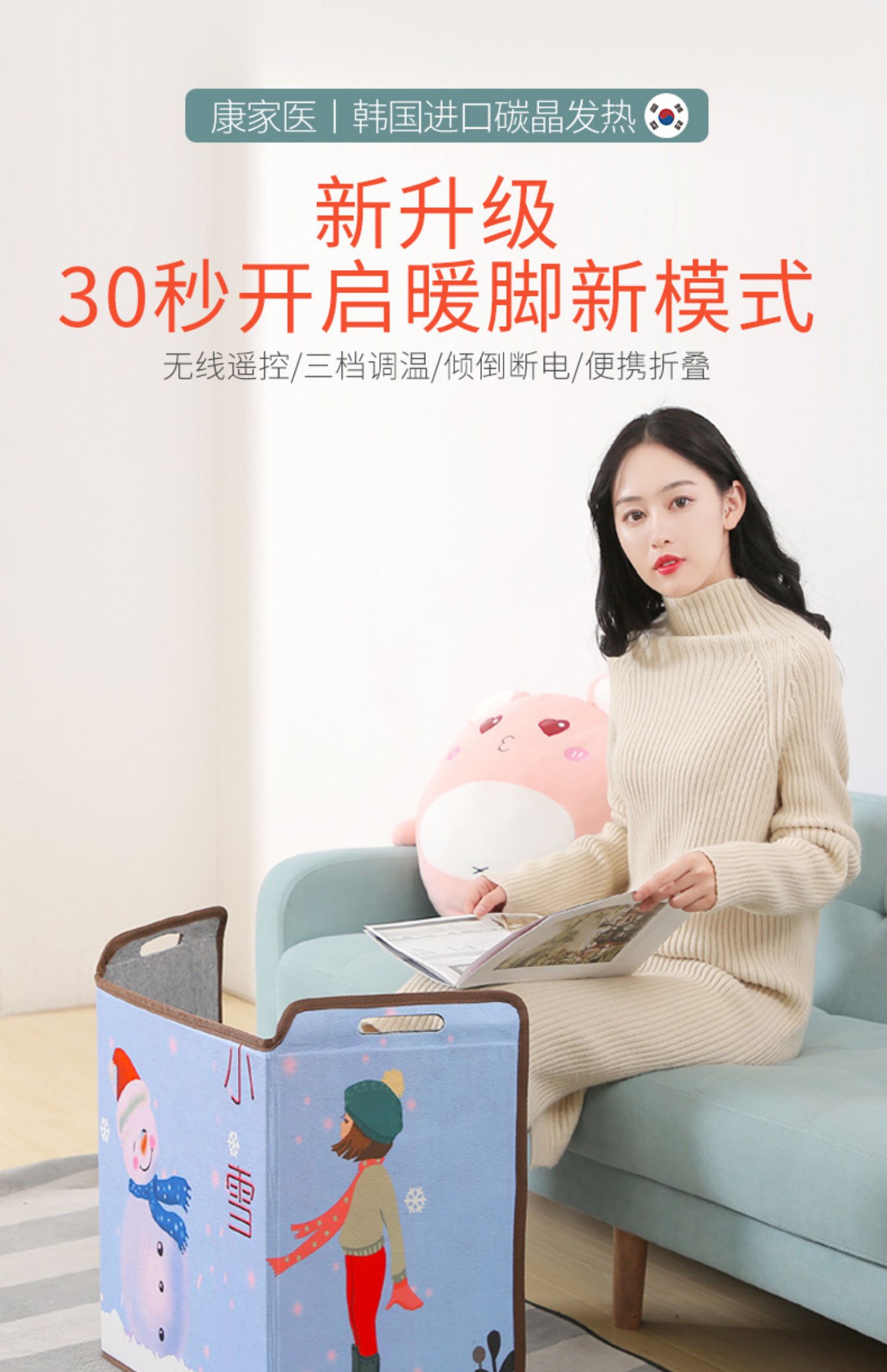【桌下暖腿脚神器+送盖毯】【康家医K+1韩国进口碳晶发热】【三面取暖无线遥控智能定时】30秒快速发热,静音无辐射孕妇可用。防漏电环保。3挡调温便携设计,安全耐用好用,享受这个冬天的温暖【赠运费险】