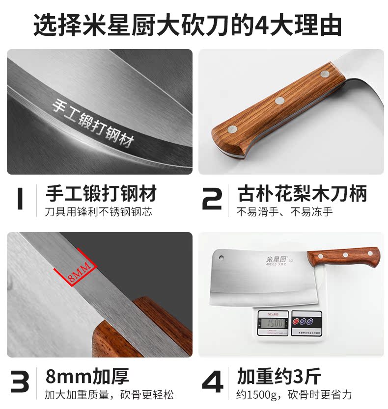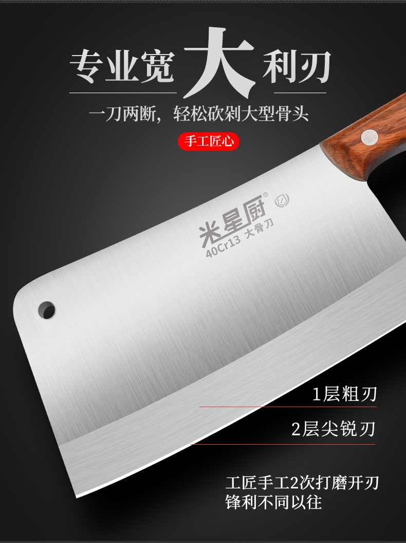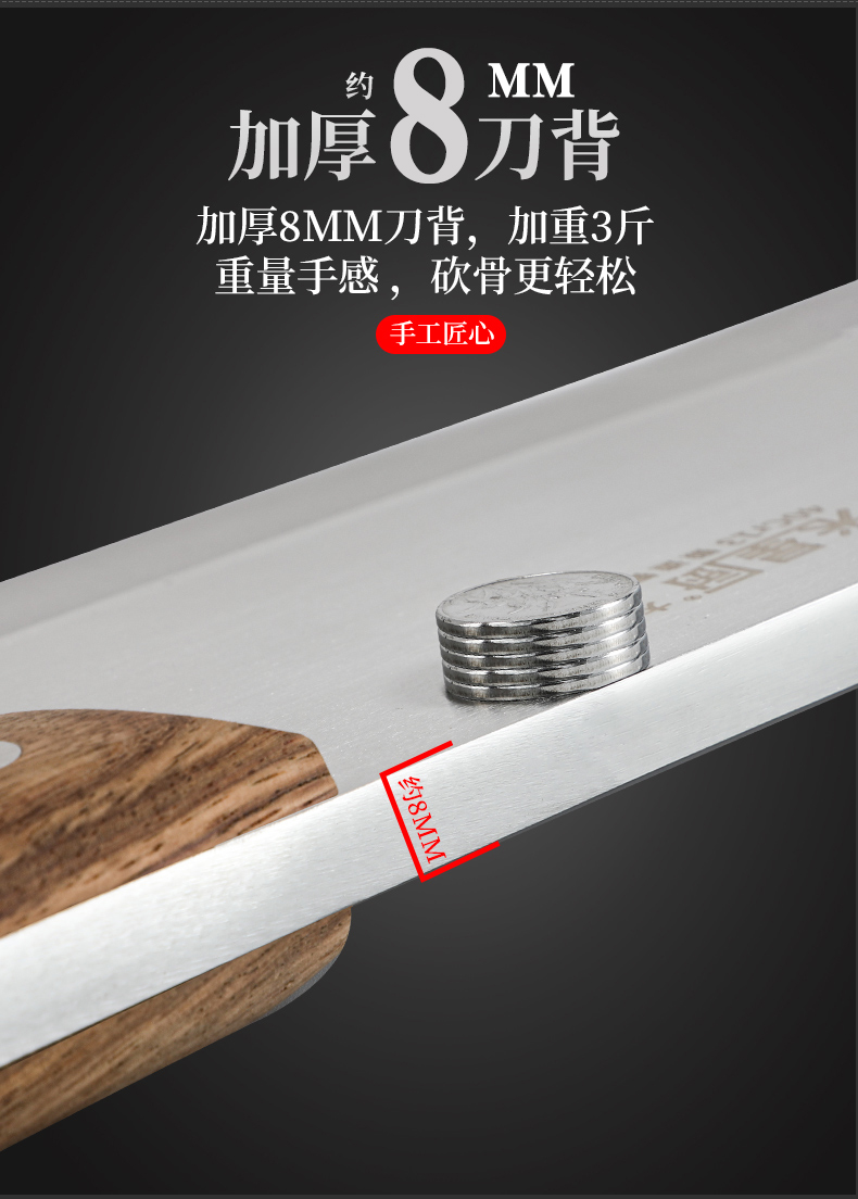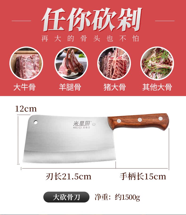 专业宽大利刀,砍骨利器,加厚7mm刀背,重大2.5斤,锋利刃口,稳固耐用,不崩口不累手,品质保证,不怕硬骨头,厨房砍骨好帮手!【赠运费险】