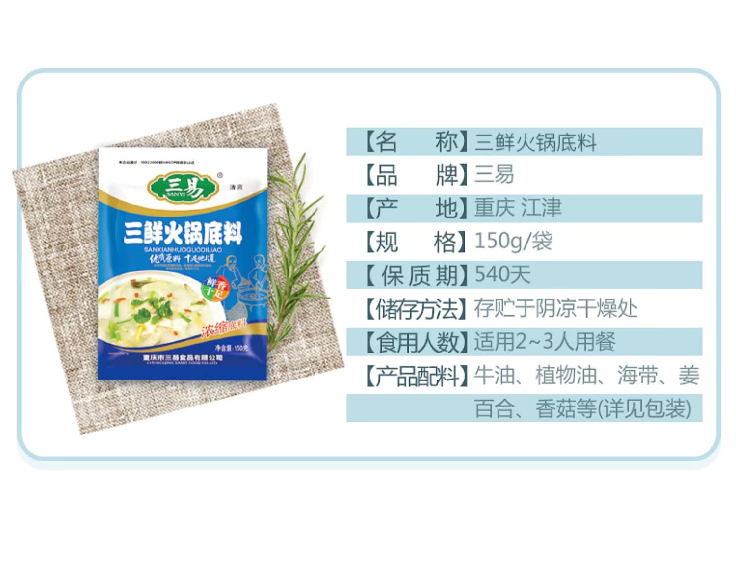 【拍2件10.8】三易三鲜火锅底料,出口级牛油熬制,清香滋补,健康暖胃,火锅、炖菜,一料多用.