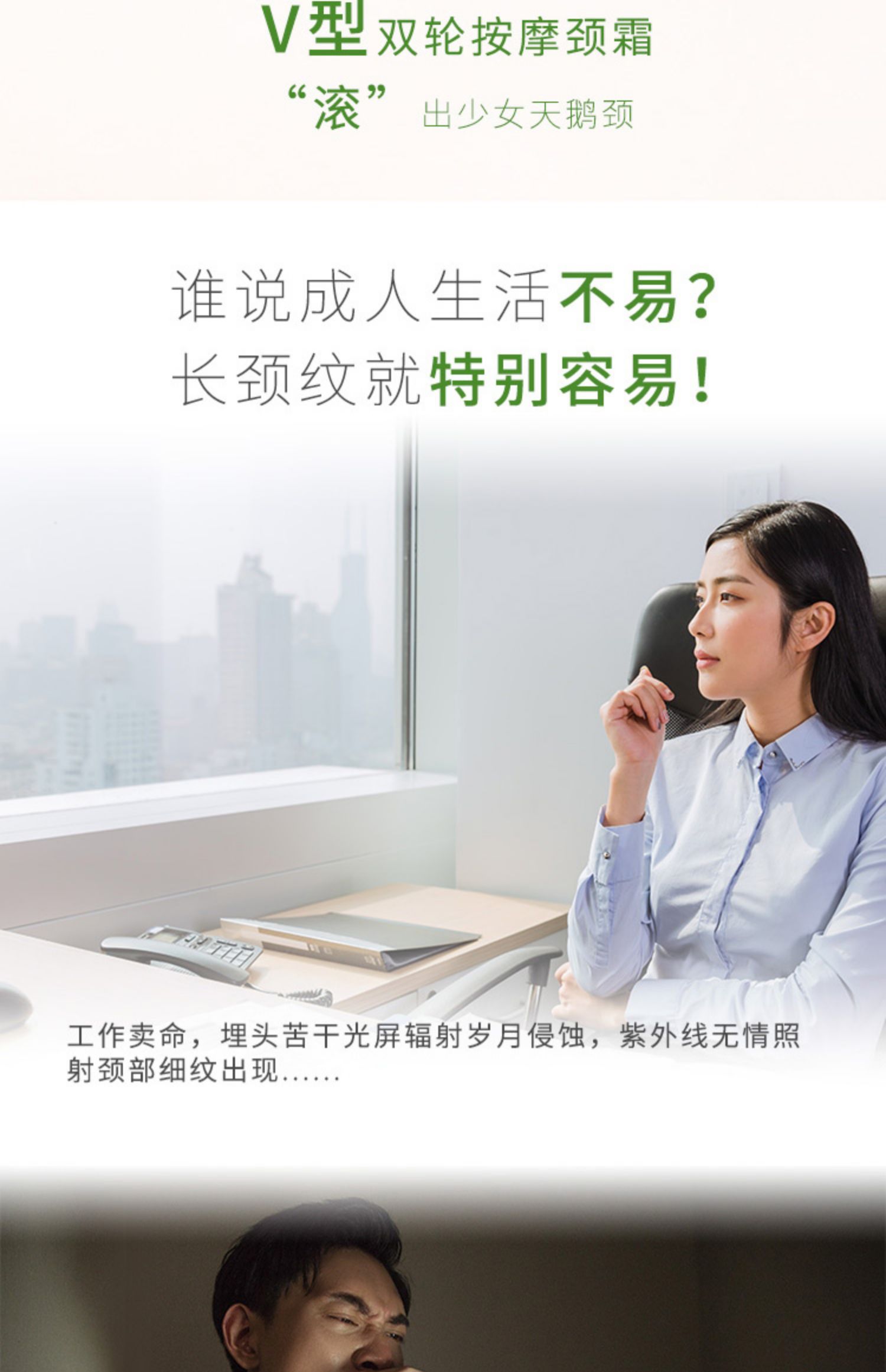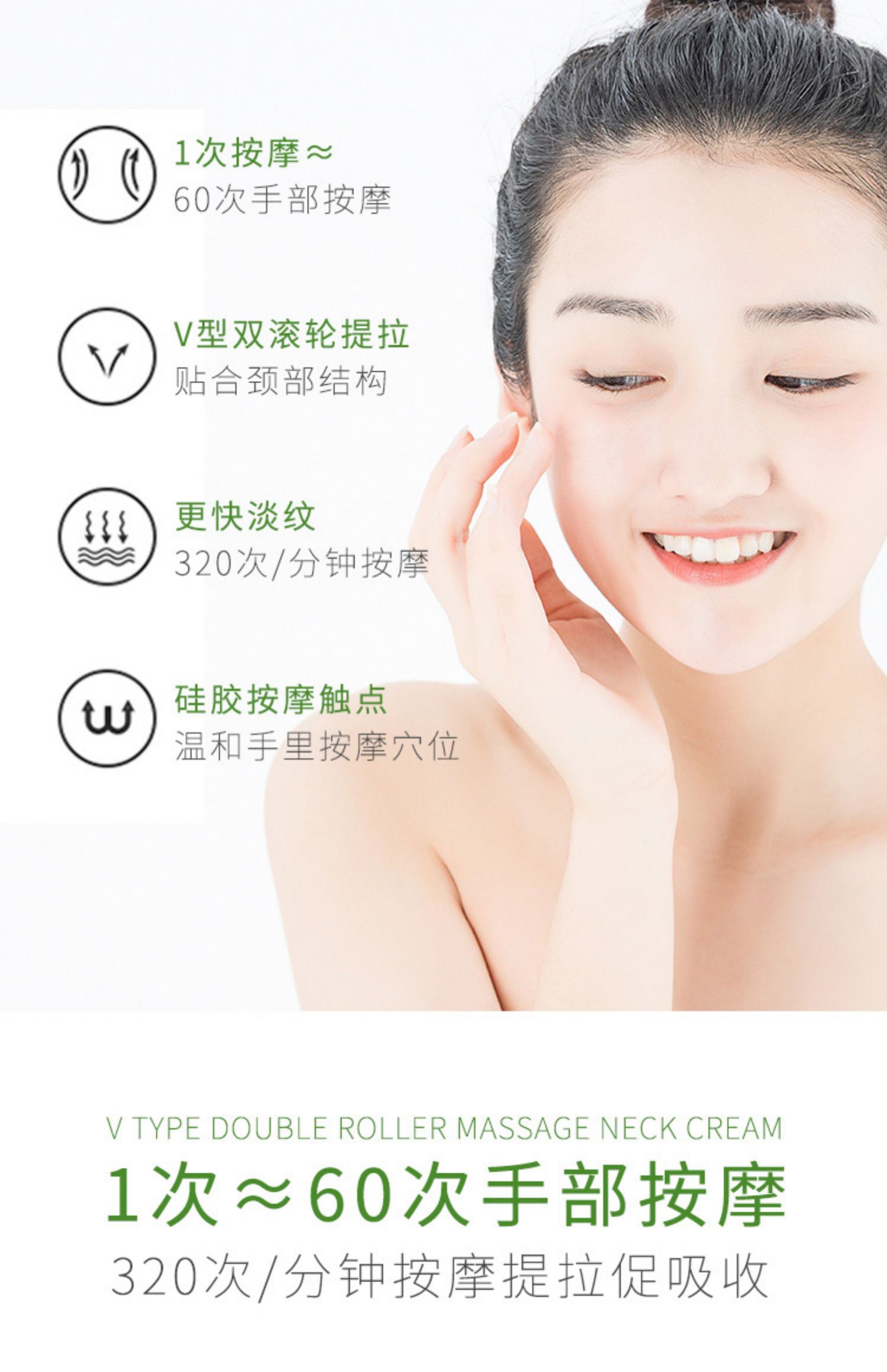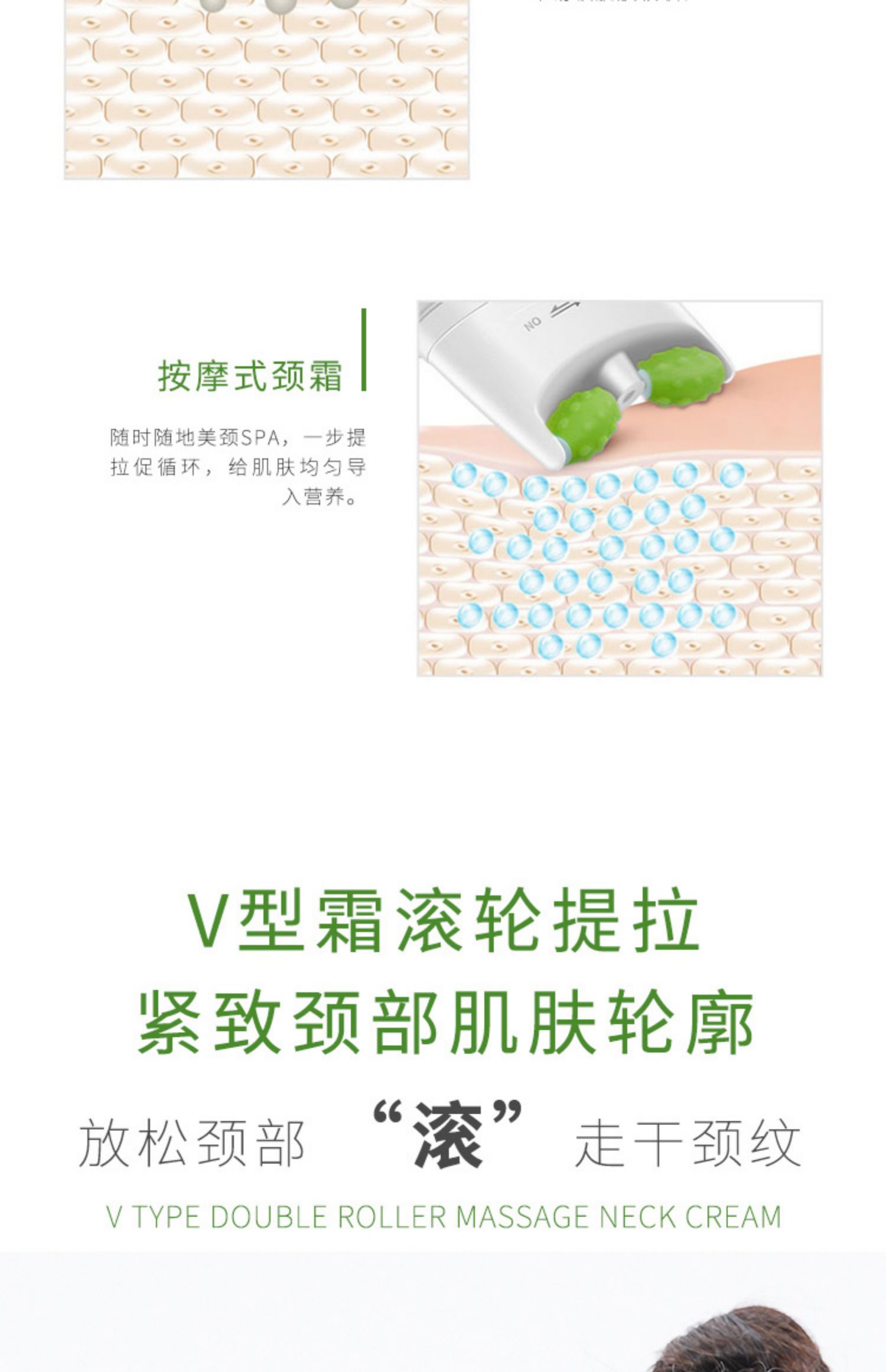 创新颈部“小滚轮”,滚走颈纹,滚走年龄纹,缓解干燥,保湿滋润!延迟颈部衰老,紧致美肤,给你不同于手涂式颈霜的全新享受!
