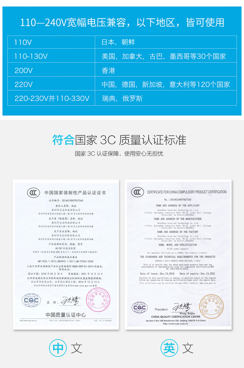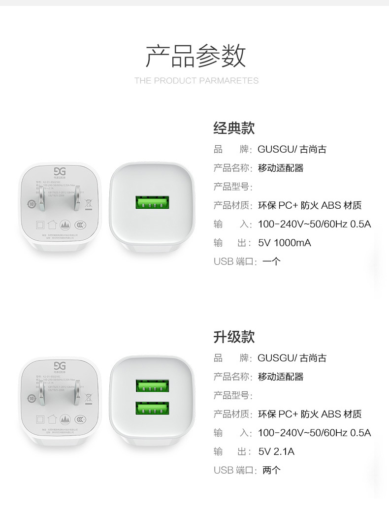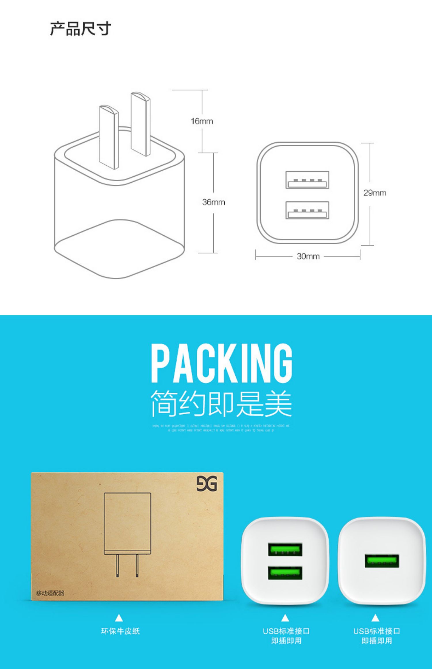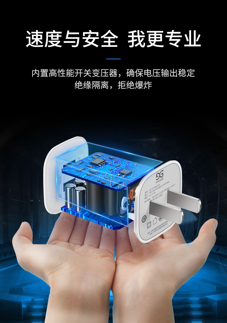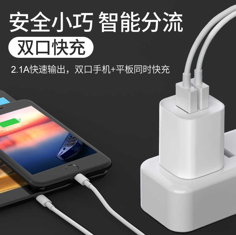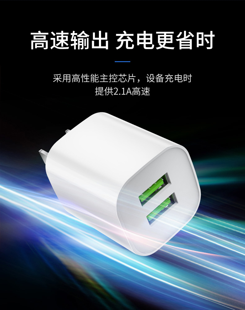 3C认证,快速充电,安全在芯,七重保护,智能兼容,双口输出,体积小巧,携带方便,一个充电器满足你所有的需求
