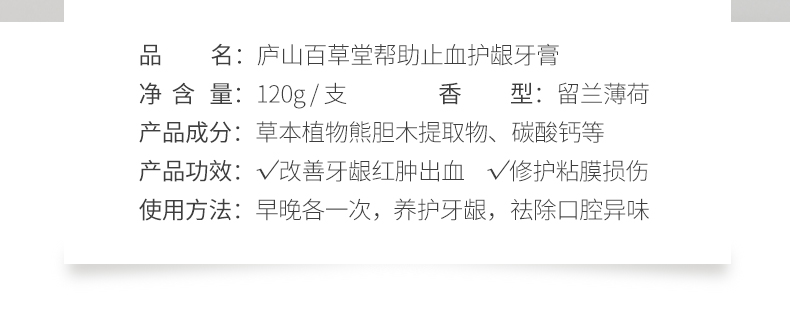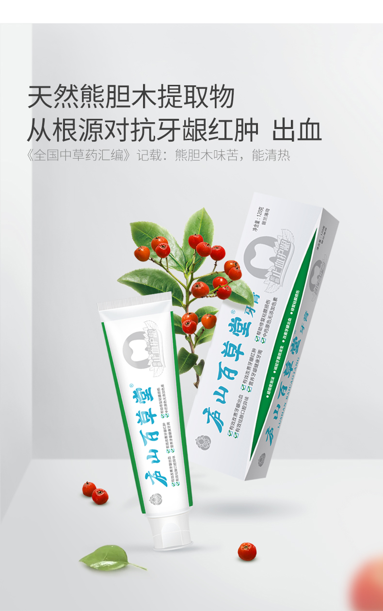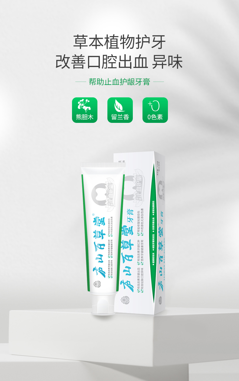草本植物护牙改善口腔出血异味,清热降火祛口臭,给予牙龈SPA般享受,天然熊胆木提取物,从根源对抗牙龈红肿出血,草本原色,无添加色素,优质软性洁牙磨料,减少摩擦不伤牙釉质