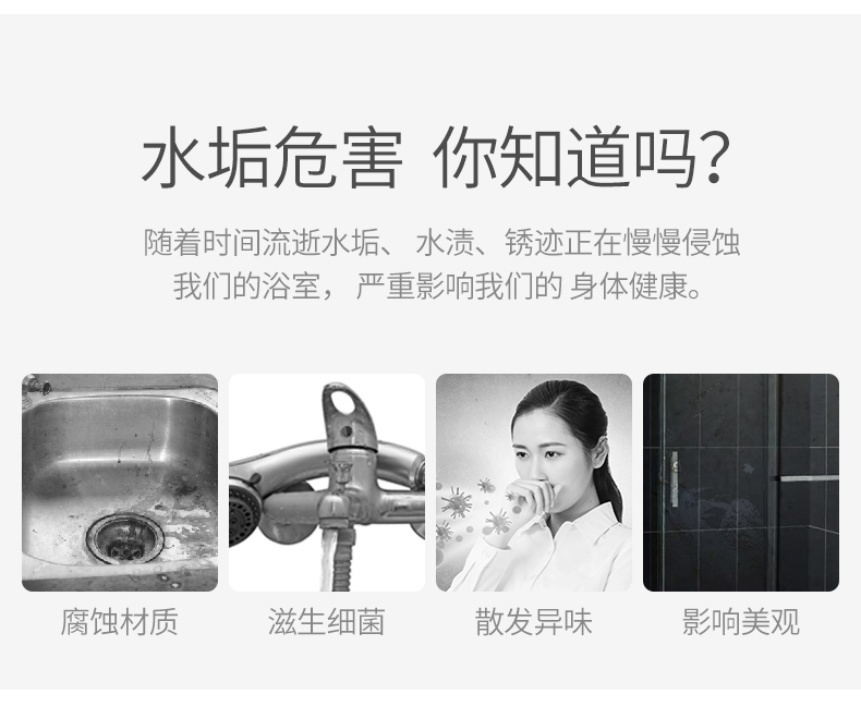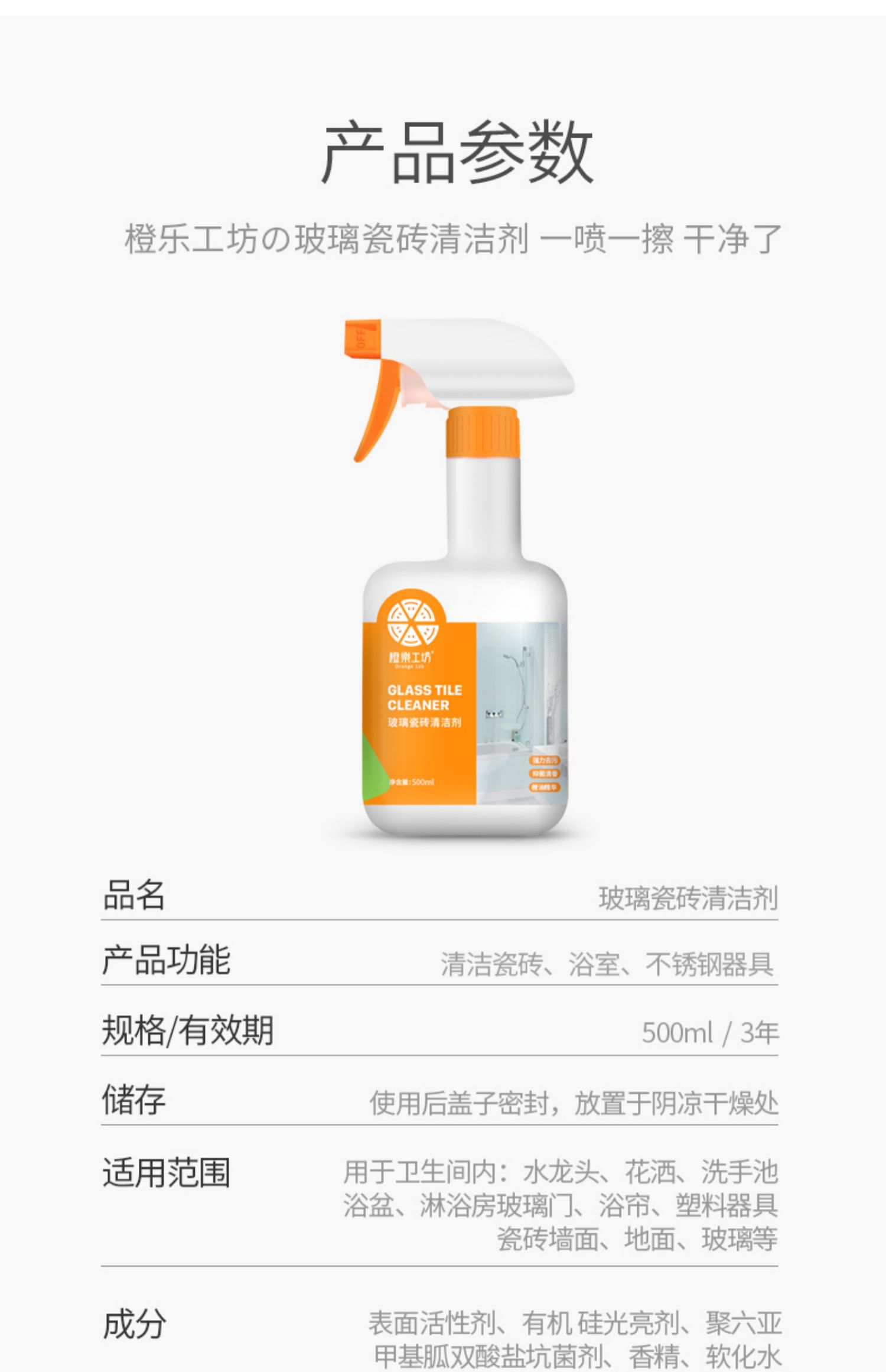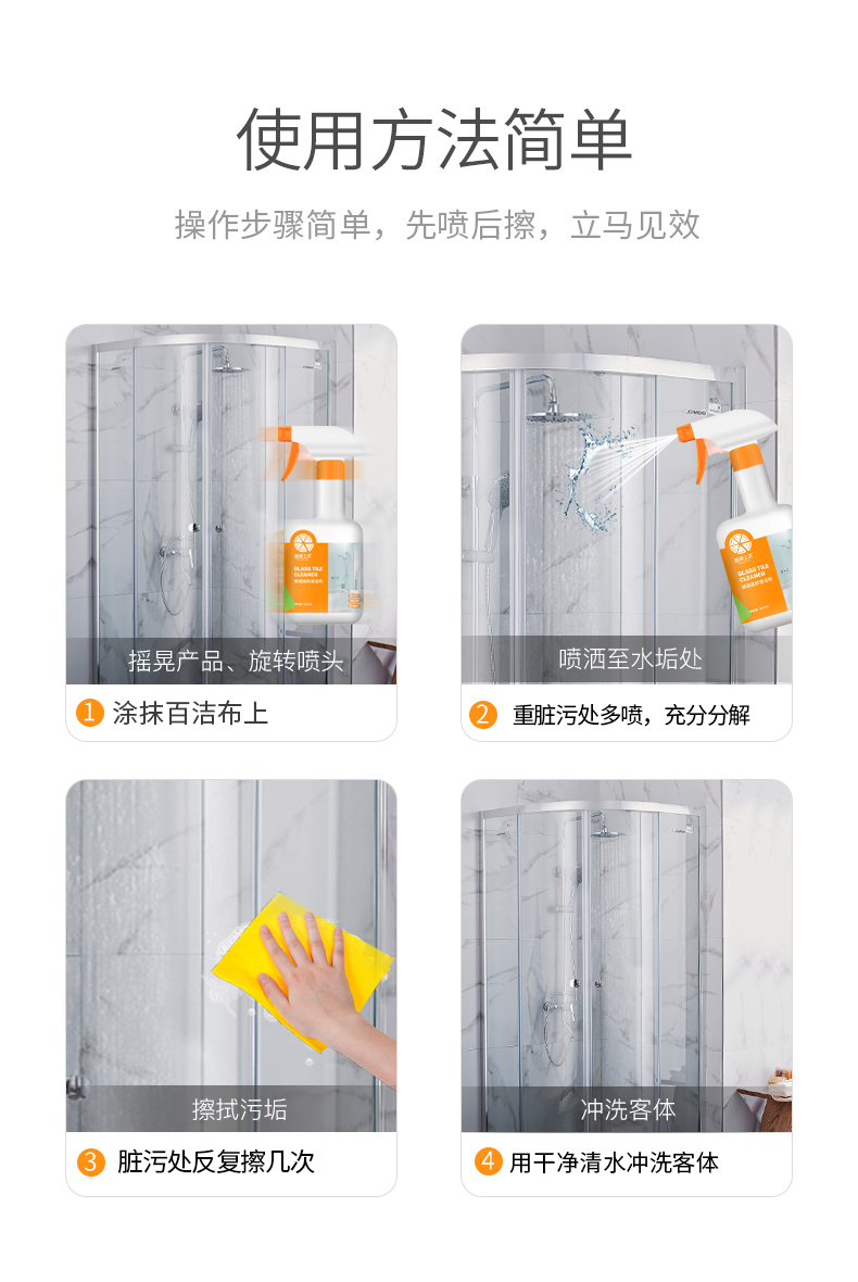 【居家神器,下单就送海绵擦!】一喷一擦轻松搞定!浴室玻璃,瓷砖等顽固的水垢污渍,轻松除垢去污!安全无残留,不伤瓷砖更能延长使用寿命哦。居家必备的清洁神器!
