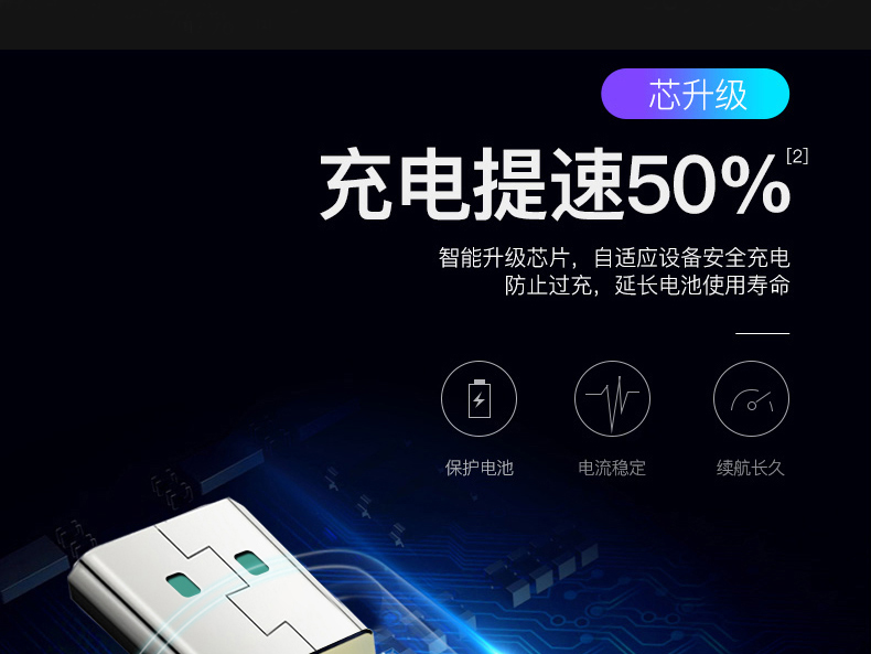 安卓专用数据线,全面兼容,安全快充,安全保护,80分钟充满手机,升级铝合金接头,线身抗拉扯更耐用,稳定传输,边充边玩不发烫。