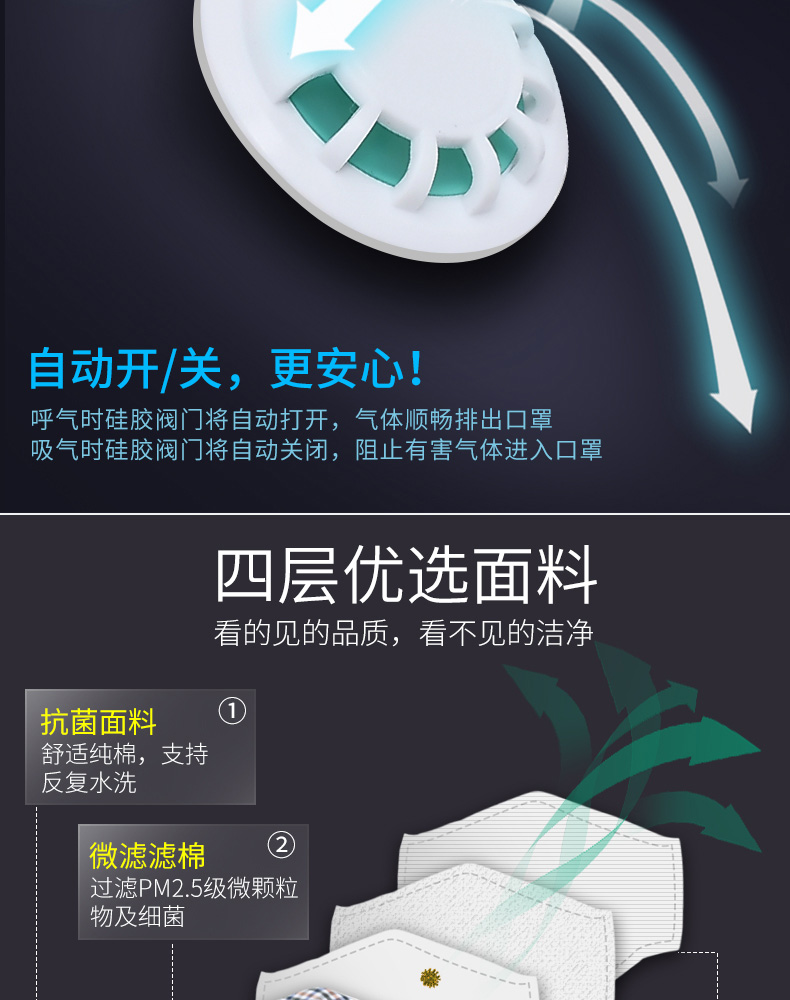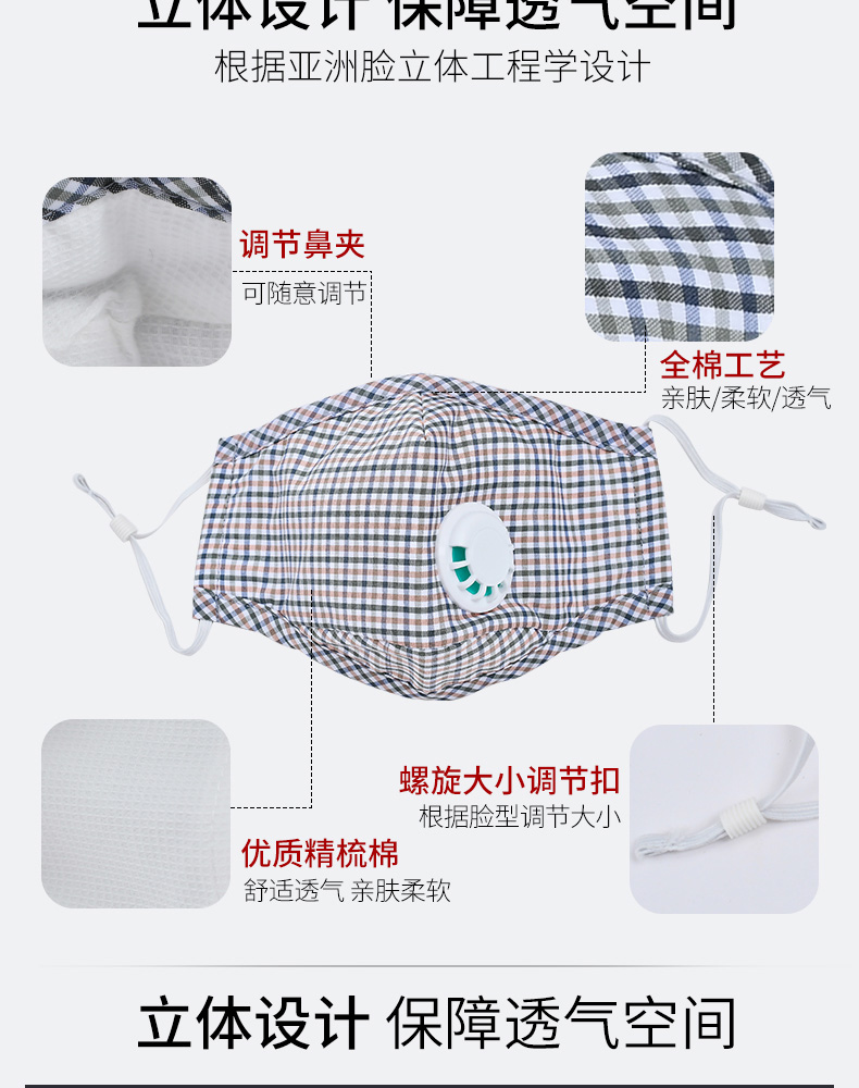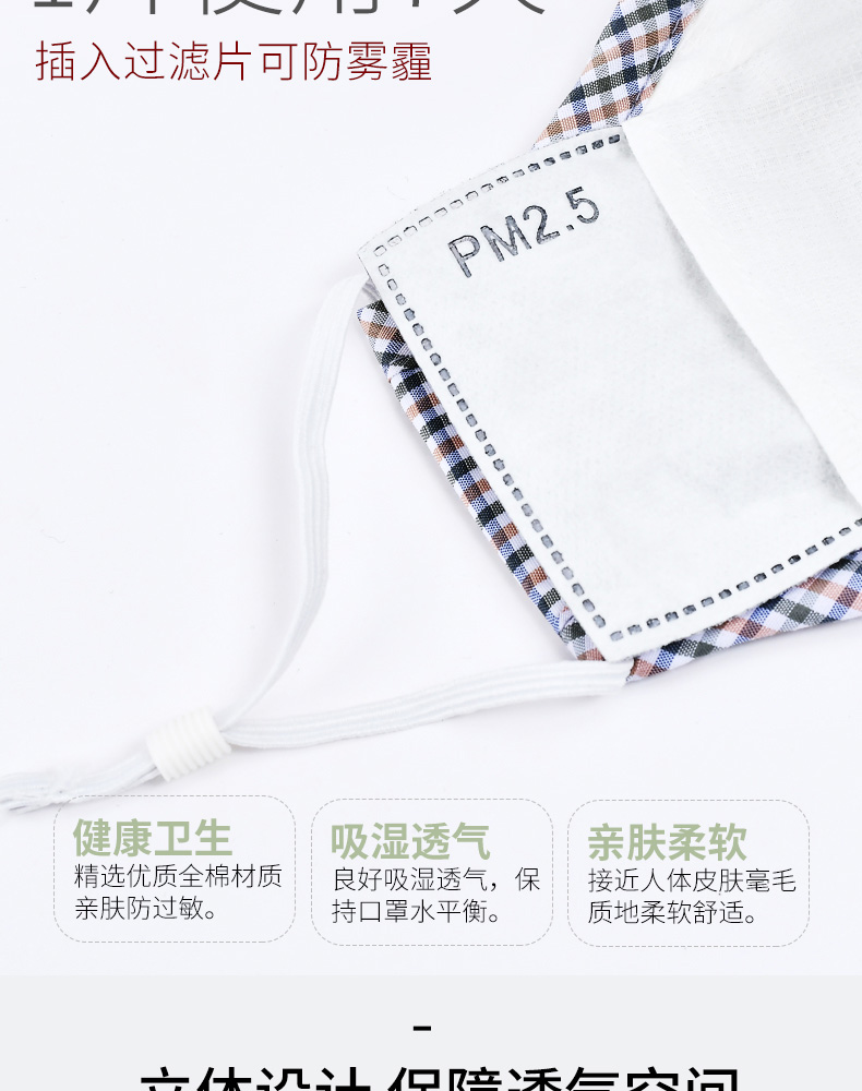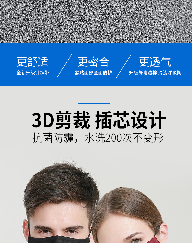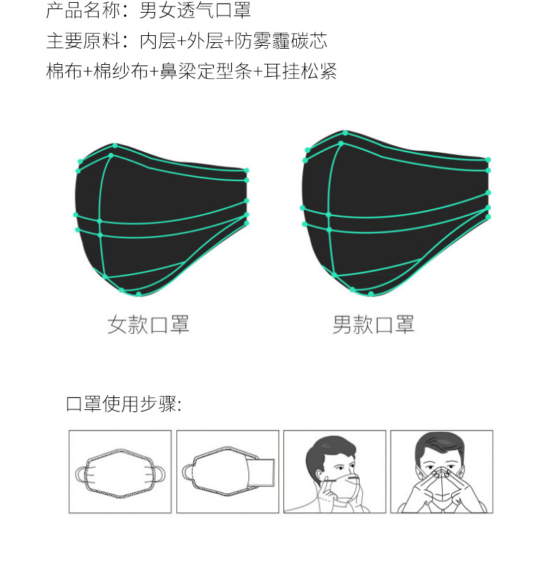 防雾霾空气纯棉口罩,低阻率呼吸高效微滤,再糟糕的天气也能微笑面对,创新360度适应性密封圈,,密闭贴合面部防止泄露,立体结构空气泡泡设计,畅呼吸,不闷气,出行必备