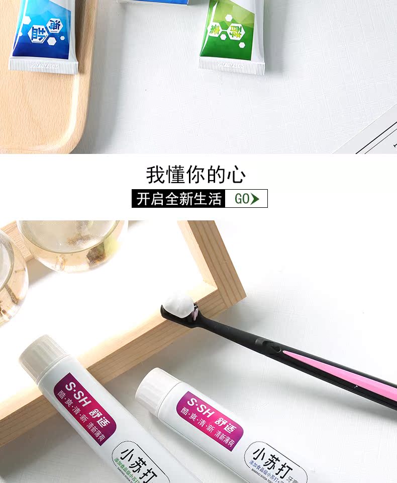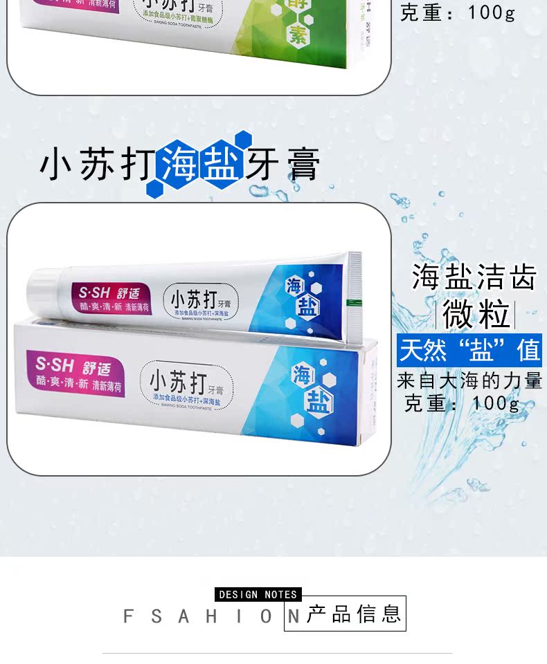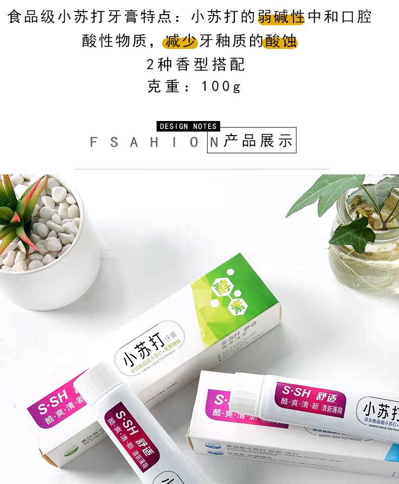 食品级小苏打,可减少牙釉质的酸蚀,两种香型的搭配,可改善口腔,达到清洁牙齿,清新口气的效果欧~