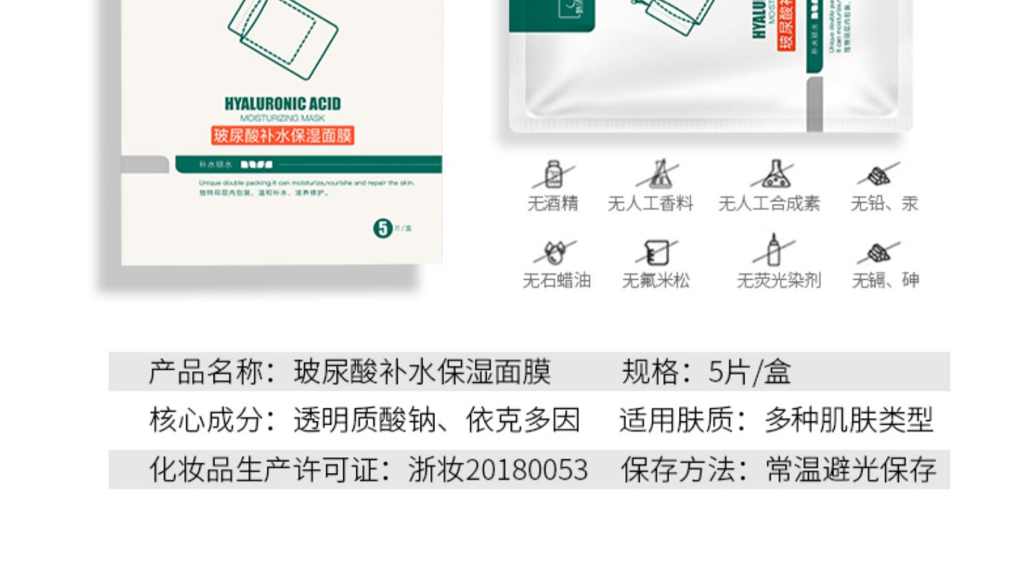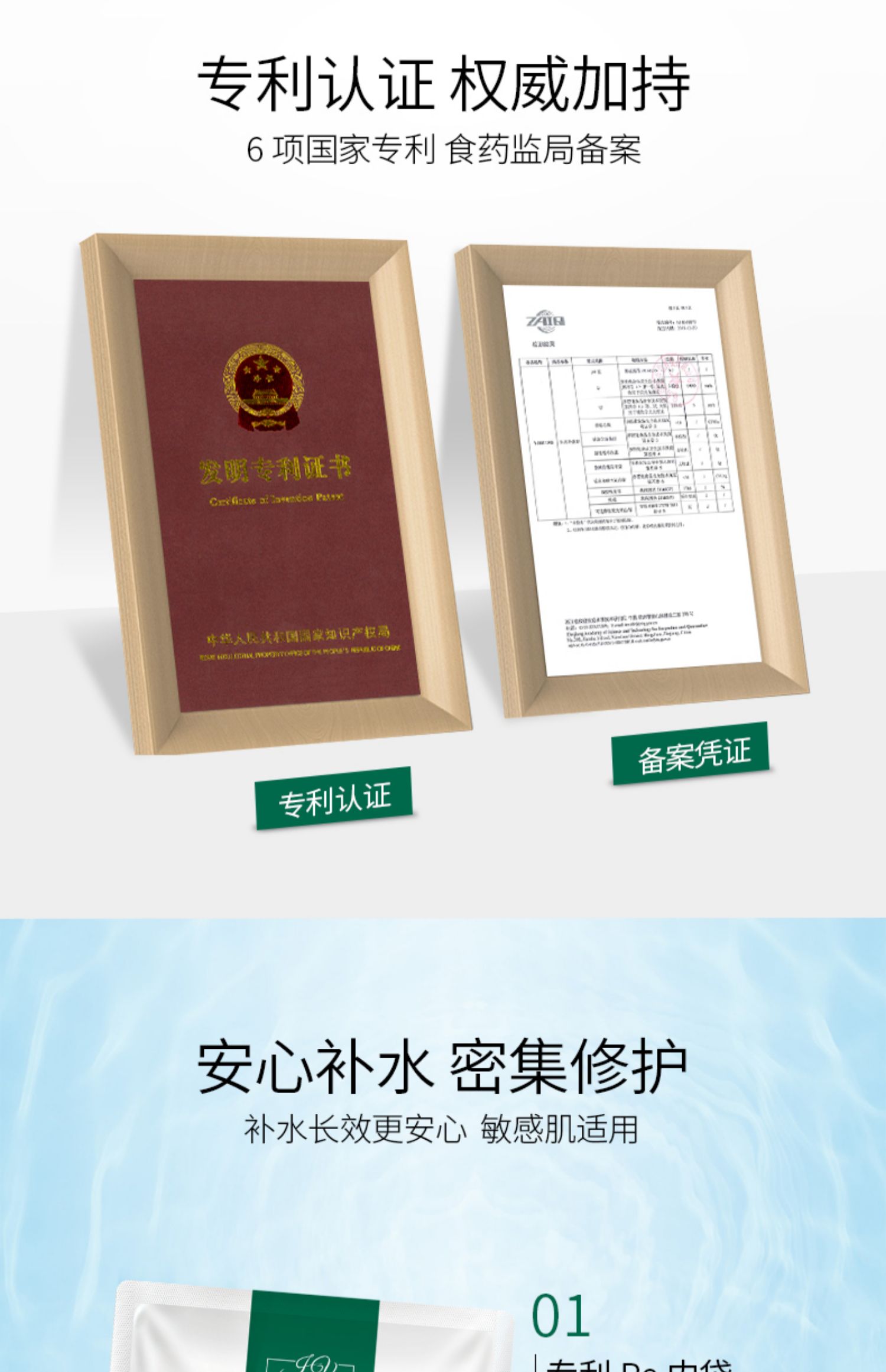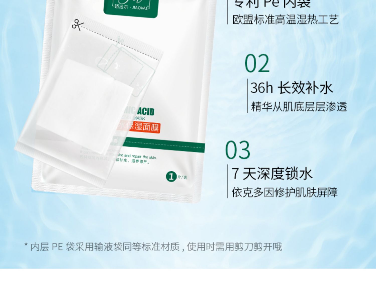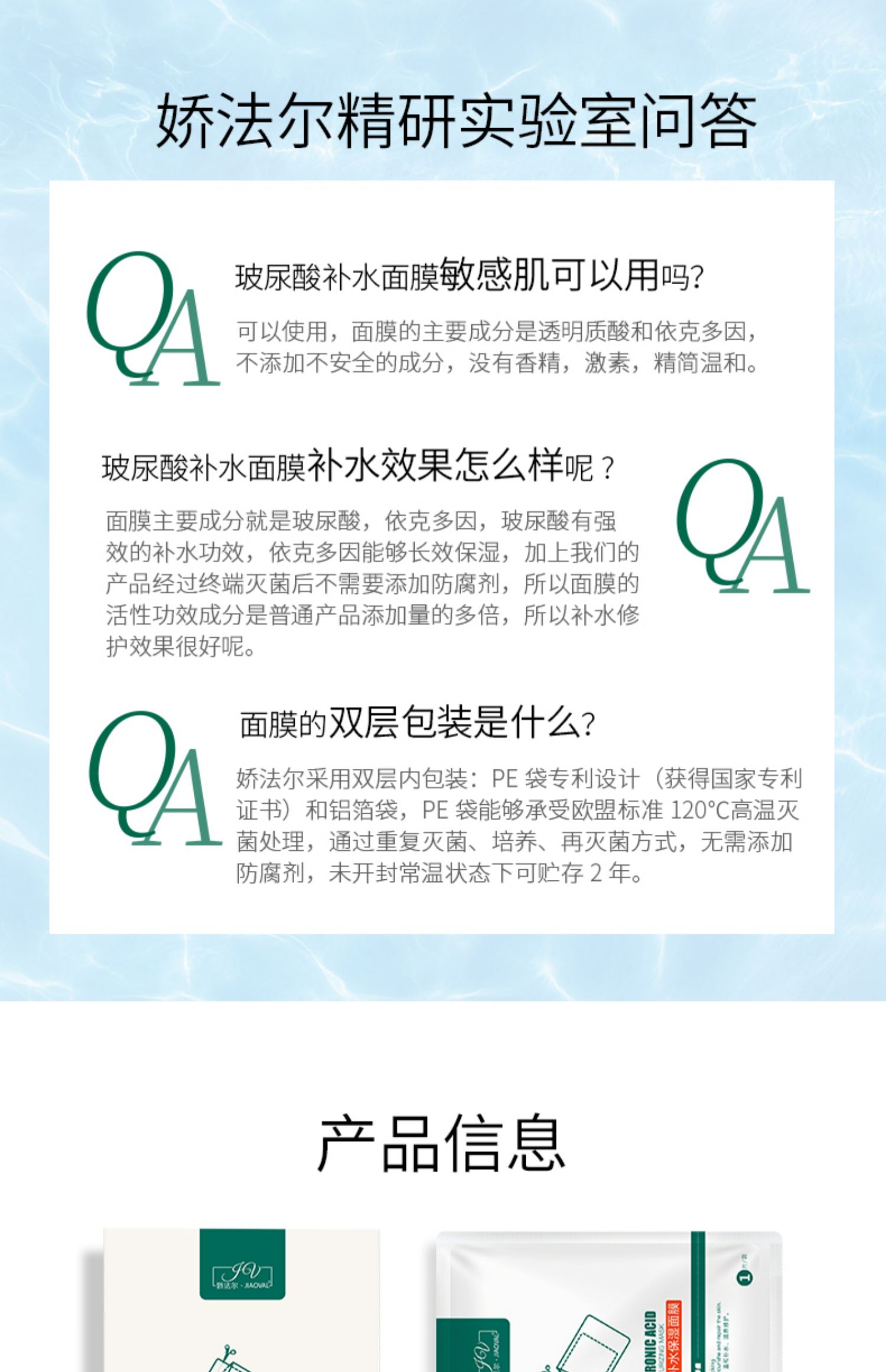 【买一盒送一片】专利产品娇法尔玻尿酸补水保湿修护面膜,温和安全,长效补水,深度锁水,6大专利,食品药监备案,安全补水“大膜王”