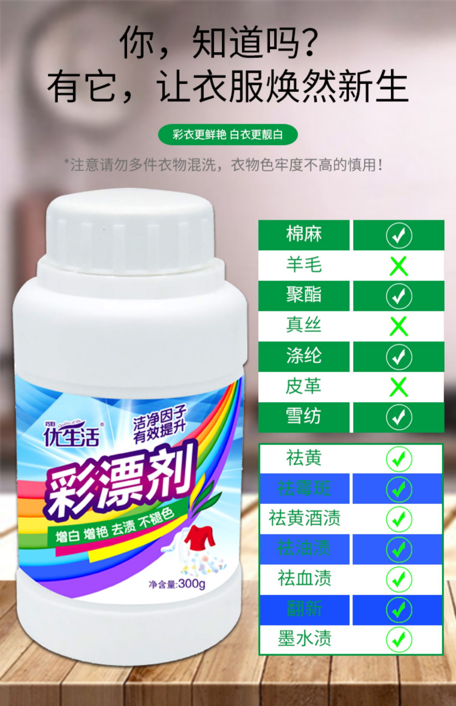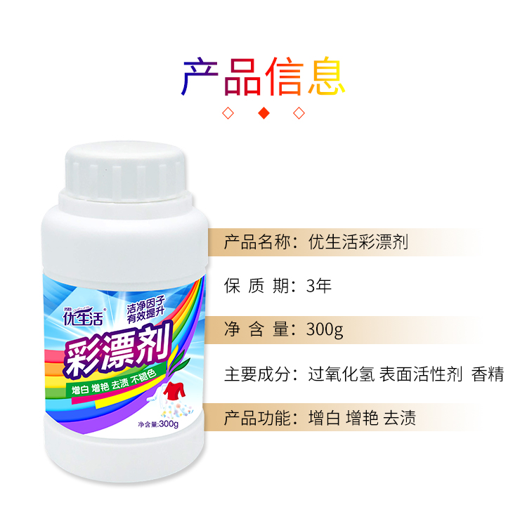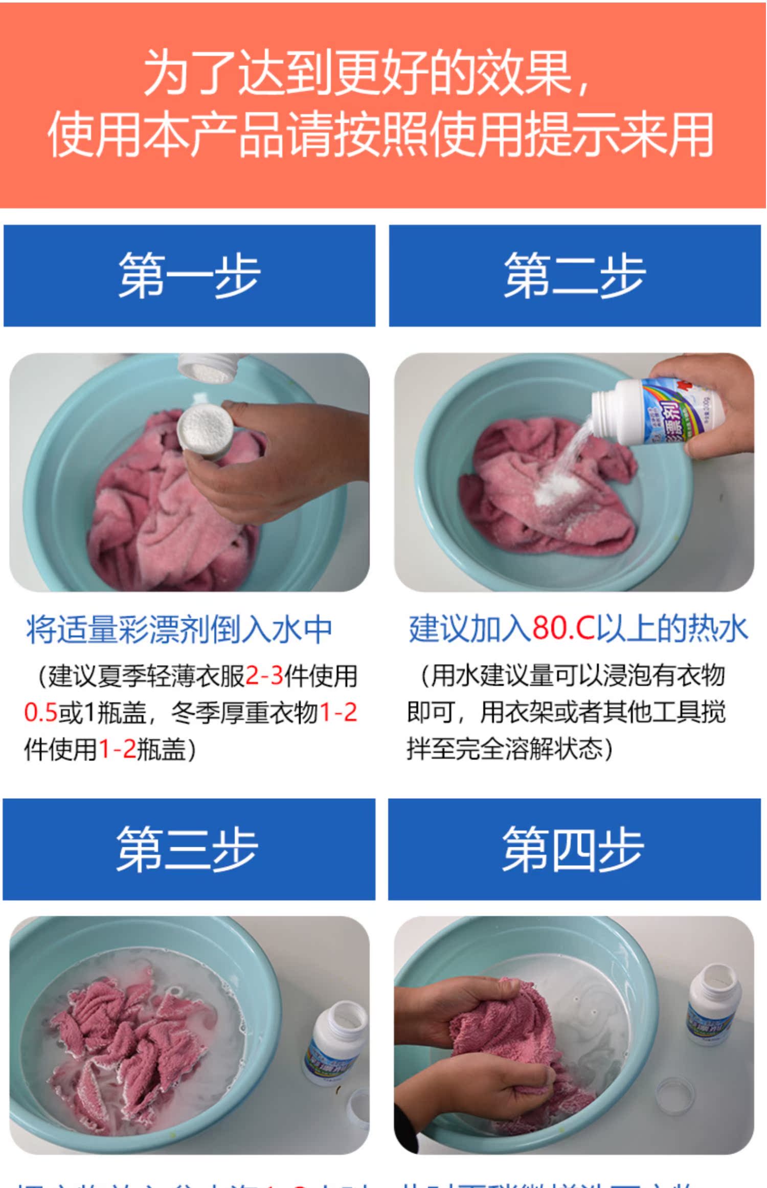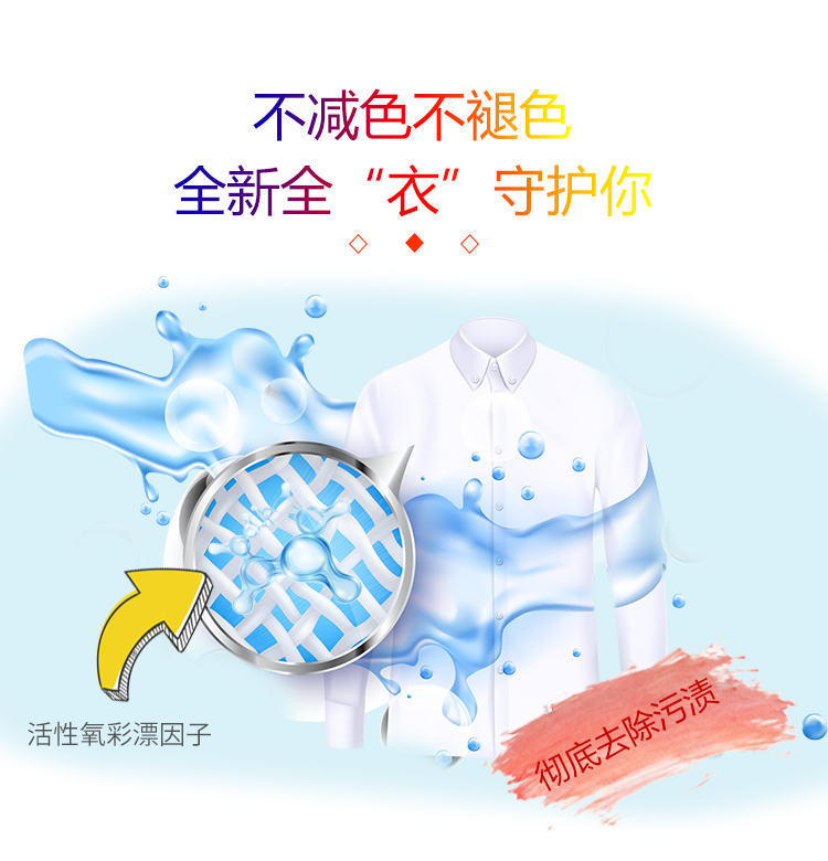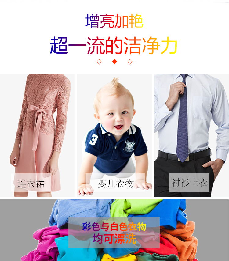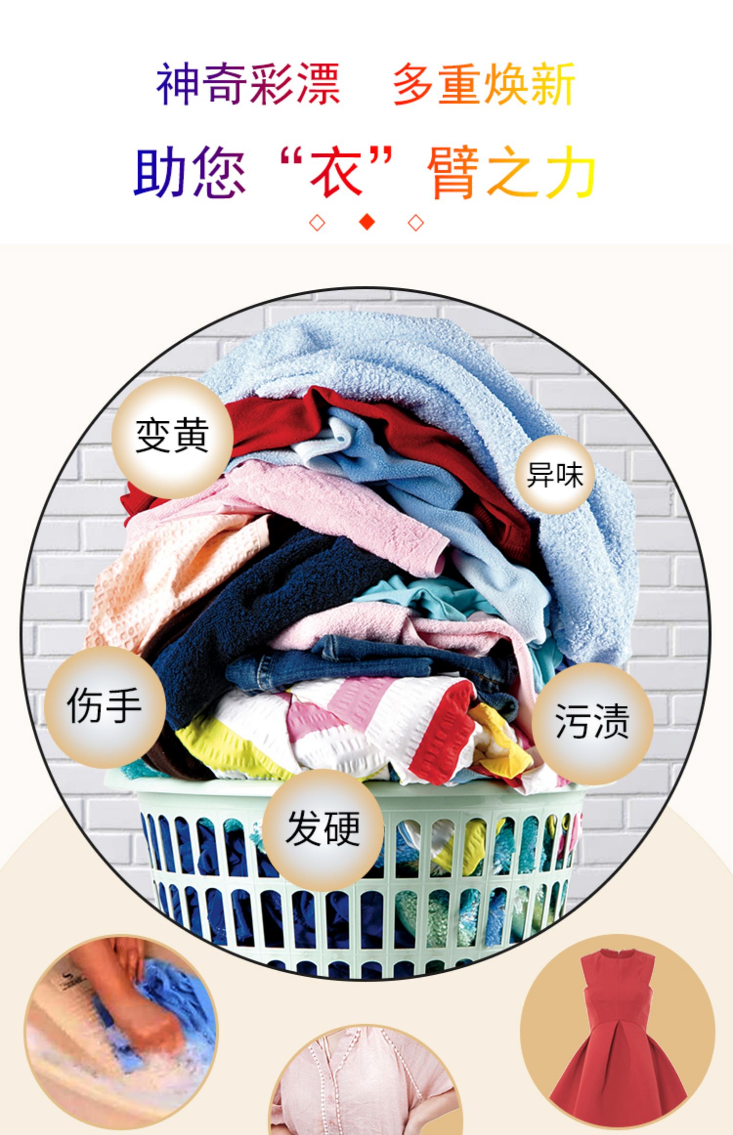 去污增白彩漂粉,衣物去黄增艳,氧去污,海盐抑菌,温和配方,不含荧光剂,漂白去渍,洁净亮丽,护色增色,除油渍固渍,翻新,杀菌去味,瞬间起效,效果持久,居家好帮手,让您更省心。【赠运费险】