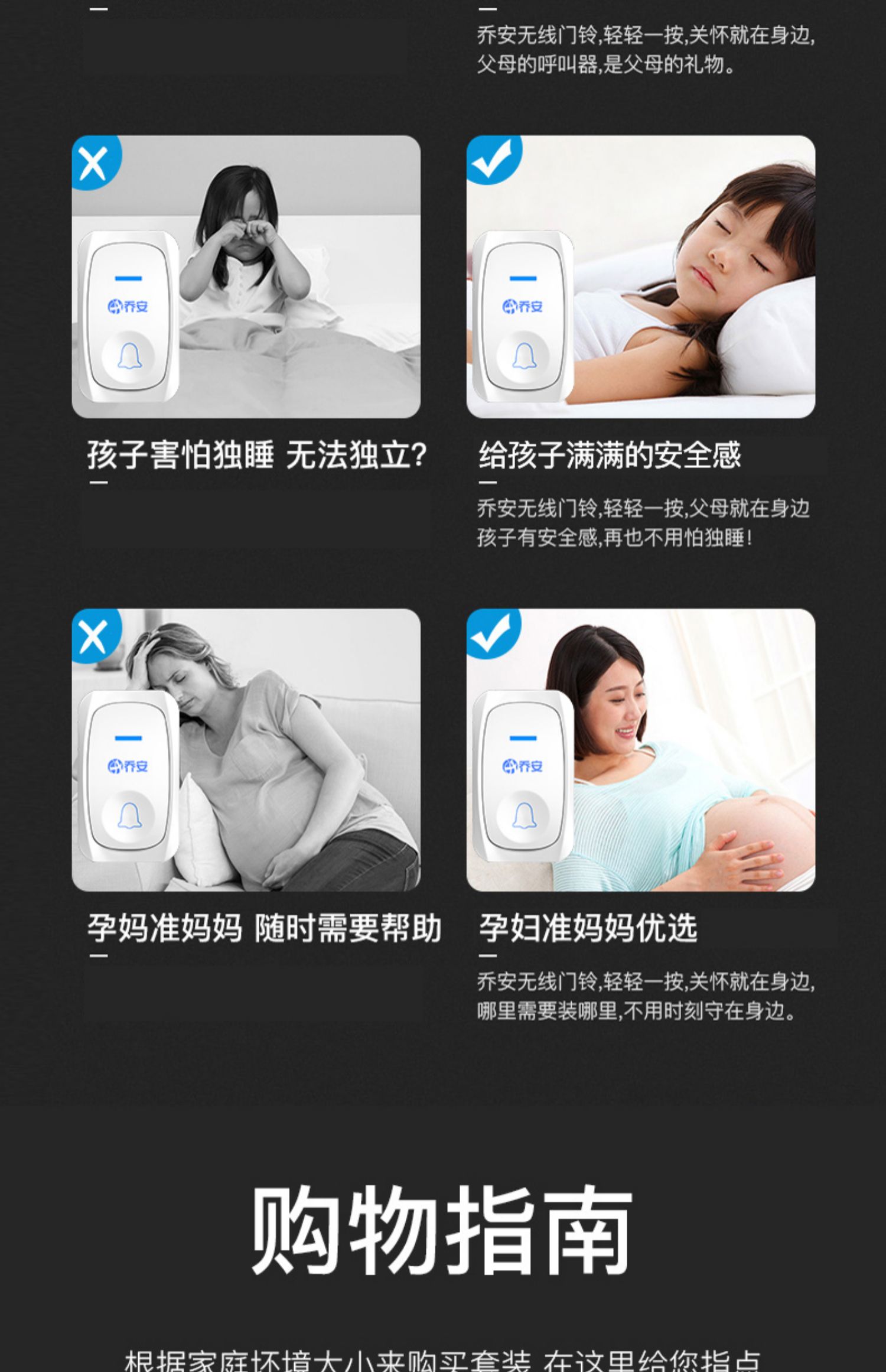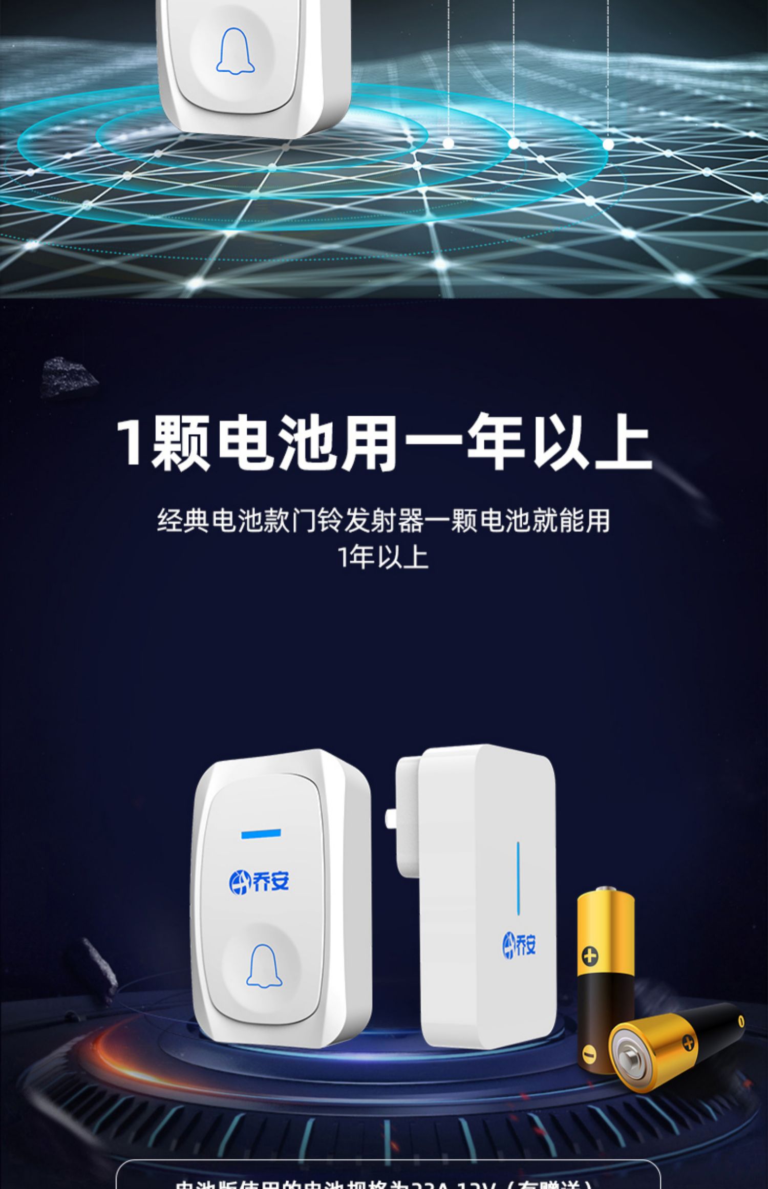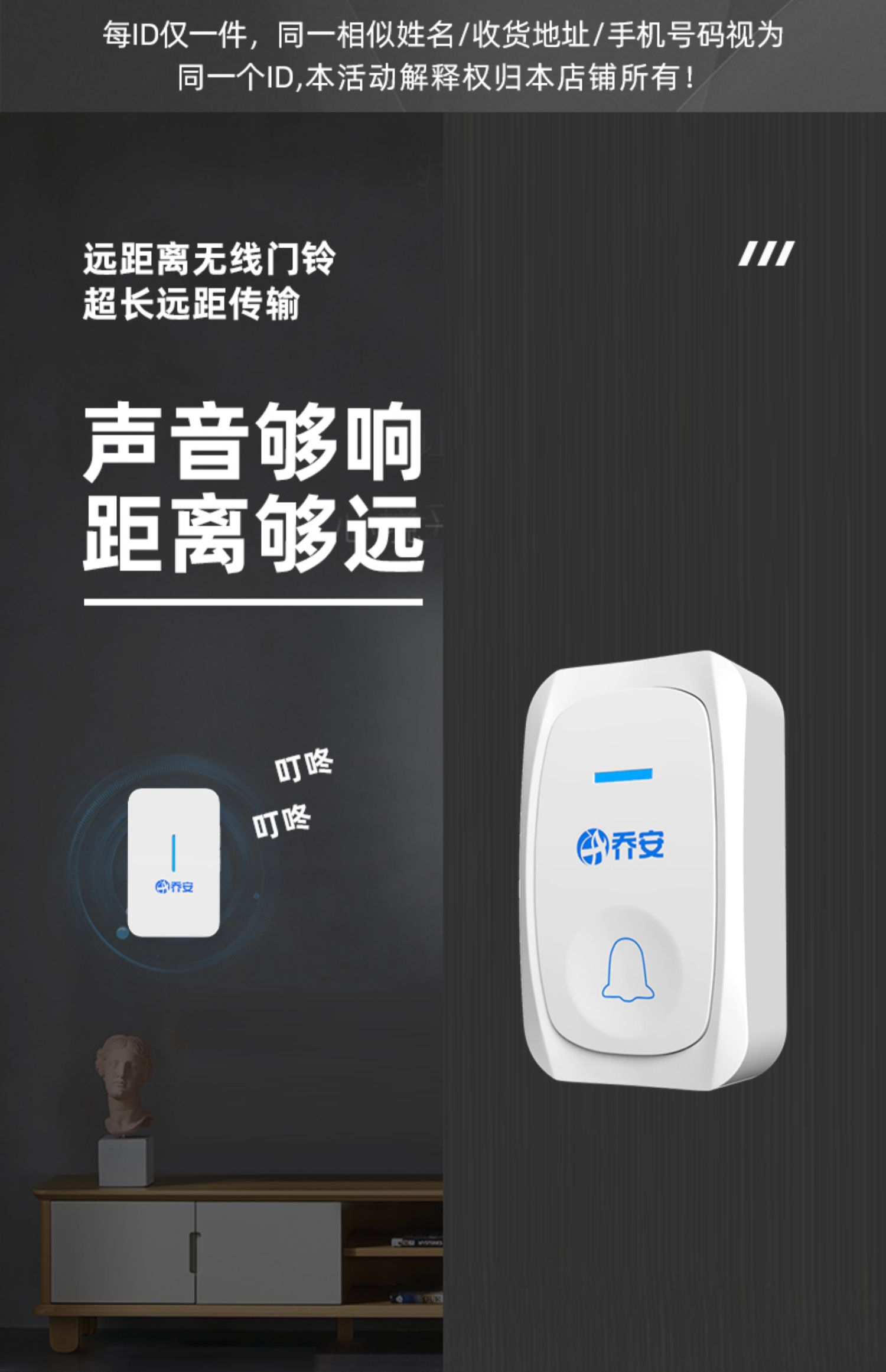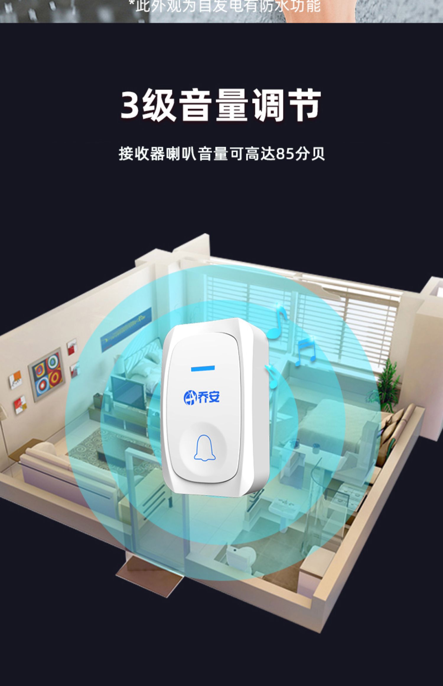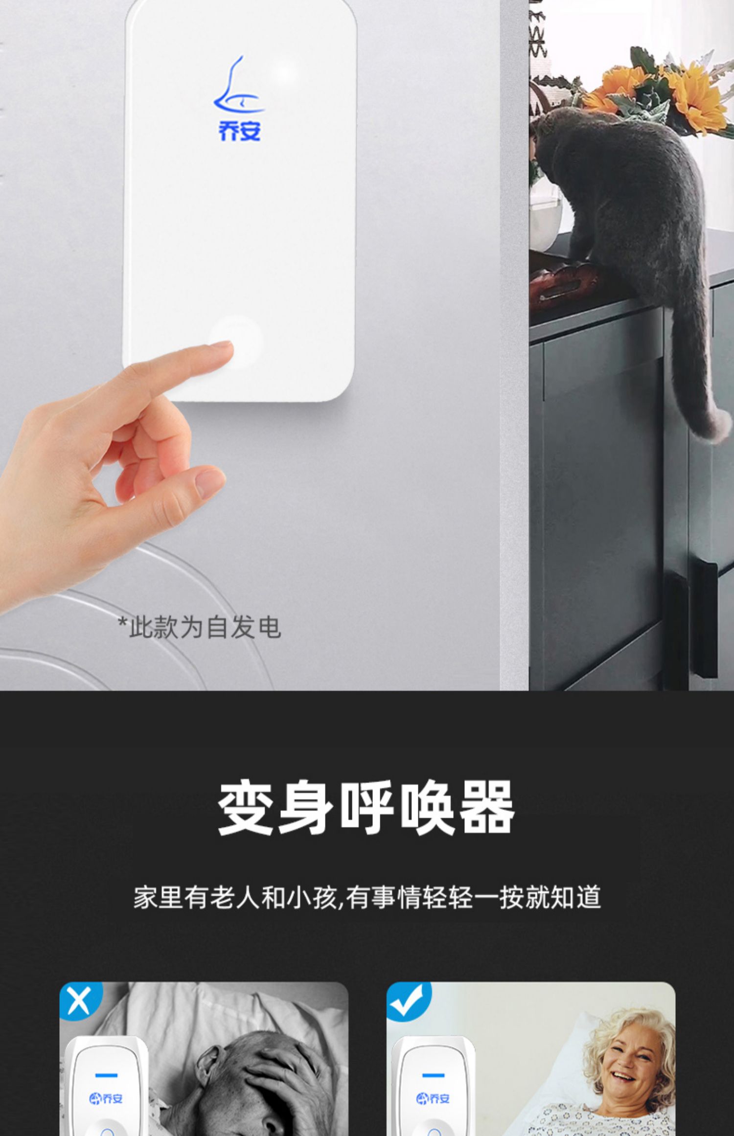 【赠运费险】乔安门铃知名品牌,无线家用电子遥控,自发电超远距离一拖一拖二电子呼叫器,超长远距传输超强穿透不误响大音量无线环保,超级划算赶紧秒!
