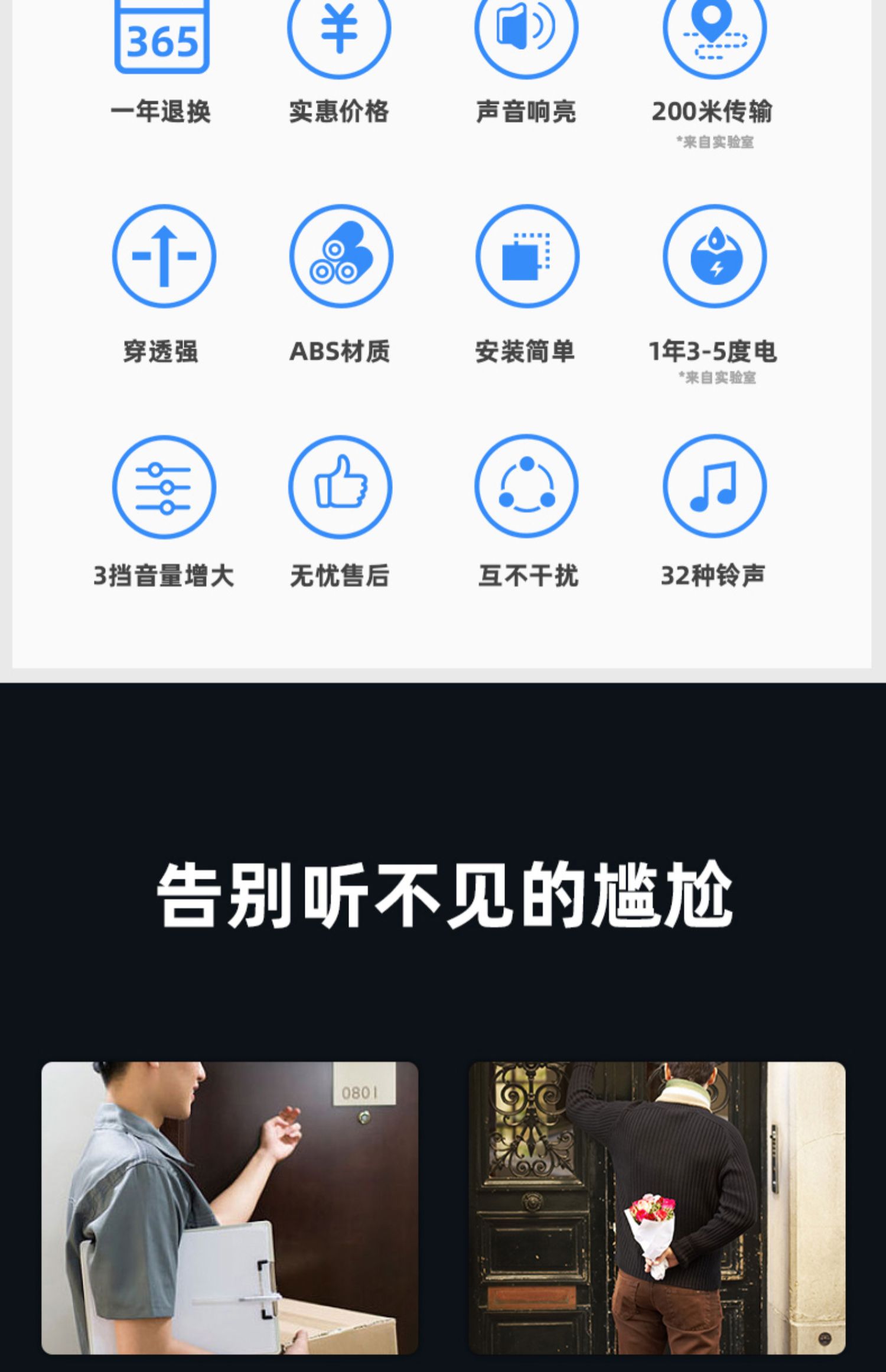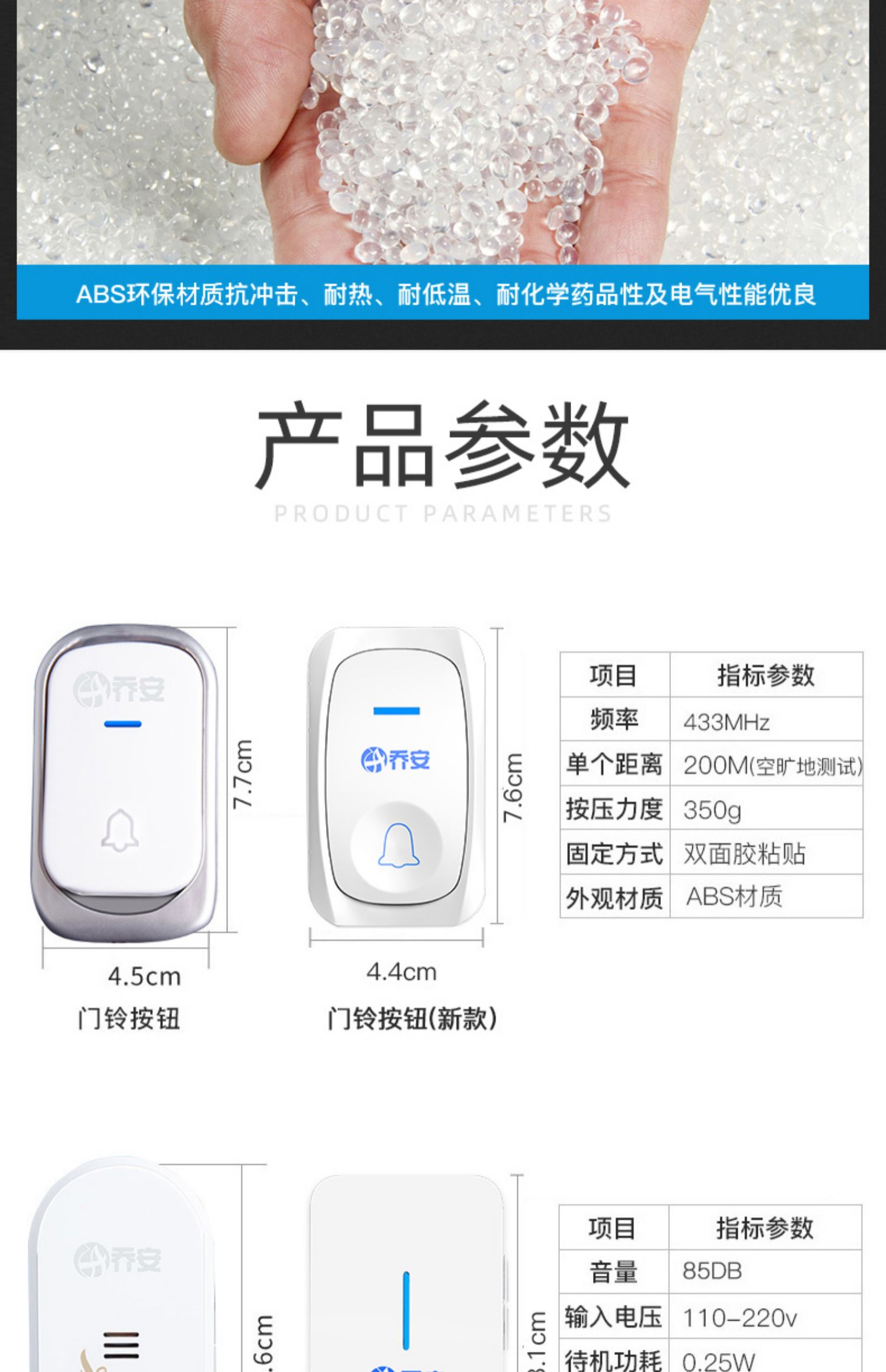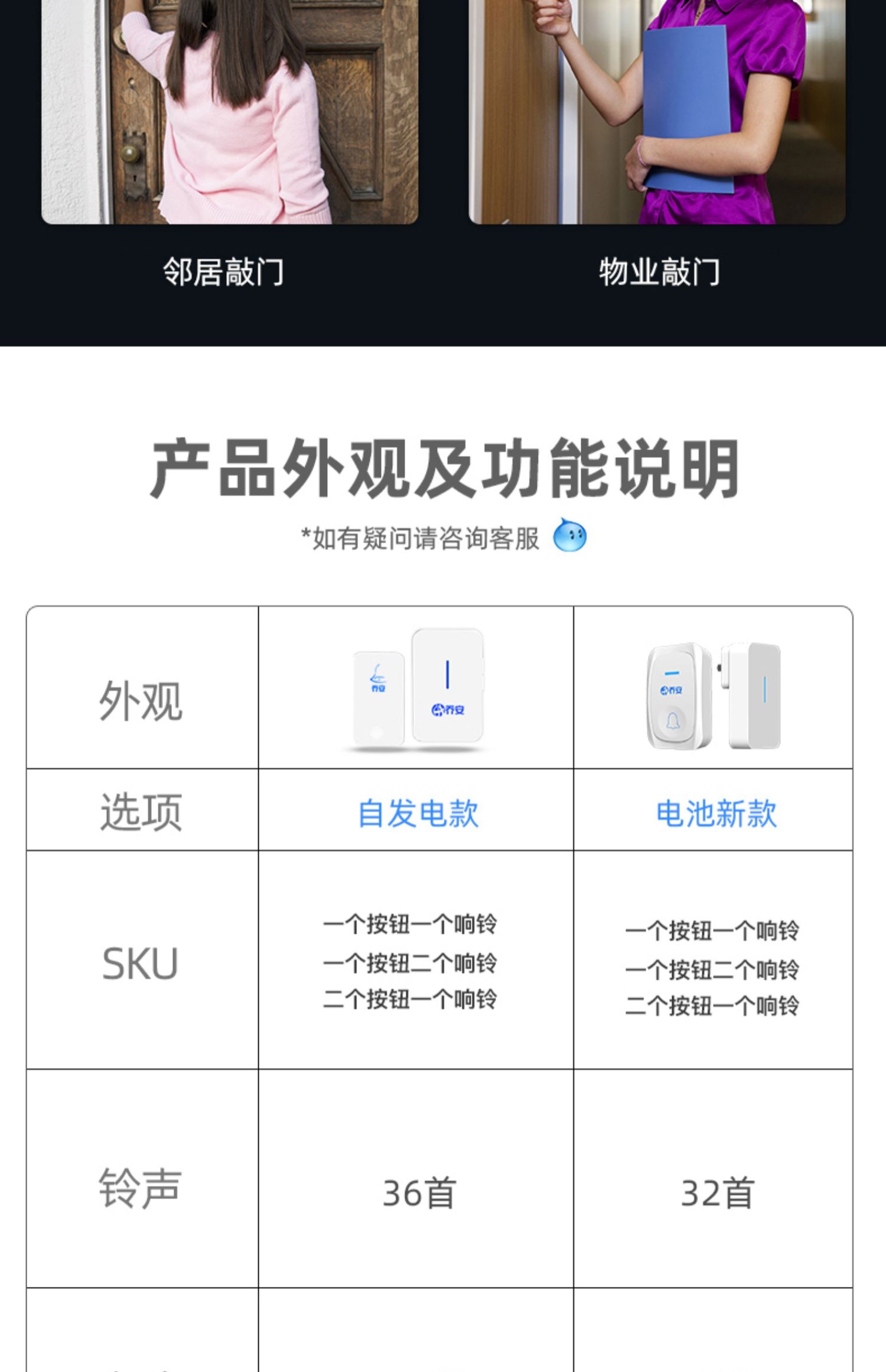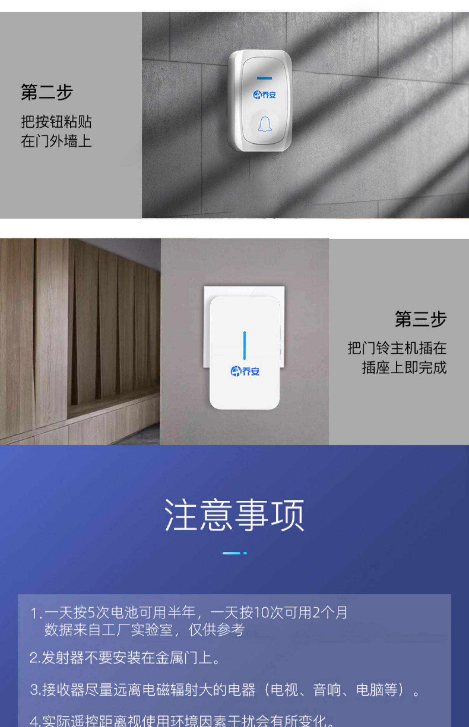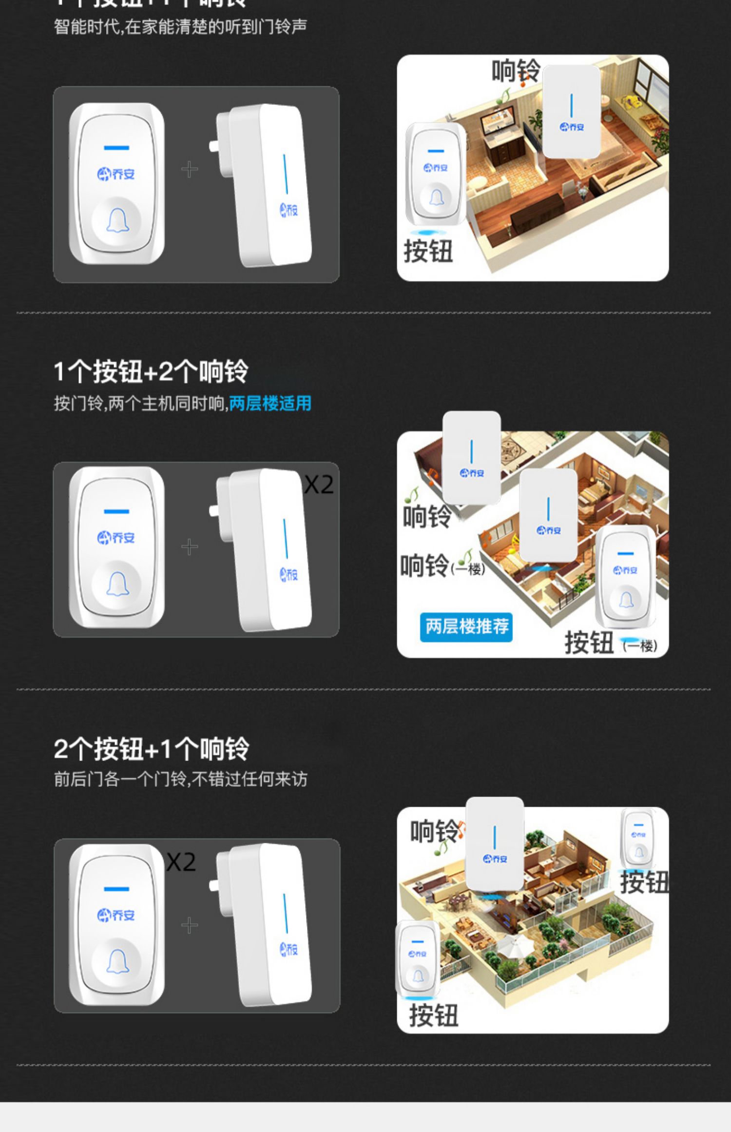 【赠运费险】乔安门铃知名品牌,无线家用电子遥控,自发电超远距离一拖一拖二电子呼叫器,超长远距传输超强穿透不误响大音量无线环保,超级划算赶紧秒!