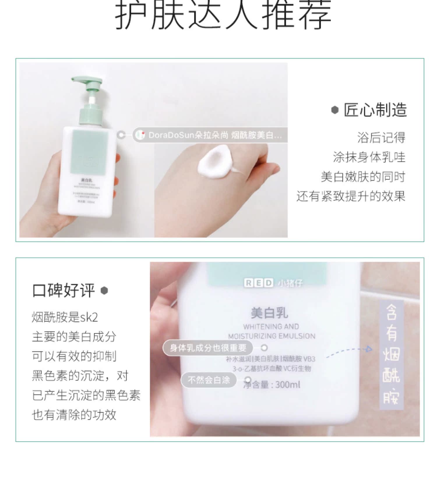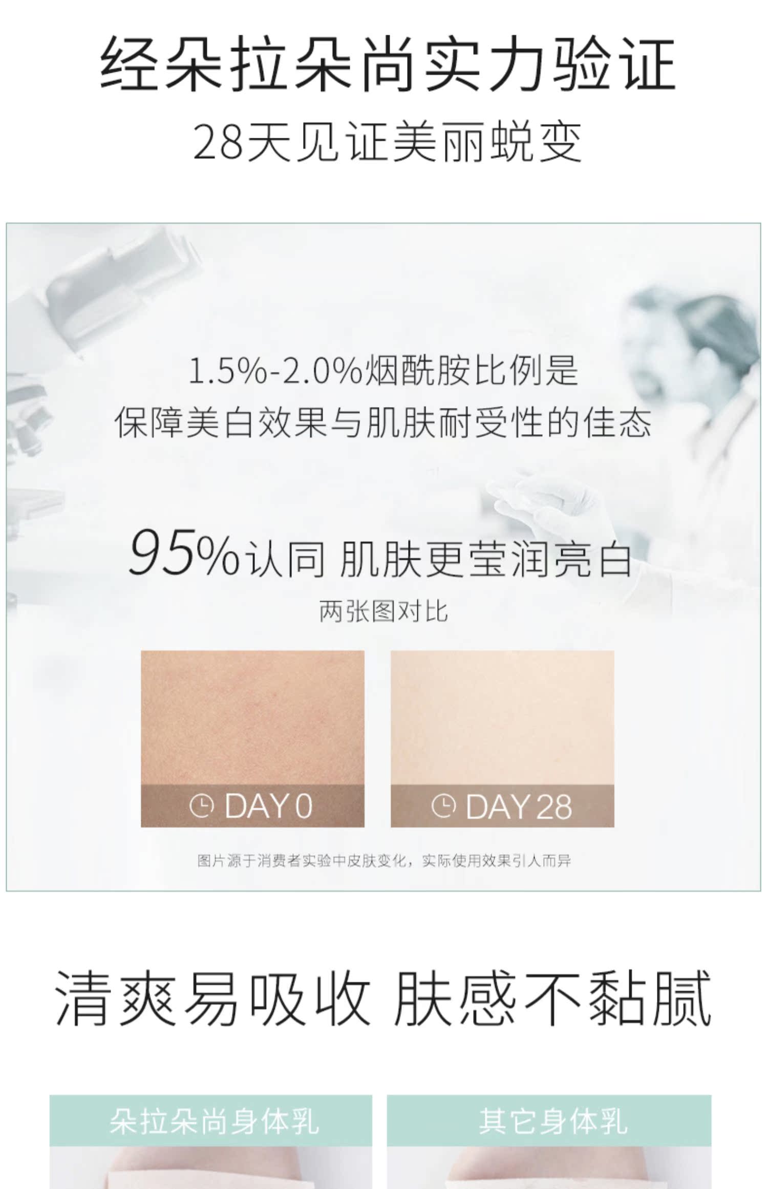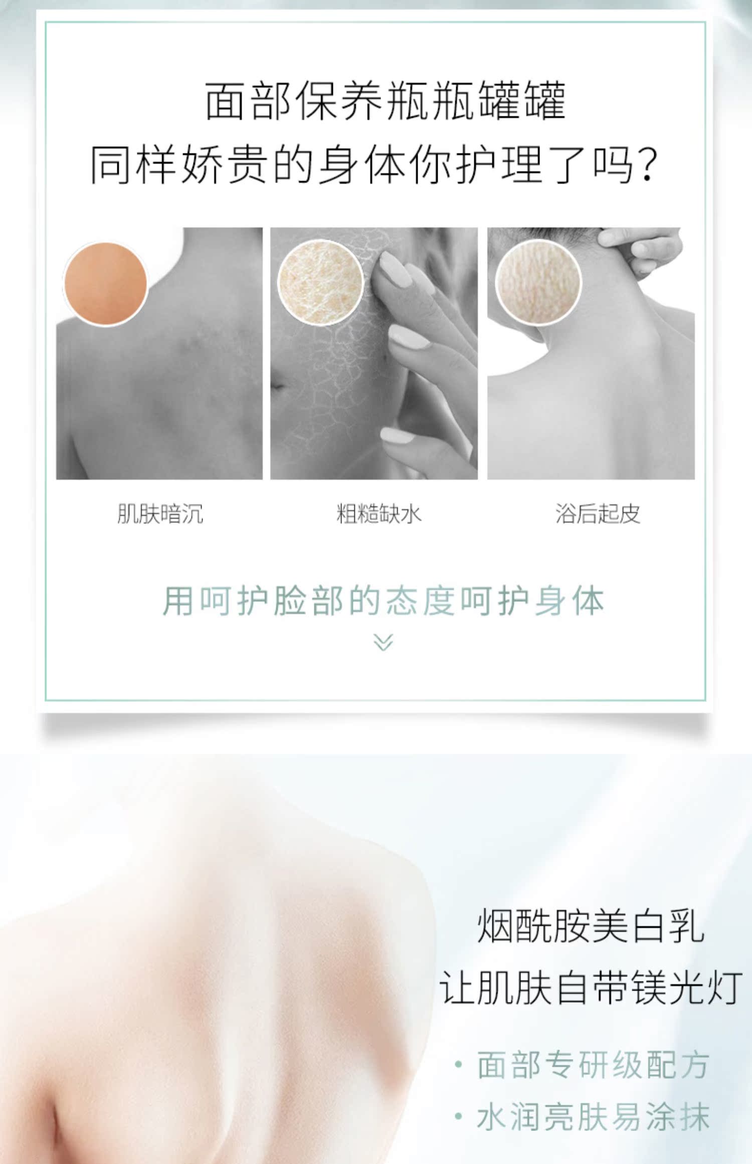 烟酰胺美白身体乳,身体与面部均可放心使用!天然萃取科学配比,有效美白,清爽滋润,雏菊香氛,安心美白见证美丽蜕变!【赠运费险】