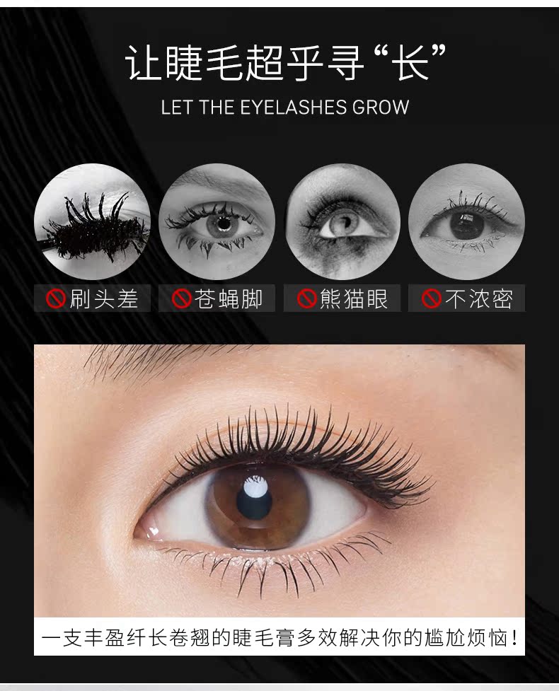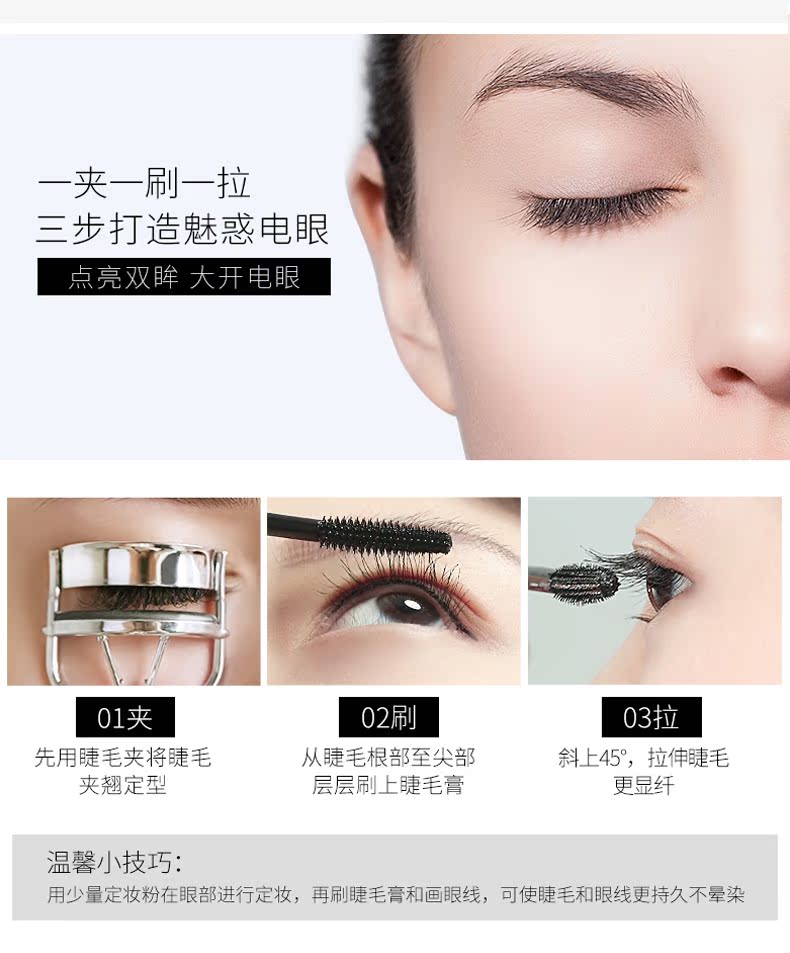 防水、防汗、浓密、持久,不晕染,双支嫁接,三步刷出密长睫头,秒变大眼女神,持久不脱妆!
