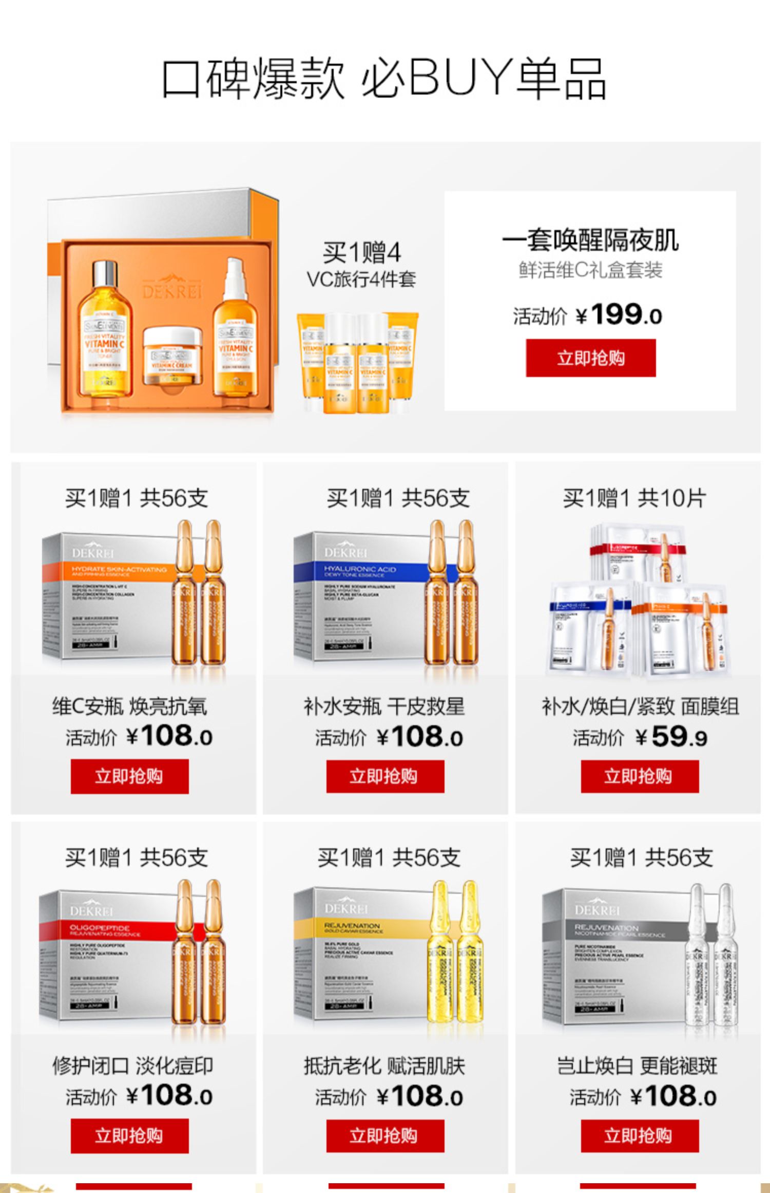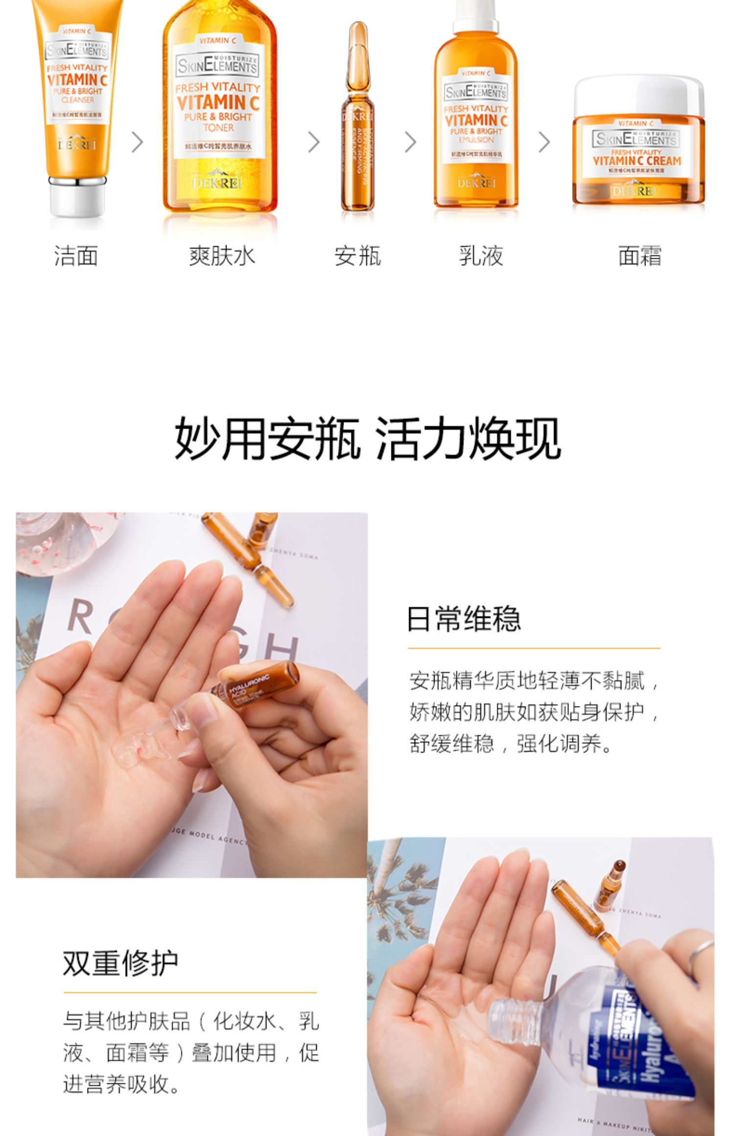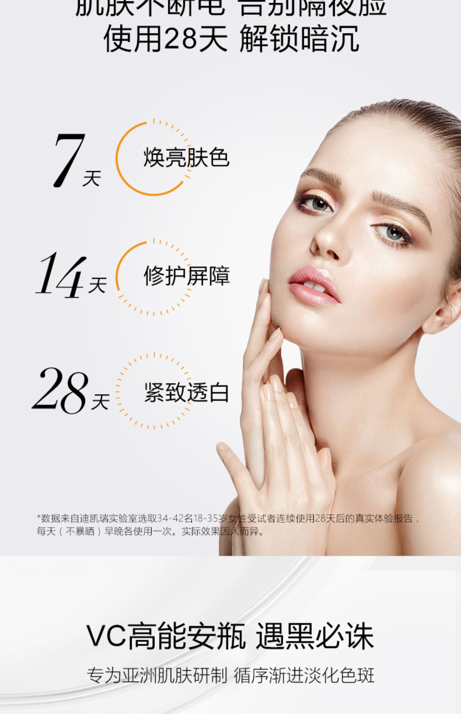 拍两件,第二件0元再送素颜滴一对,拍四送二再减10元,赠品可叠加,迪凯瑞VC安瓶精华液,10%鲜活维C,六无添加,三大高浓度修护成分,28天告别暗沉脸。