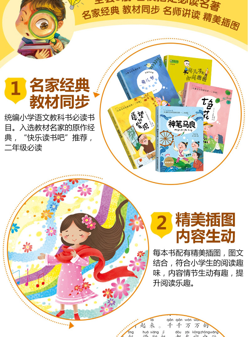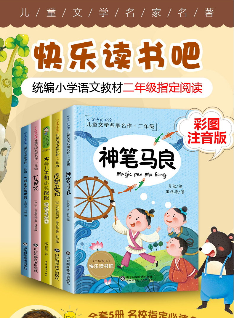 “快乐读书吧”是统编语文教材的一个栏目,目的是循环渐进地激发学生阅读兴趣和培养学生阅读能力,是统编语文教材的重要组成部分。每本书都配有精美插图,情节生动有趣。