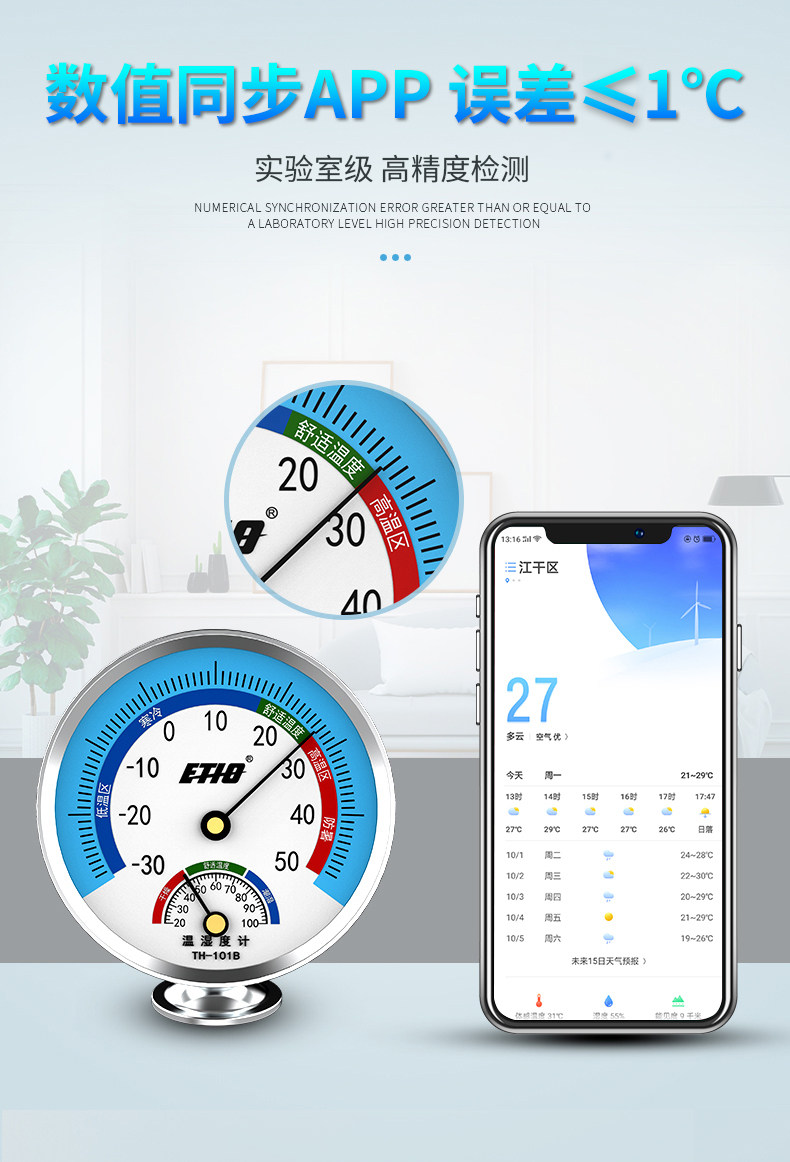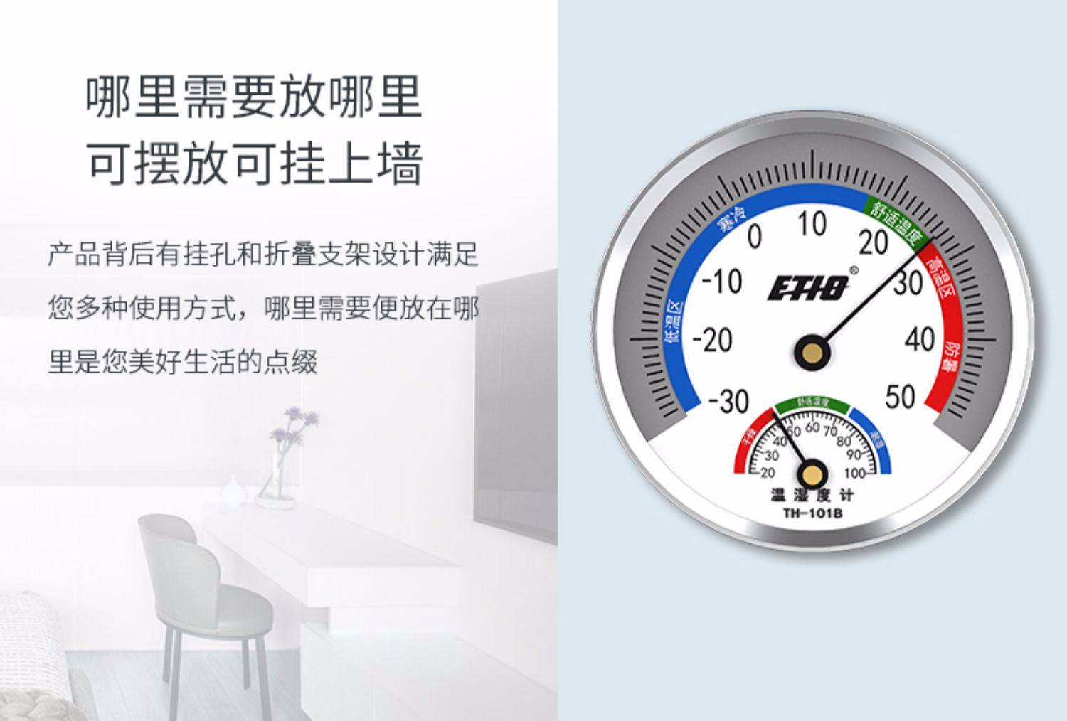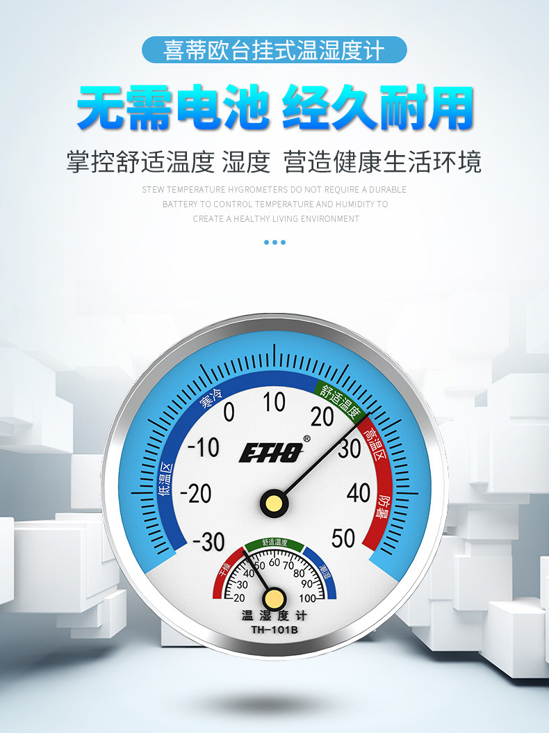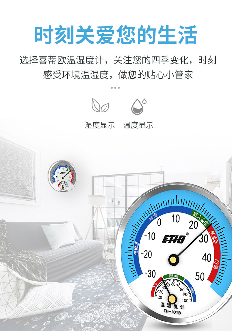 【喜蒂欧】室内温湿度计,无需电池,物理感温,环保外壳,德国机芯,精度高,适合家用,医用等多场景【赠运费险】