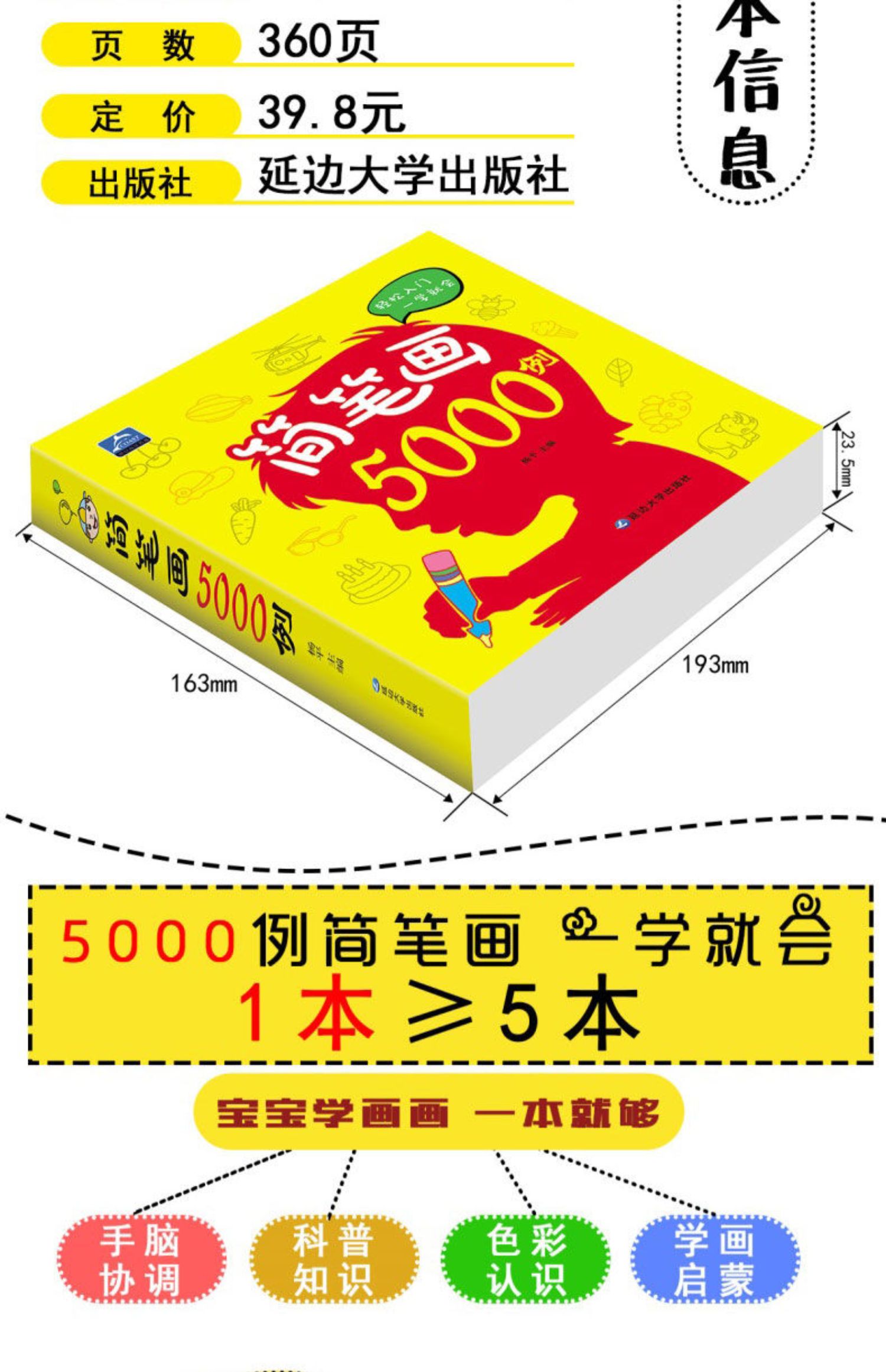 精编版【简笔画绘本5000例,提升孩子智能】海量素材,1本顶10本,360页,超厚超值。含百科知识!动脑学画学知识,儿童美术启蒙必备画册,儿童学画画入门一本就够!让孩子少玩游戏【赠运费险】