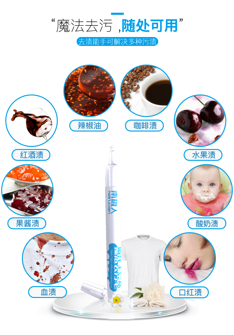【买一送一+10片湿巾】南极人去渍笔,局部重点去污,自带刷子,去渍更快更方便!安全无毒,强力深层除污,轻轻一搓,快速去污不留痕,小巧便携,外出旅游必备之品。