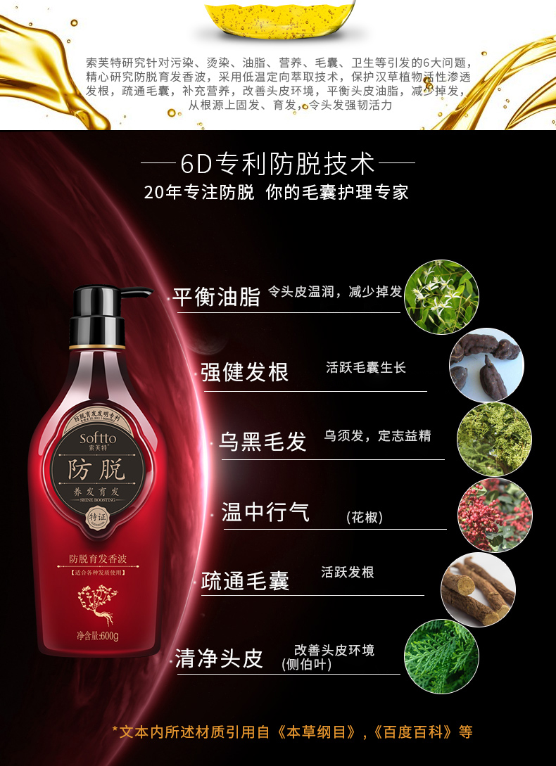 索芙特官方旗舰店正品,防脱发洗发水,防脱专利,从发根改善发质,修护毛磷,防脱固发、养发育发,让你越用越自信
