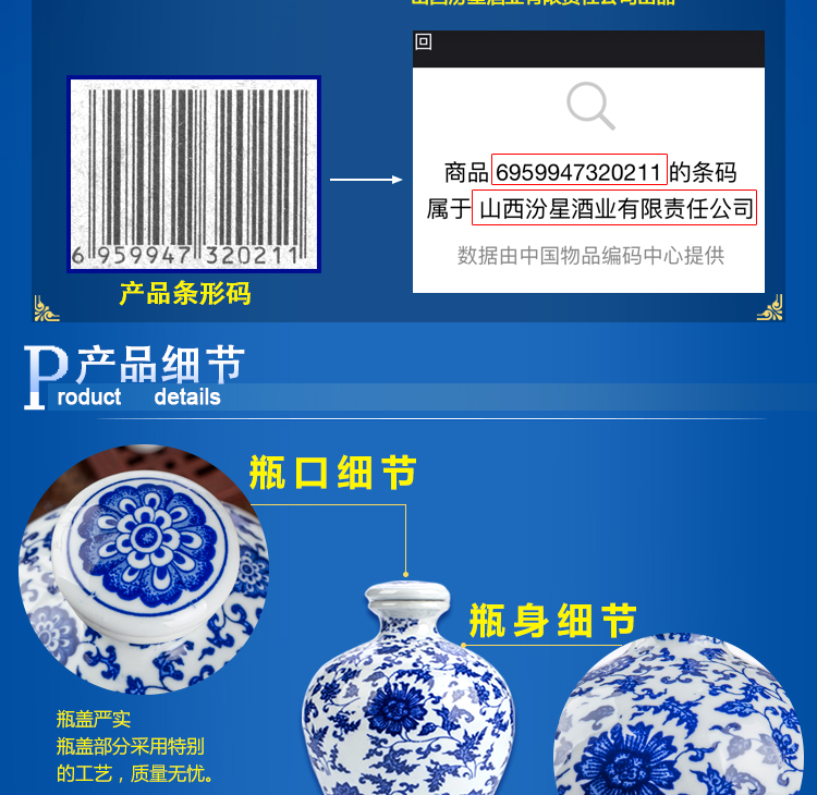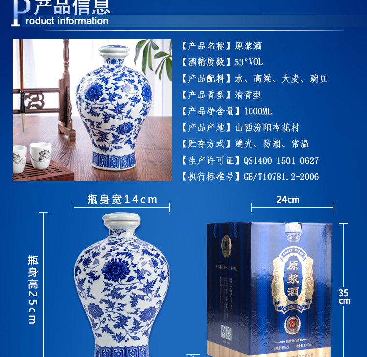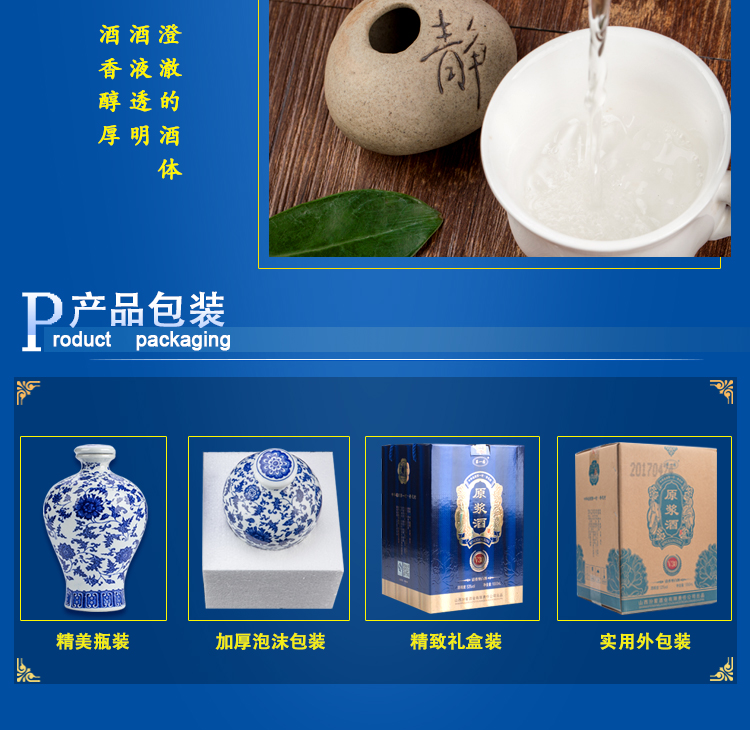 53度清香型,纯粮食原浆入口醇香不上头,青花瓷包装精美,芳香浓郁,绵柔甘洌,自喝送礼都是佳选!