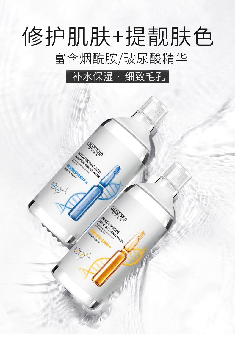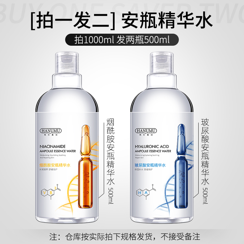 【韩伦美羽】烟酰胺安瓶精华爽肤水,李佳崎强力推荐!1000ml大容量,富含玻尿酸和烟酰胺多种补水活肤精华,能有效的滋养肌肤,提亮肤色!改善细纹,让肌肤水润光泽!【有运费险