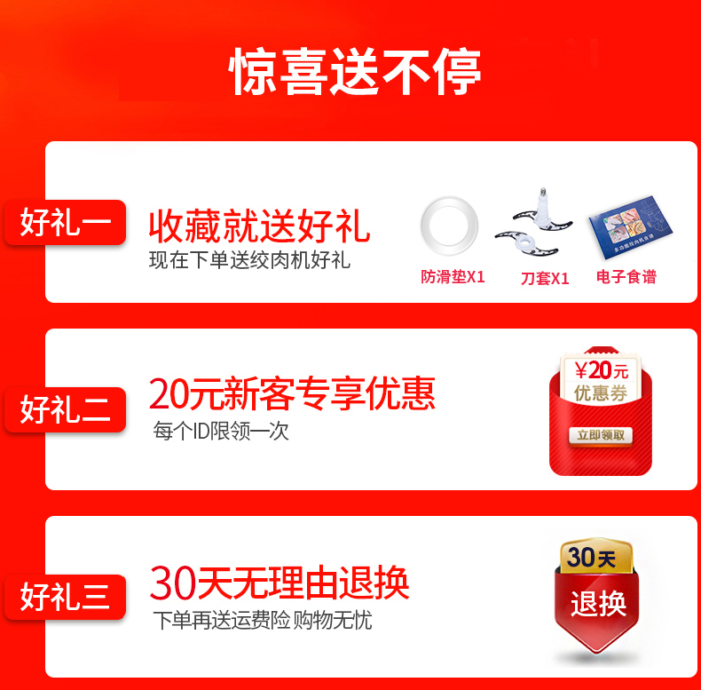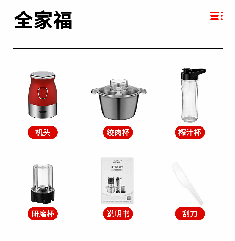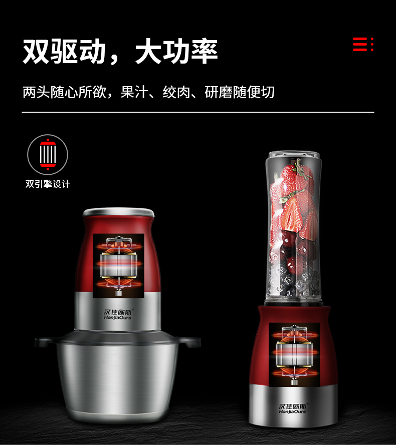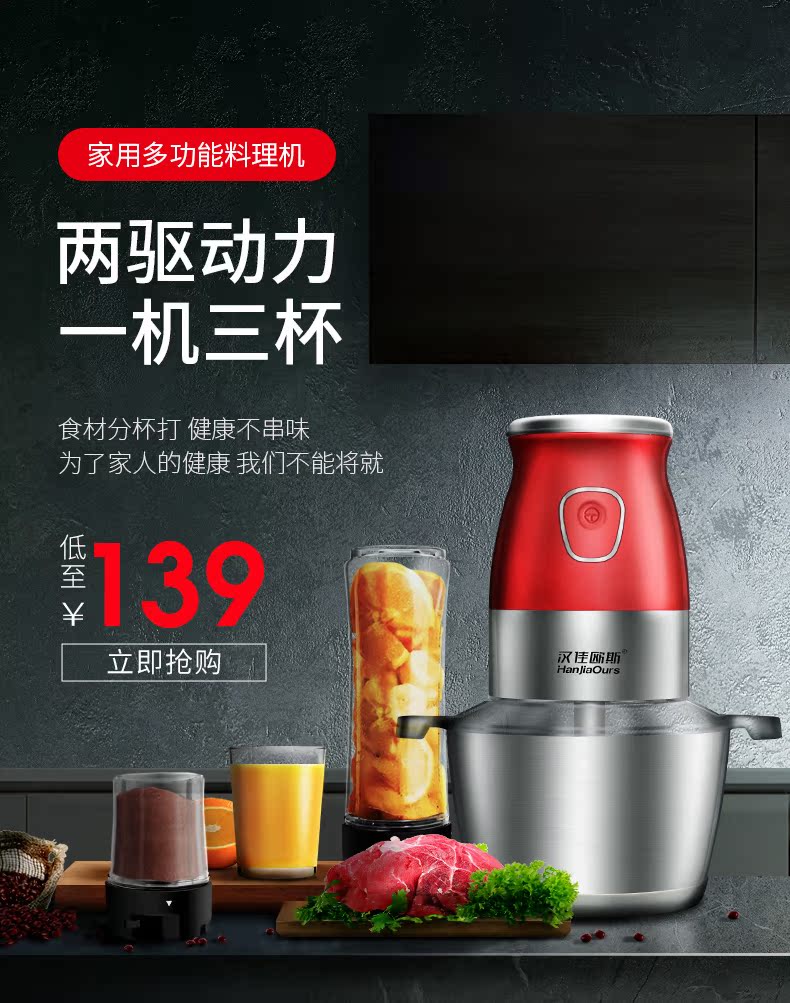 升级三杯三刀,双驱制动,可绞肉,可榨汁,可研磨,食材分杯打,美食不串味,三年换新。为了家人的健康,我们不能将就【赠运费险】