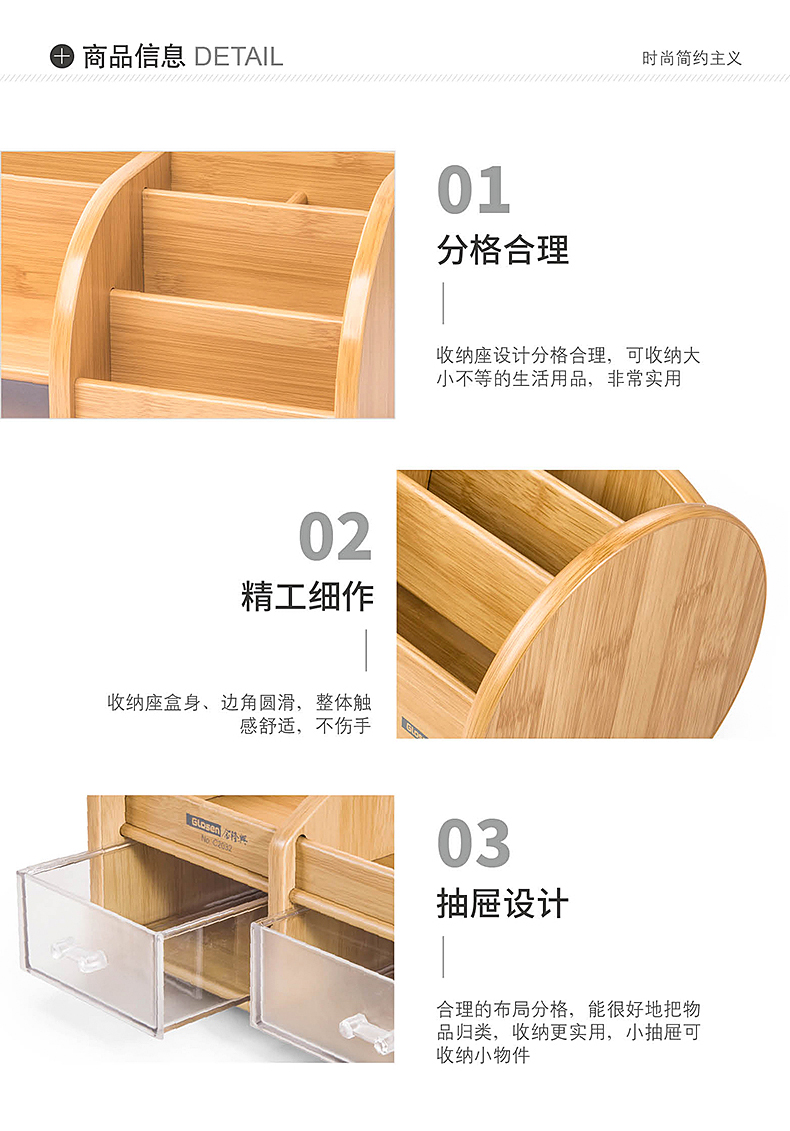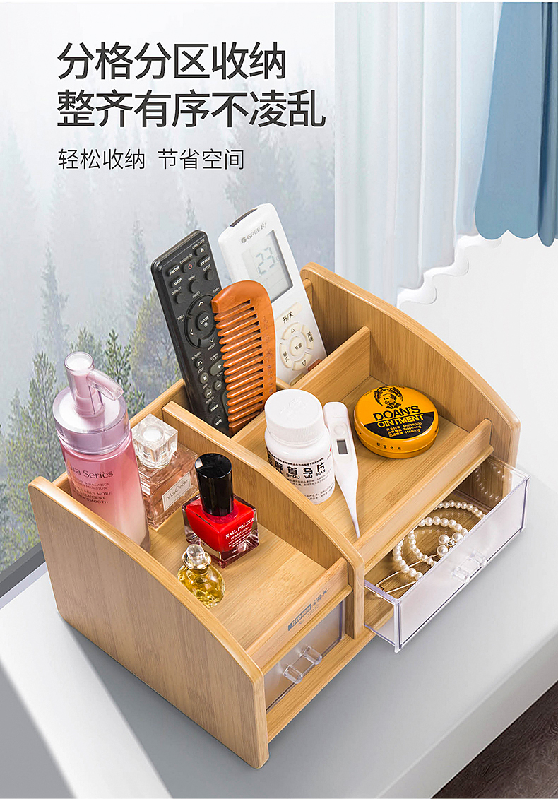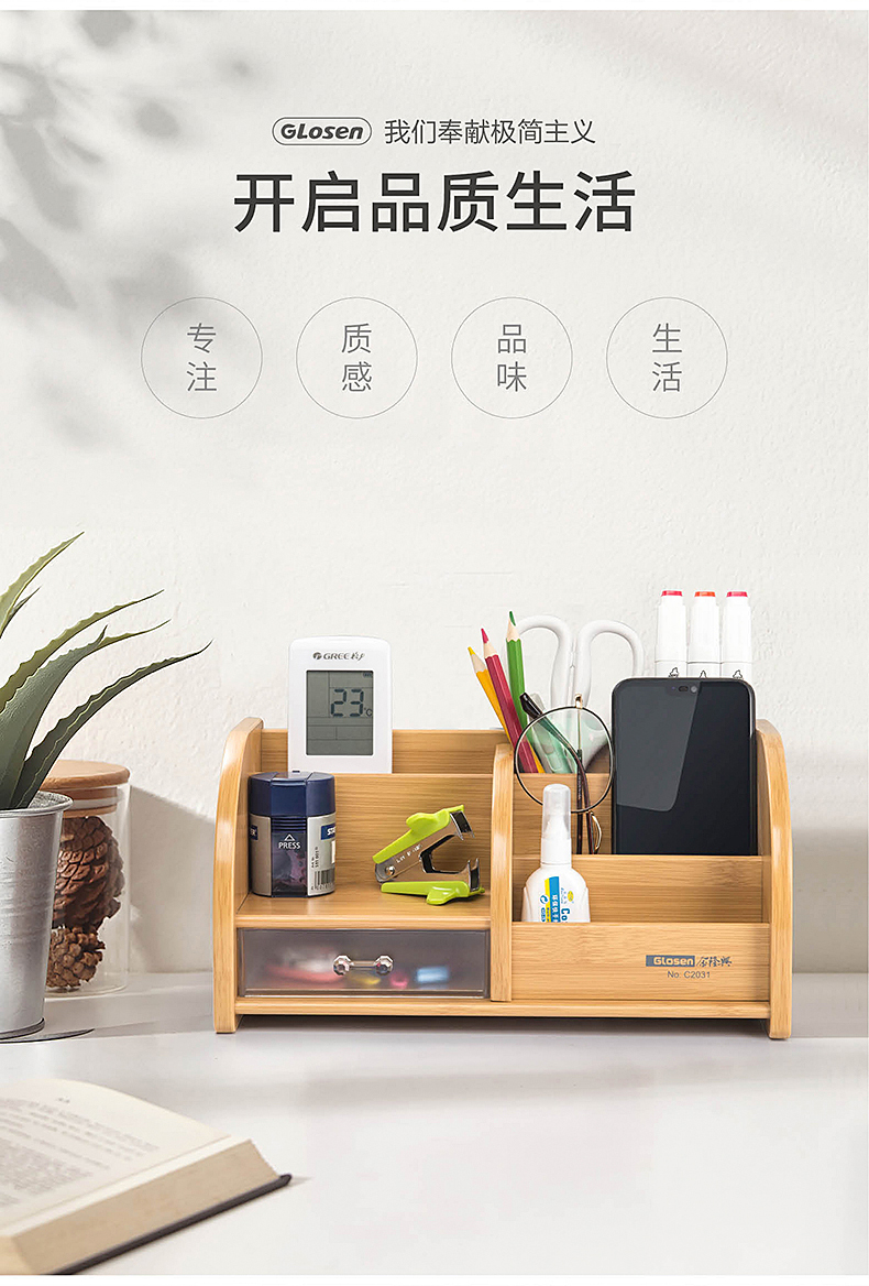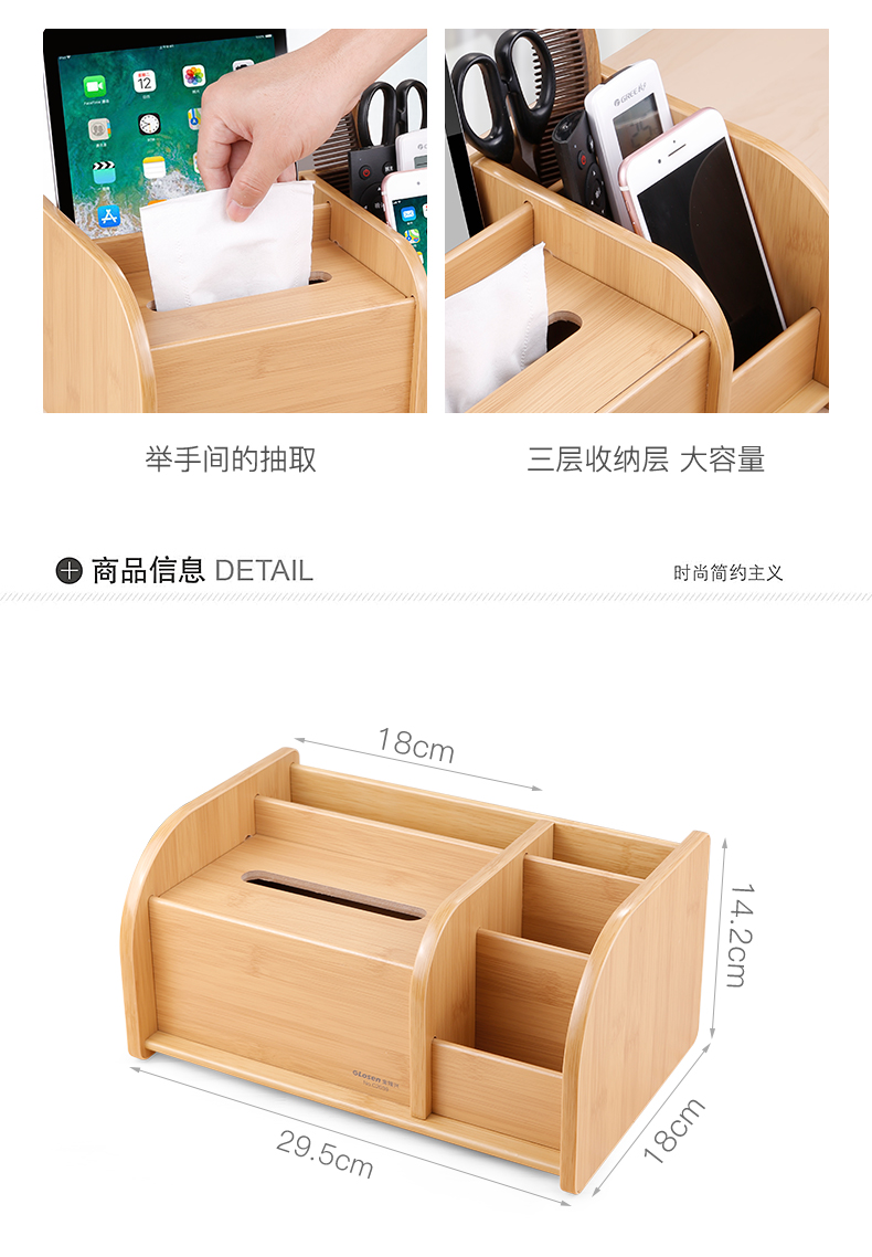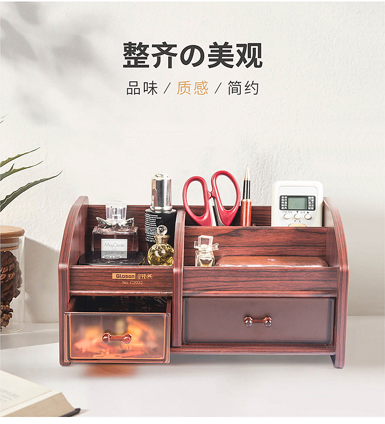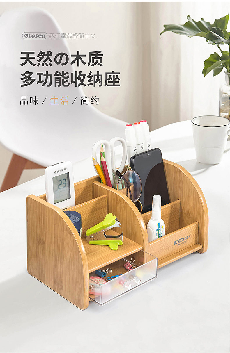 【金隆兴】原木打造而成,高端上档次,三层大空间,满足不同收纳,手机、遥控器、名片。收纳好助手,让你的办公用品告别凌乱,做个精致女神~,收拾出完美好心情!【赠运费险】