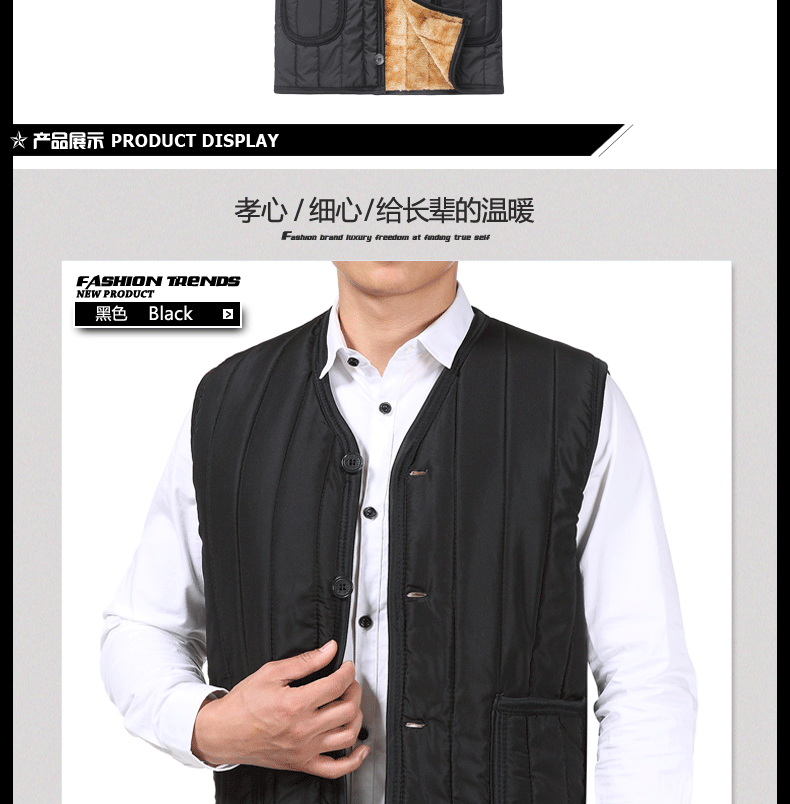 【80-180斤可穿,限领5张券!】送一件暖和的马甲给爸爸穿,加绒加厚马甲,柔软舒适面料,穿着不臃肿,防风又保暖,做工精细,给长辈的温暖,质量好放心买!